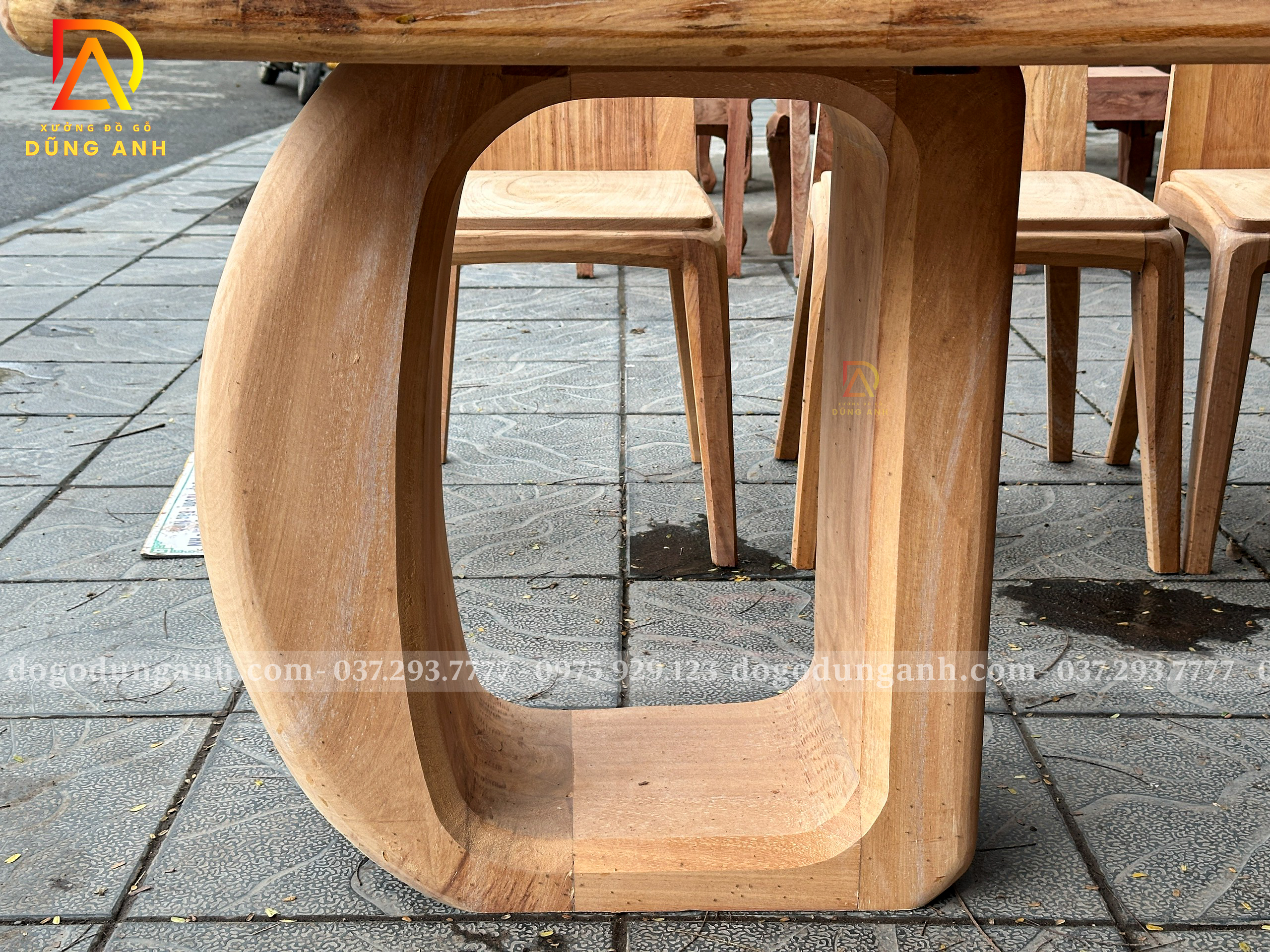 Phần chân bàn được thiết kế dạng trụ nguyên khối uốn cong độc lạ, tạo nên sự khác biệt hoàn toàn so với các mẫu bàn truyền thống. Form chân to bản, liền khối không chỉ tăng độ chắc chắn mà còn mang lại cảm giác bề thế, hiện đại và đầy tính nghệ thuật.