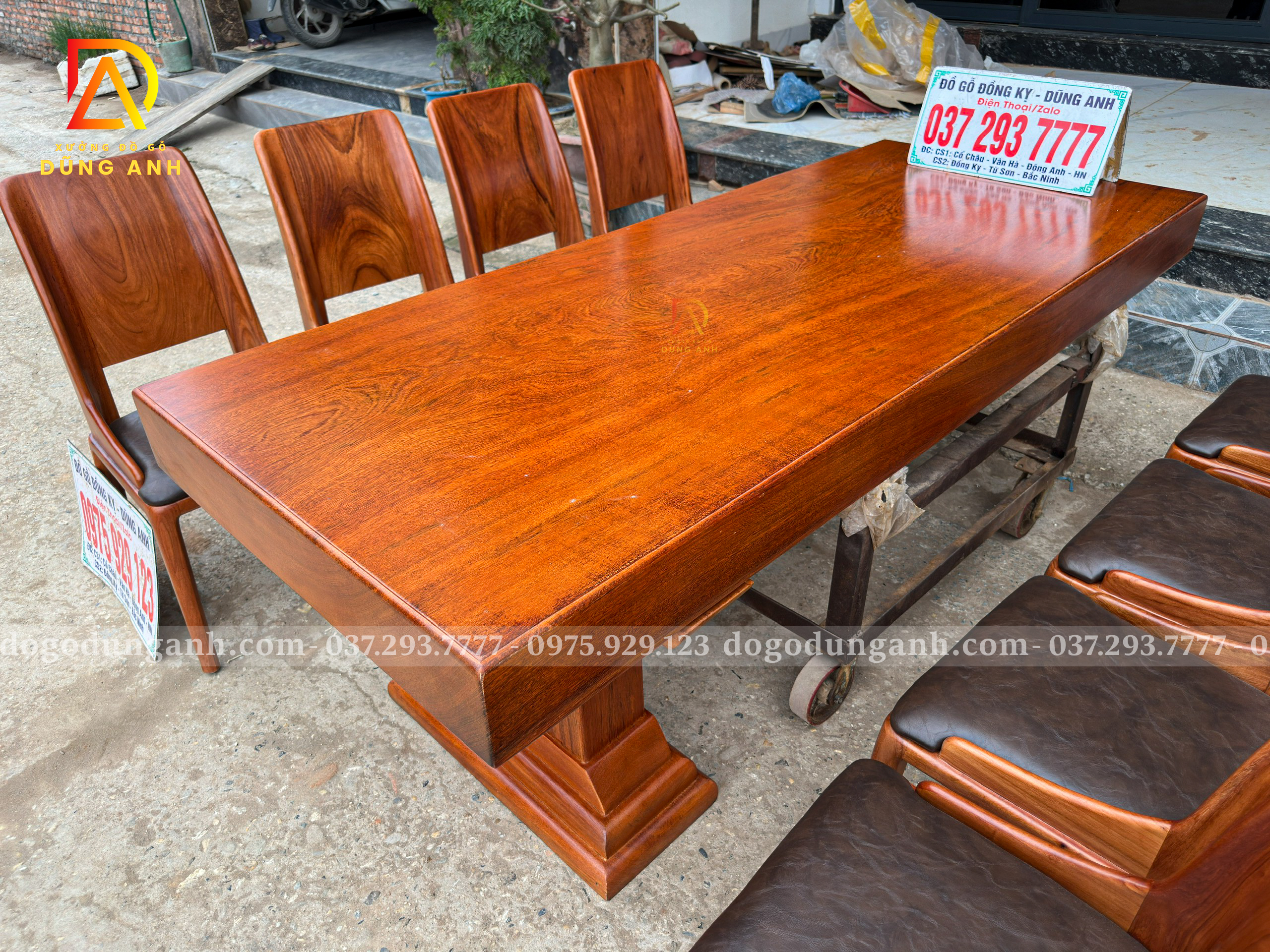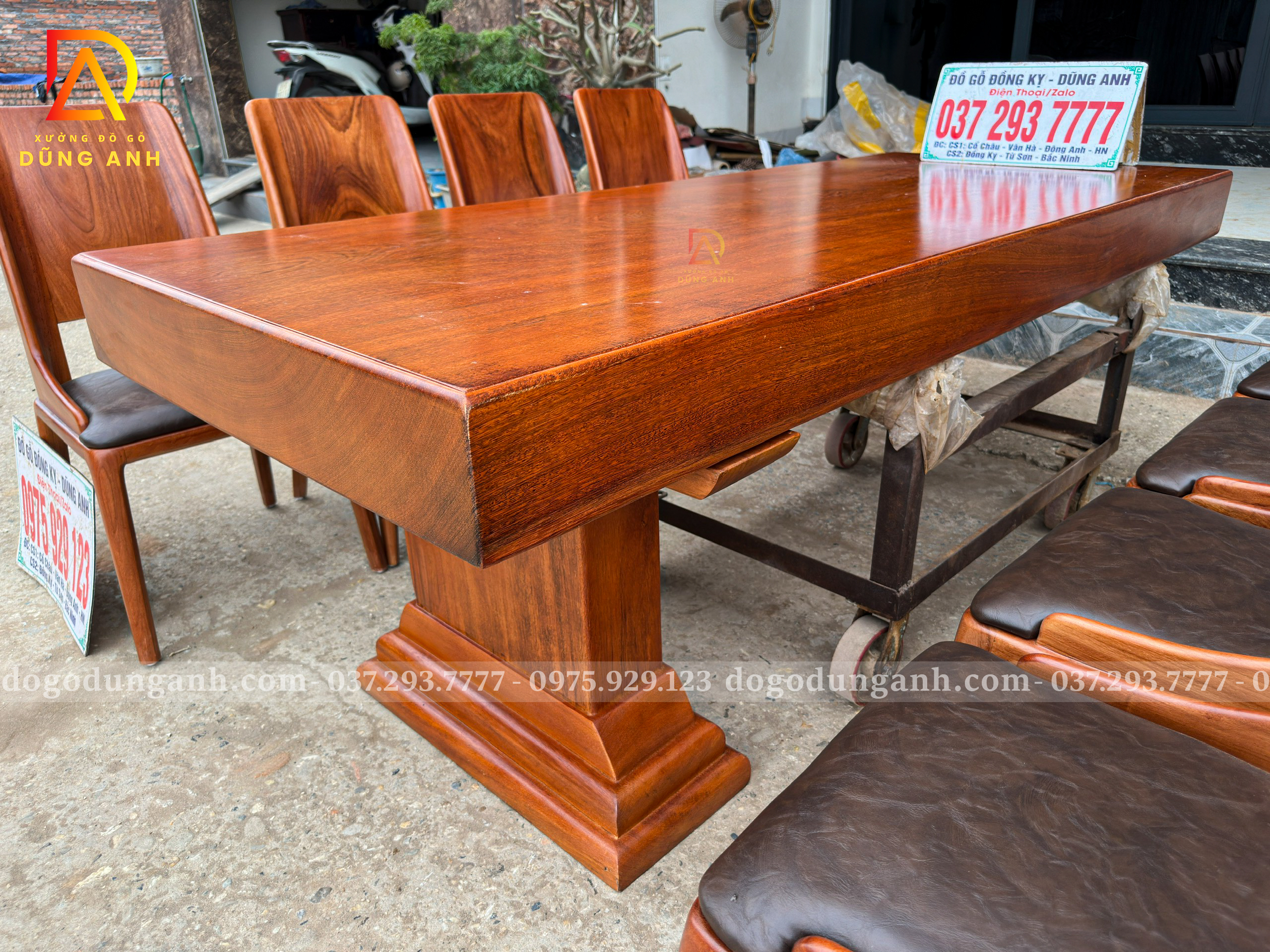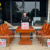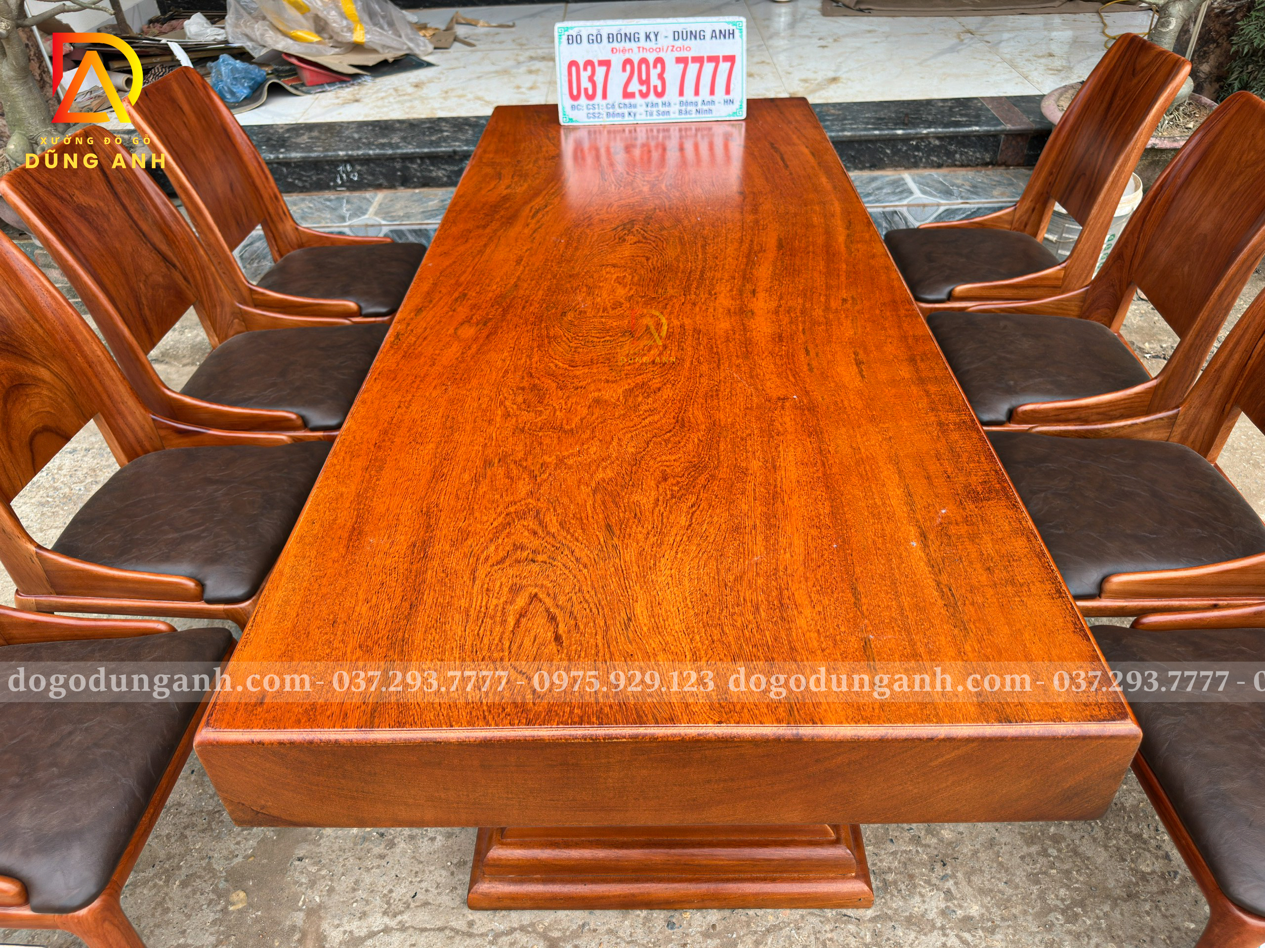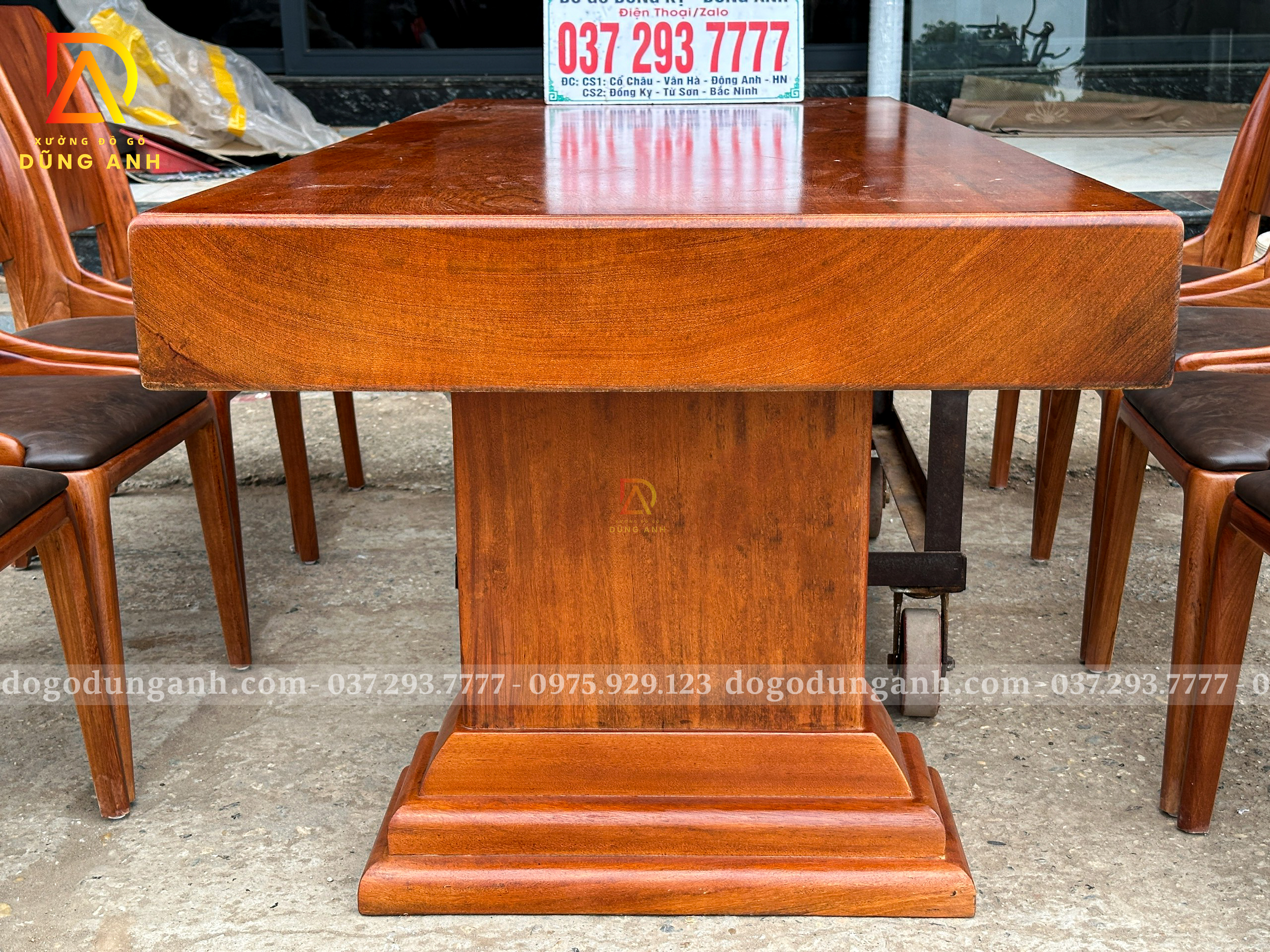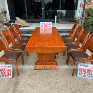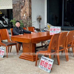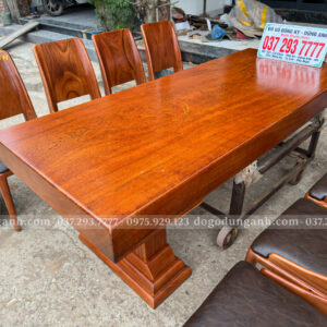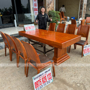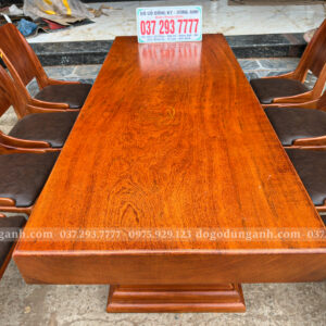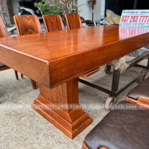 Chiếc bàn nguyên khối được chế tác từ gỗ gõ đỏ nam phi tuyển chọn, chỉ dùng những tấm gỗ có vân đẹp, sắc nét và đồng đều. Mỗi đường vân là một nét riêng không lặp lại, tạo nên vẻ sang trọng tự nhiên mà không cần tô vẽ. Toàn bộ bề mặt bàn được xử lý kỹ lưỡng để đảm bảo độ ổn định, chống cong vênh, nứt tách theo thời gian. Không chỉ là một món nội thất, đây là một khối gỗ quý hiếm được giữ trọn hình dáng và tinh thần nguyên bản – chắc chắn, tinh tế và đậm chất tự nhiên. Một chiếc bàn không dành cho số đông, mà dành cho người biết nhìn và trân trọng giá trị thật