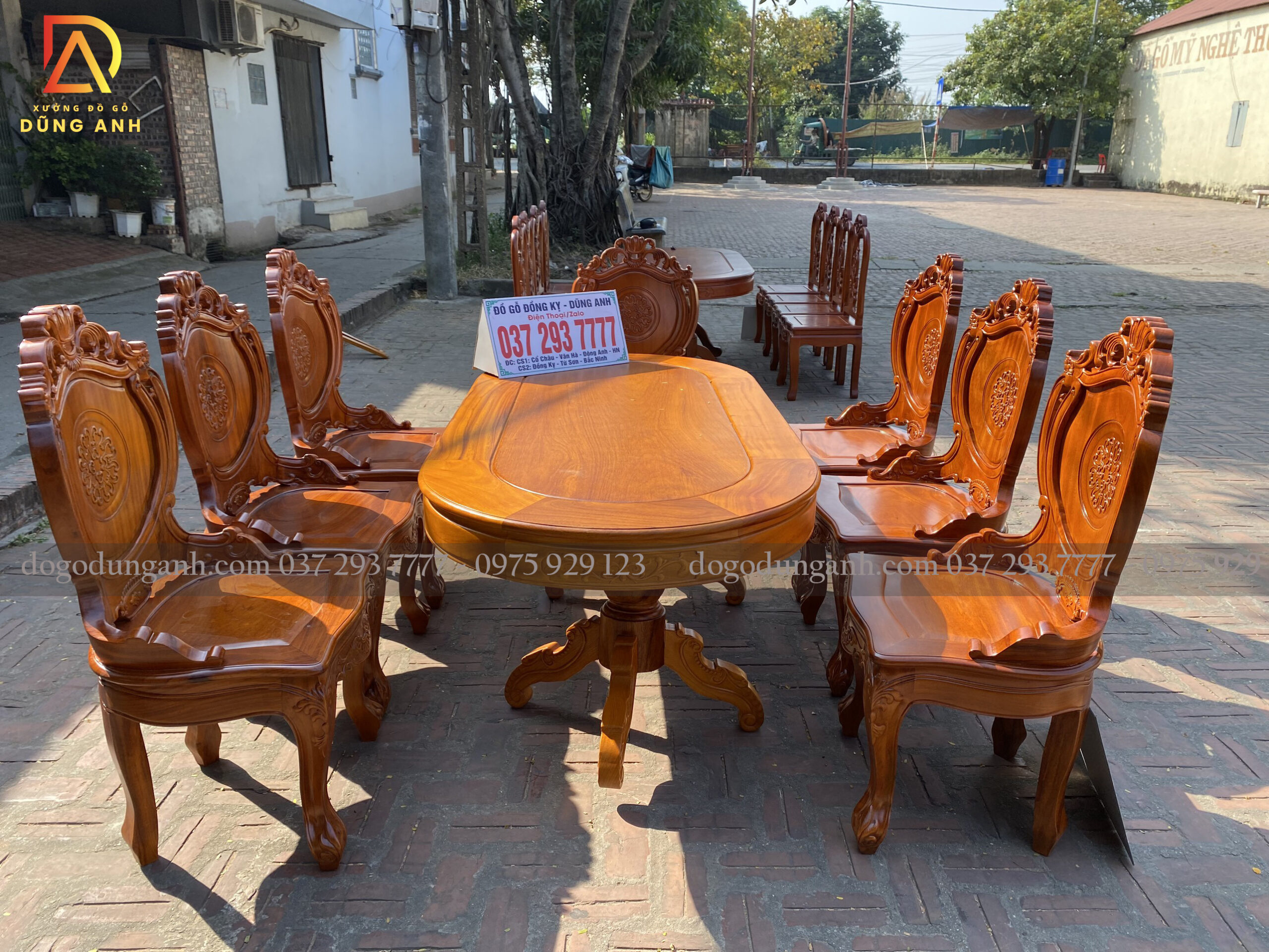 Đồ Gỗ Dũng Anh | Bộ bàn ăn mẫu Louis Hoàng Gia 8 Ghế + Bàn Bầu Dục.