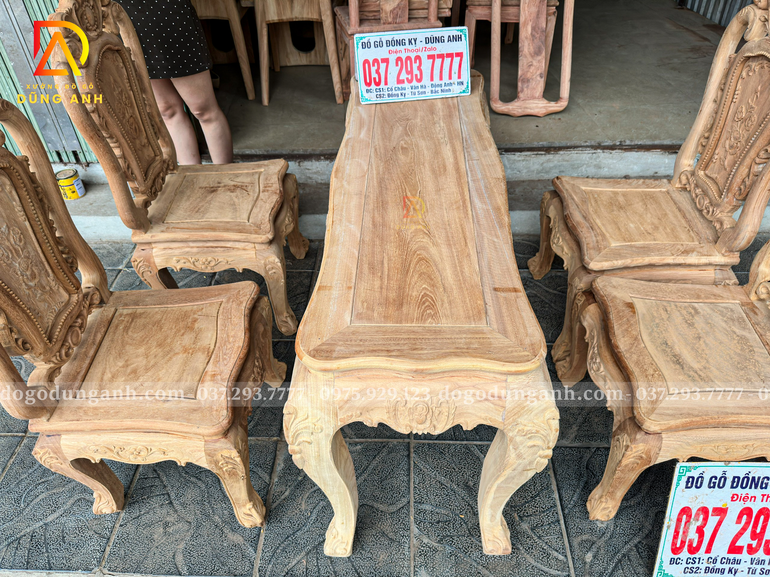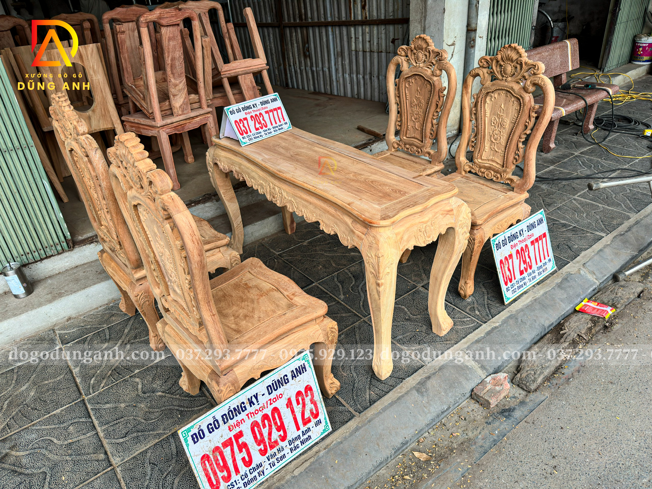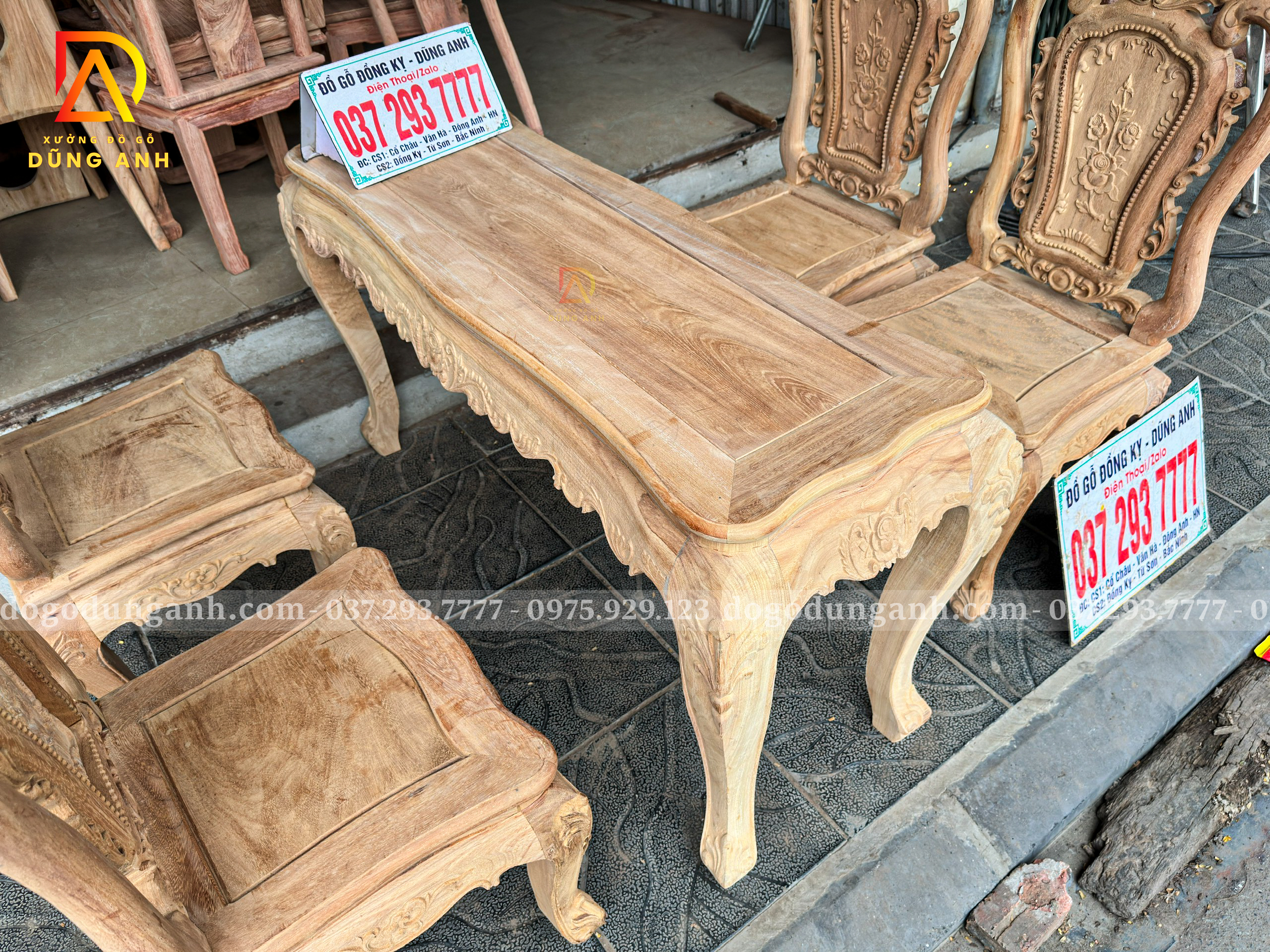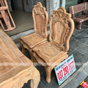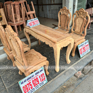 Đồ Gỗ Dũng Anh | Bộ bàn ăn nhỏ gọn hoàng gia củ lạc 4 ghế Louis hoa hồng – Gỗ gõ đỏ Nam Phi mộc thô