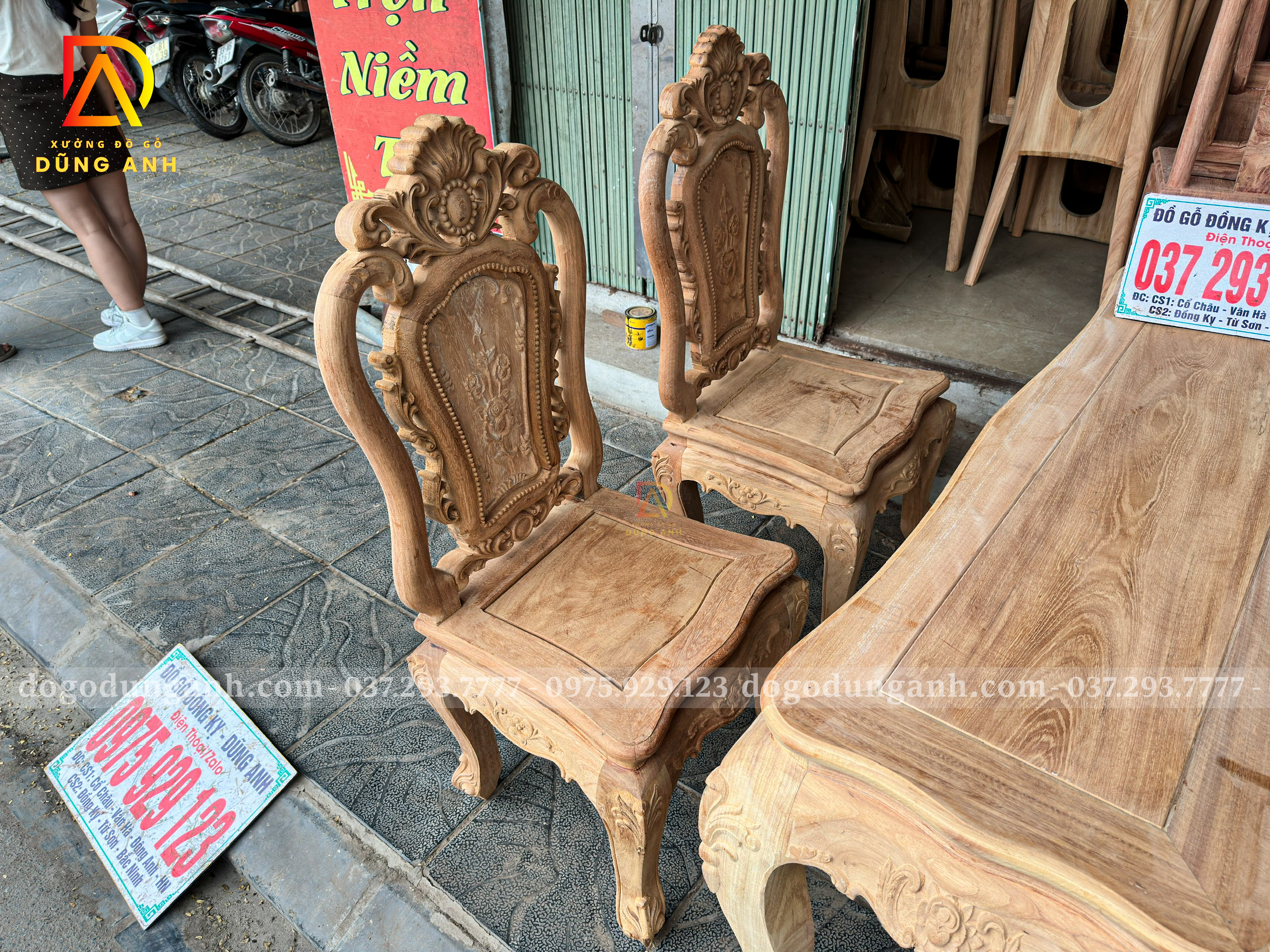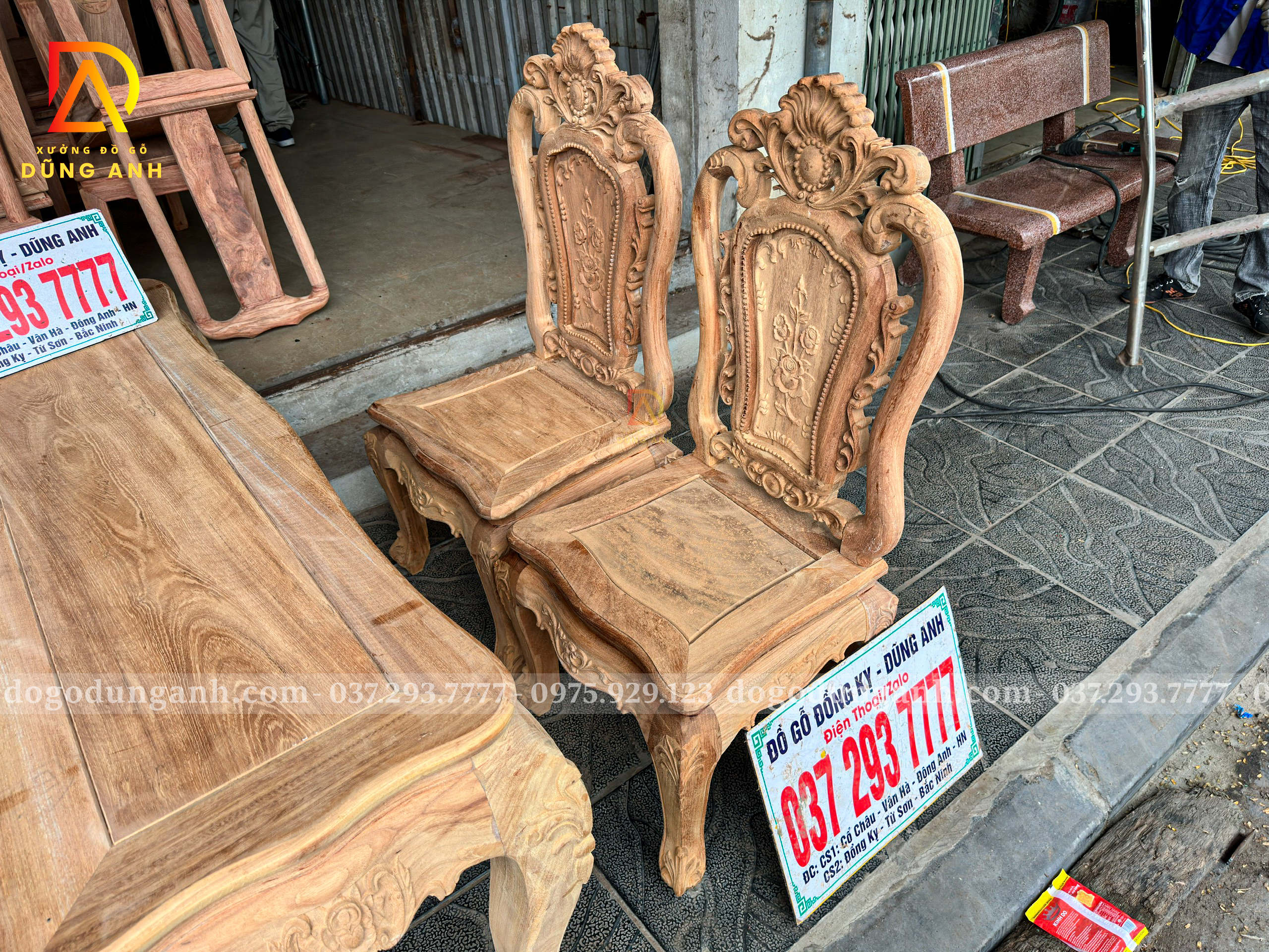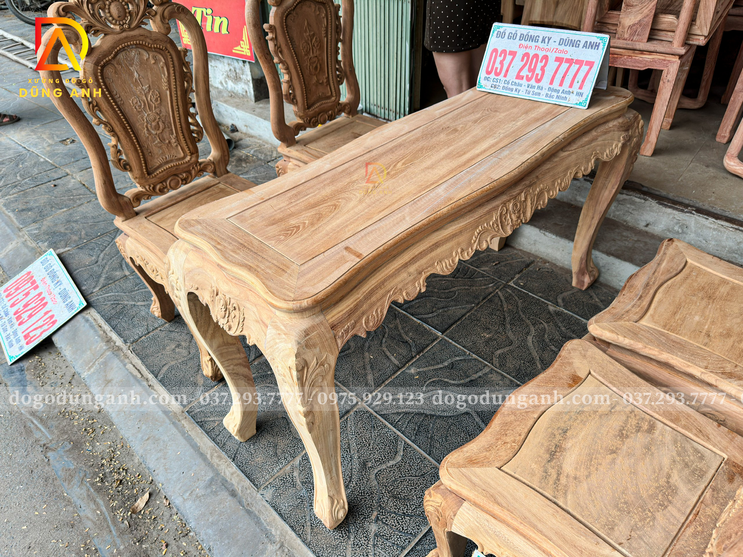 Đồ Gỗ Dũng Anh | Bộ bàn ăn nhỏ gọn hoàng gia củ lạc 4 ghế Louis hoa hồng – Gỗ gõ đỏ Nam Phi mộc thô