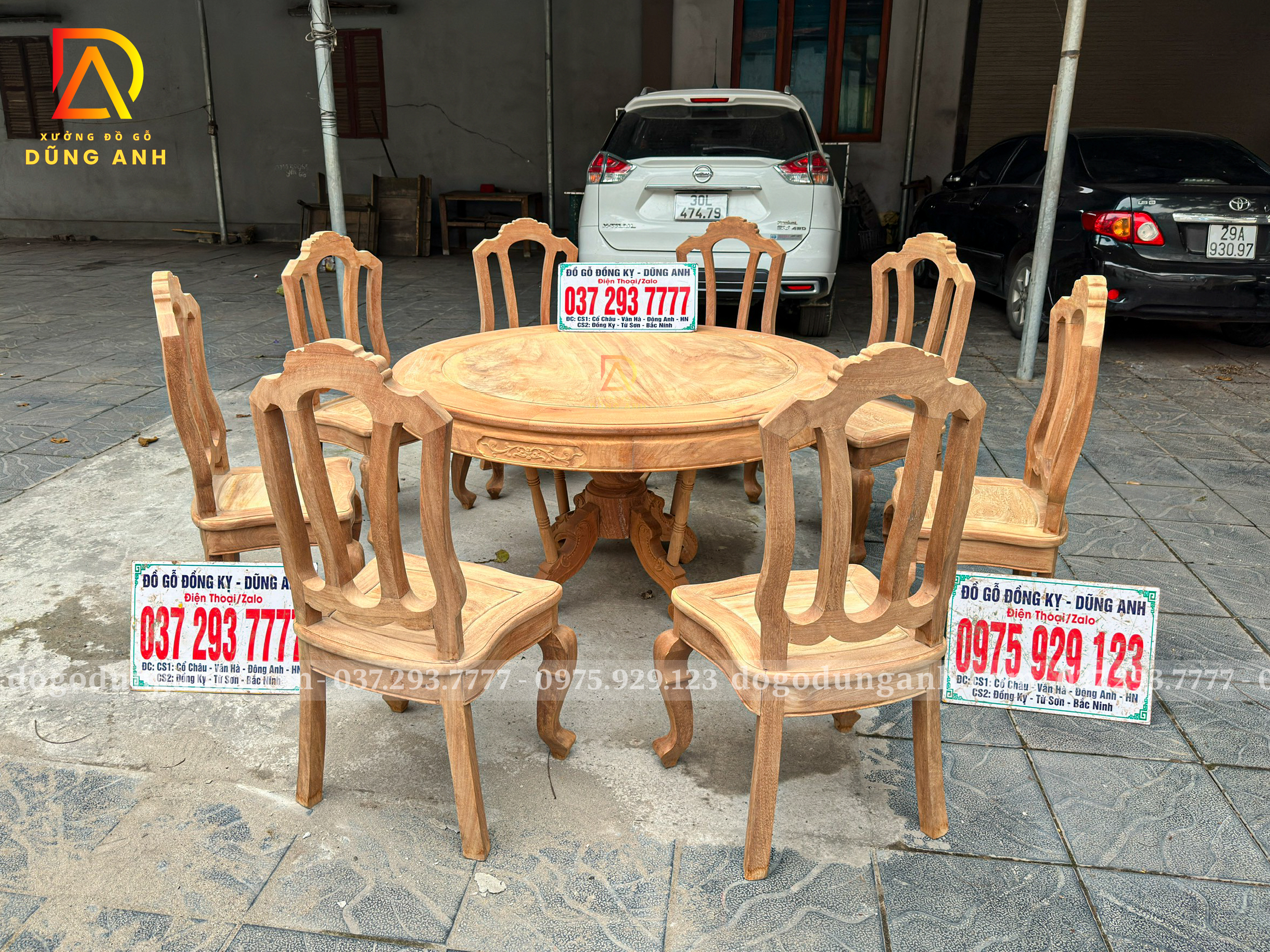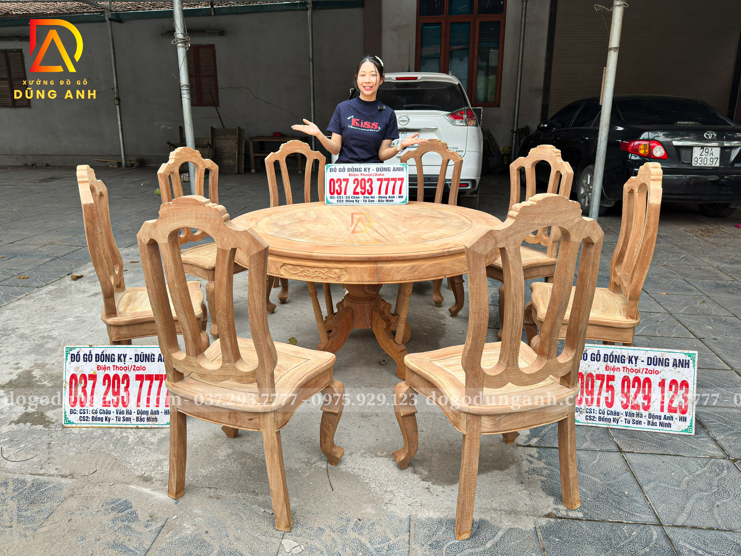 Đồ Gỗ Dũng Anh | Bộ Bàn Ăn Tròn 8 Ghế Kiểu Mới Sang Trọng Gỗ Gõ Đỏ