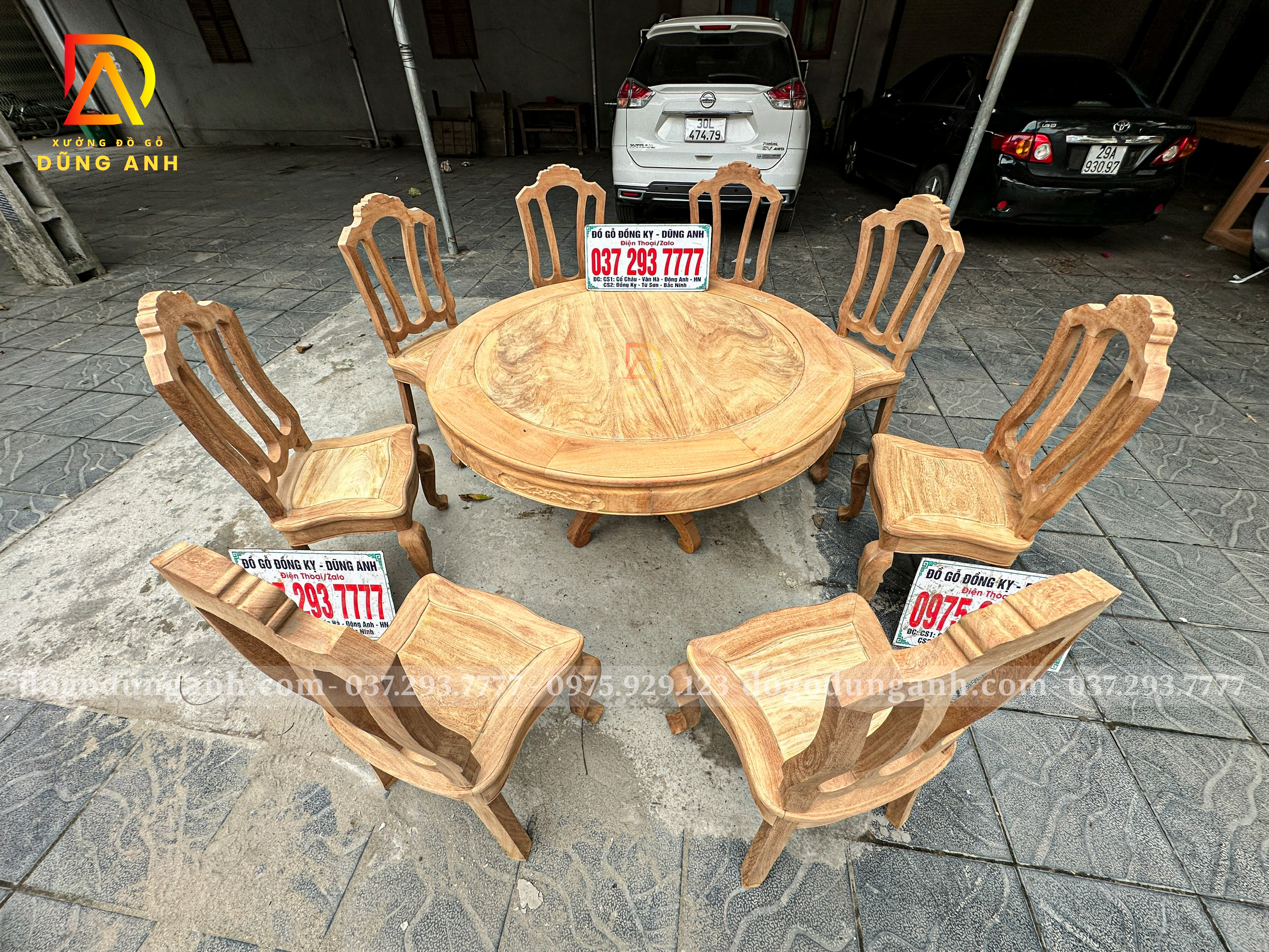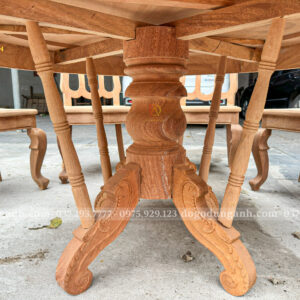 Đây là mẫu bàn ăn hội tụ đầy đủ yếu tố thẩm mỹ – độ bền – đẳng cấp, đặc biệt nổi bật với thiết kế chân trụ nghệ thuật và ghế chạm hoa cúc tinh xảo. Một lựa chọn xứng tầm cho những khách hàng yêu thích nội thất gỗ tự nhiên cao cấp.