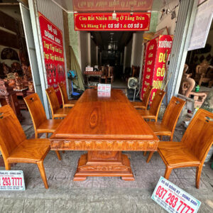 Bộ bàn ăn 8 ghế được chế tác từ chất liệu gỗ gõ đỏ tự nhiên