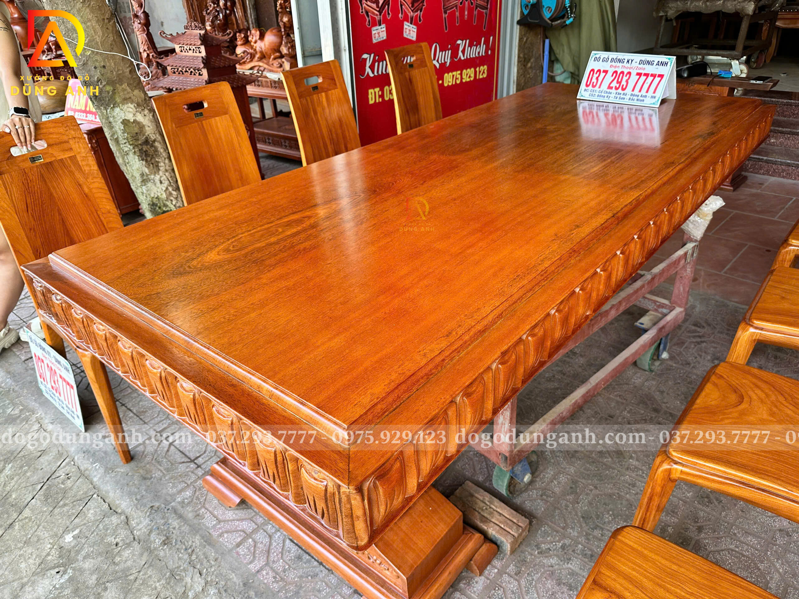 Sản phẩm được những người thợ có kinh nghiệm lâu năm trong nghề triển khai hoàn thiện cực kỳ tỉ mỉ và sặc nét đến chi tiết. Quý khách hàng nào muốn sở hữu ngay bàn ăn có khung tranh và ván tương tự thì hãy liên hệ ngay Xưởng Gỗ Dũng Anh Hotline: 0372937777 / 0975929123 để được nhân viên tư vấn chi tiết và cụ thể hơn!