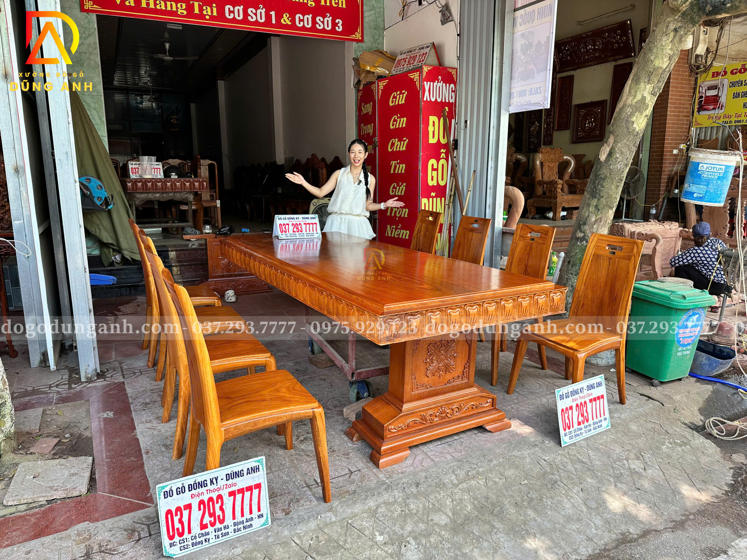 Bạn có thể yêu cầu điều chỉnh kích thước bàn, số lượng ghế hoặc chi tiết chạm khắc theo sở thích và không gian sử dụng. Chỉ cần liên hệ với Xưởng đồ gỗ Dũng Anh, mọi thiết kế sẽ được đáp ứng một cách linh hoạt và tận tâm.
