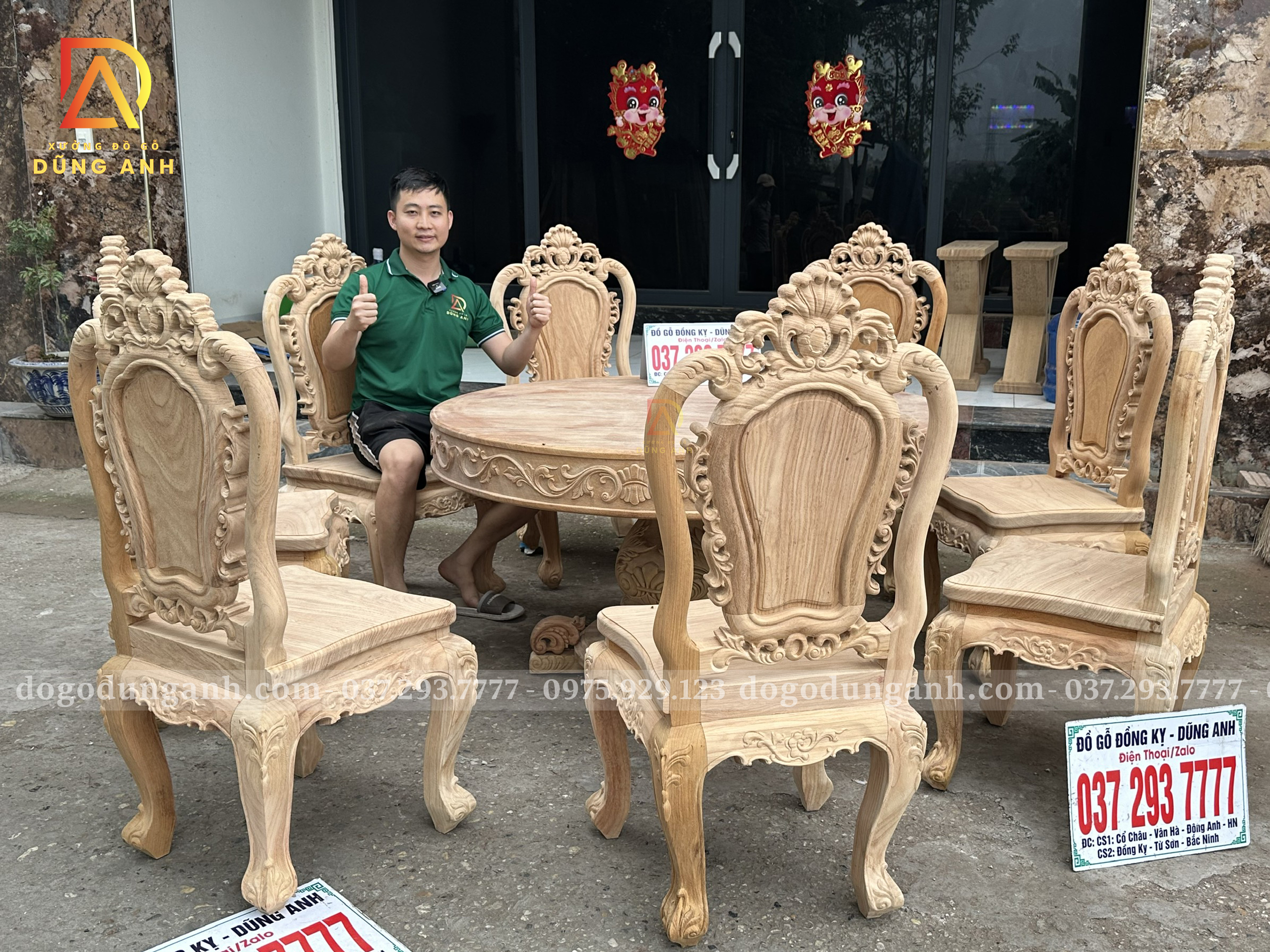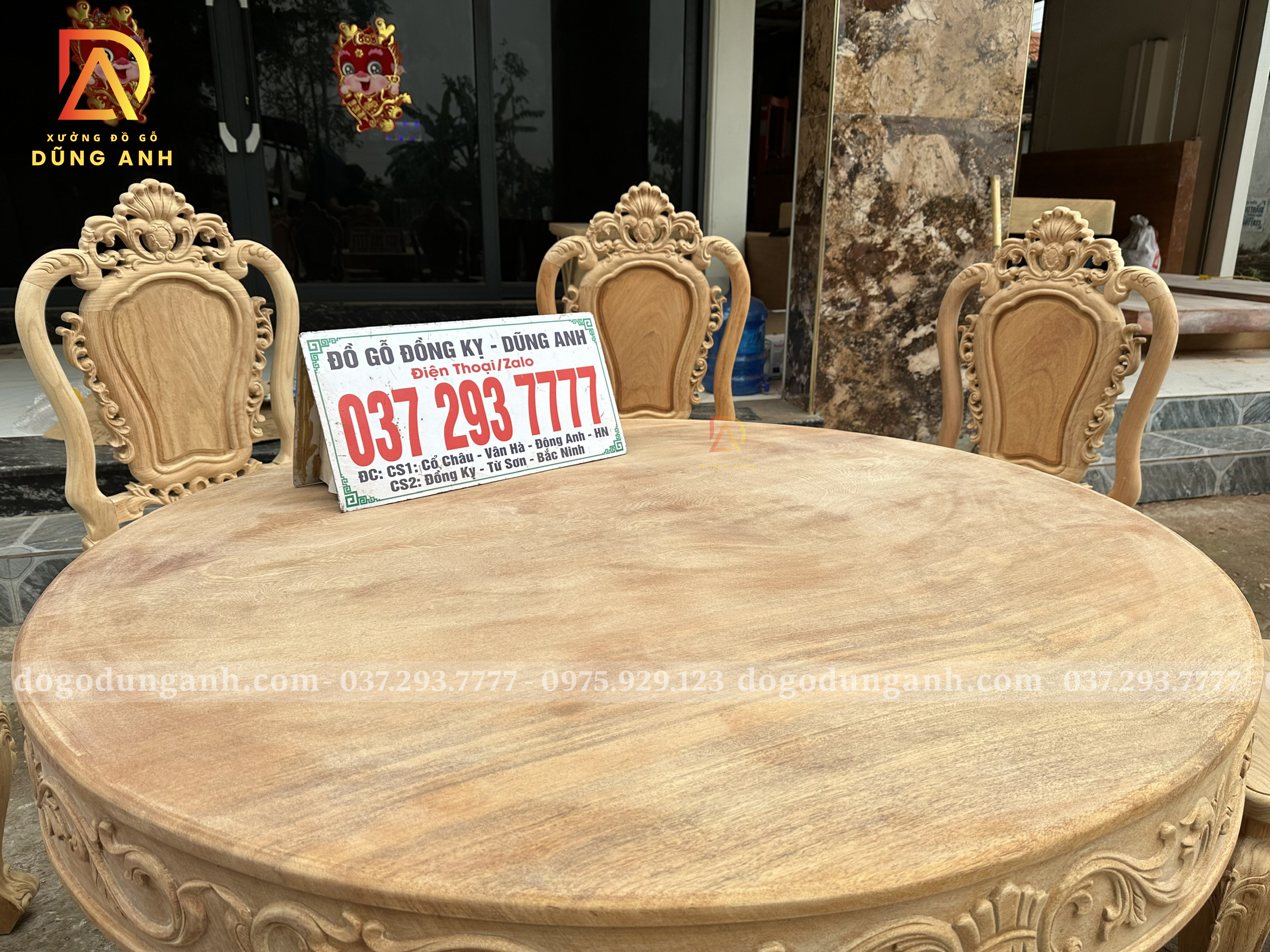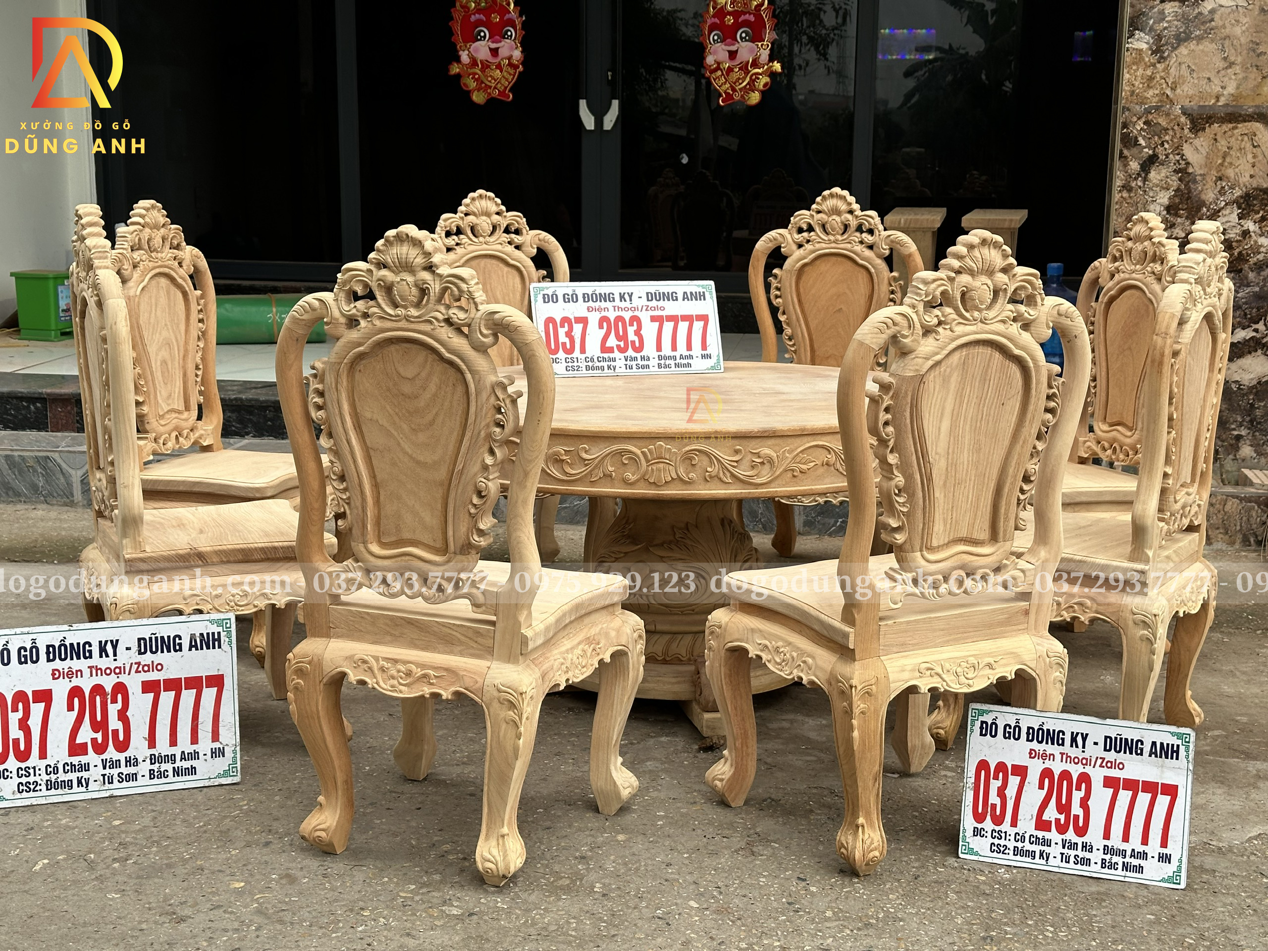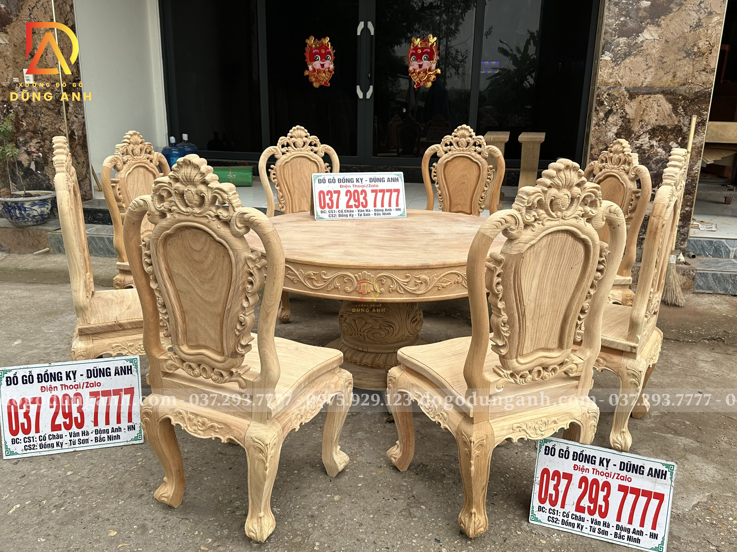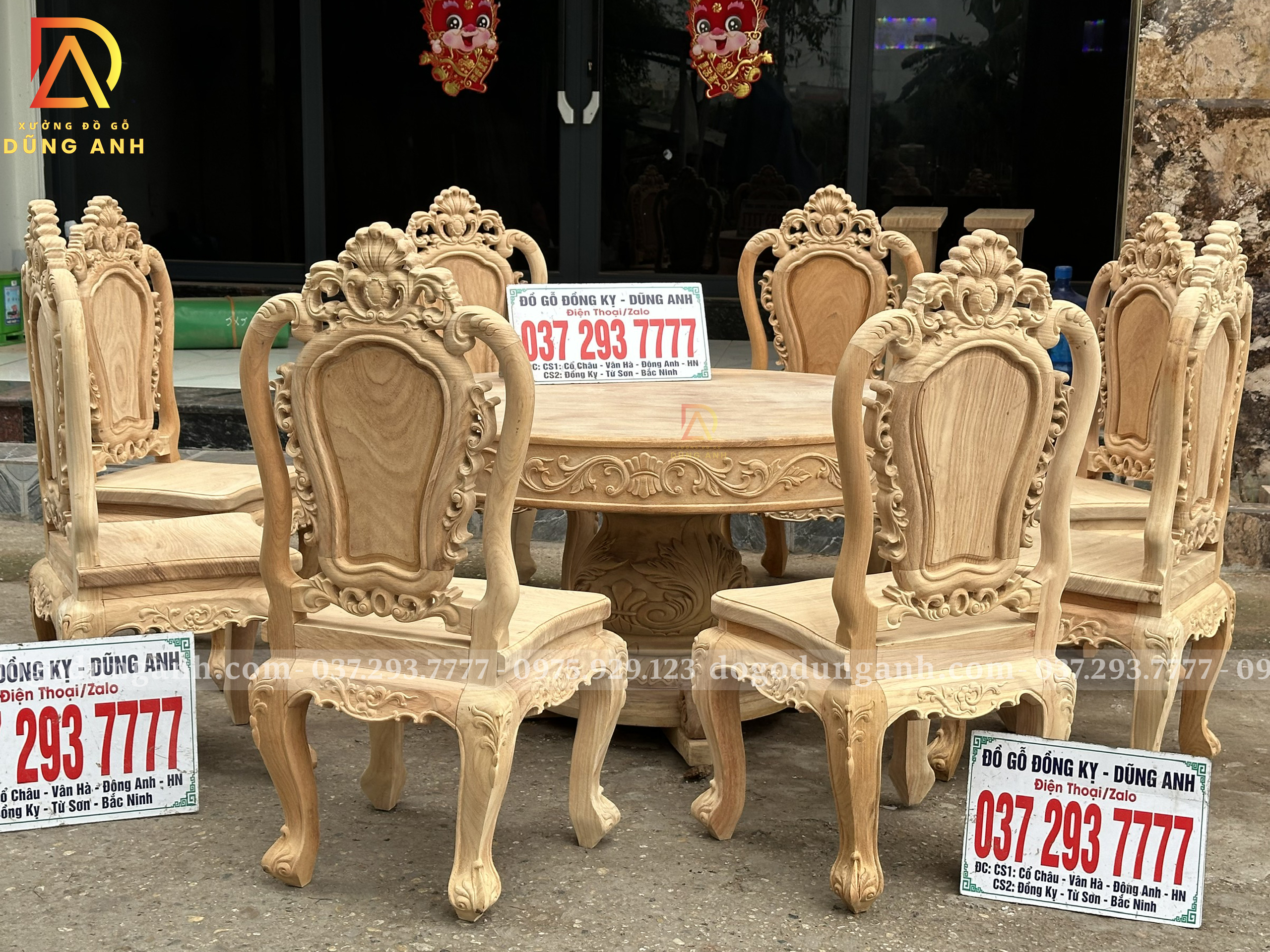 Đồ Gỗ Dũng Anh | Bộ Bàn tròn Nguyên Khối + 8 ghế Louis Hoa Hồng