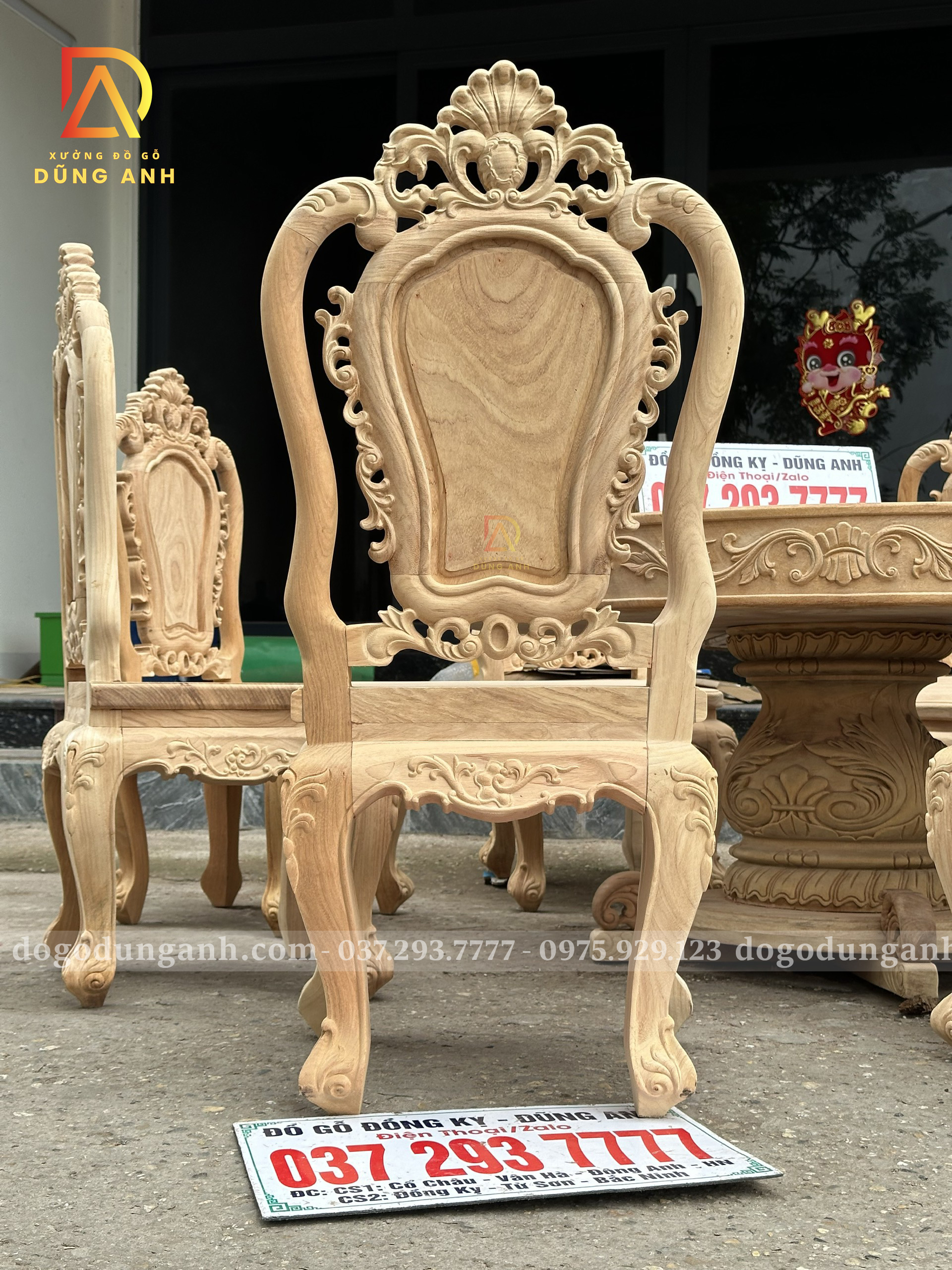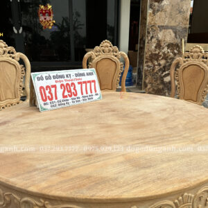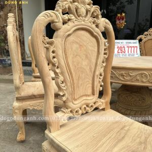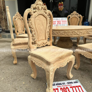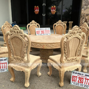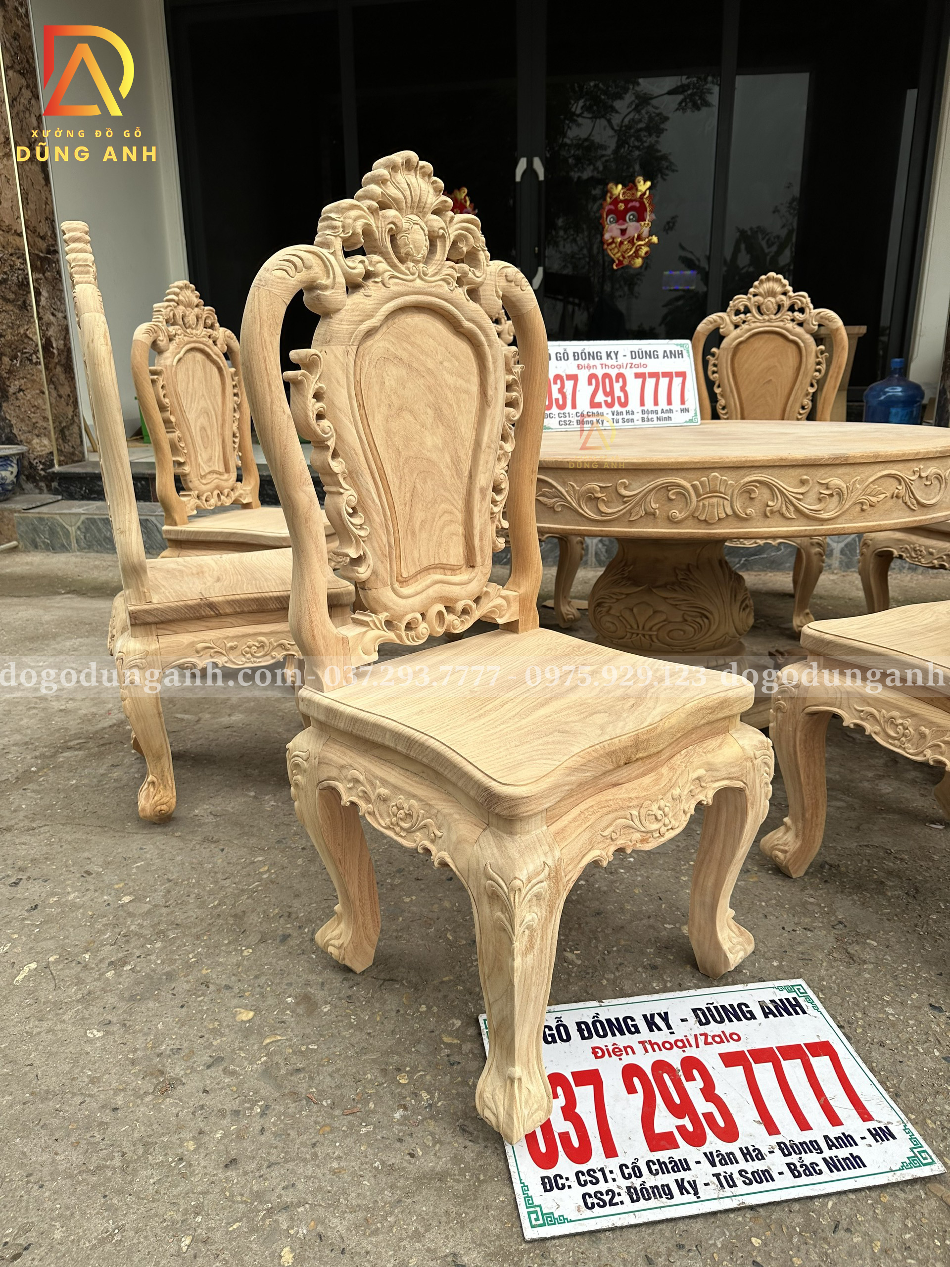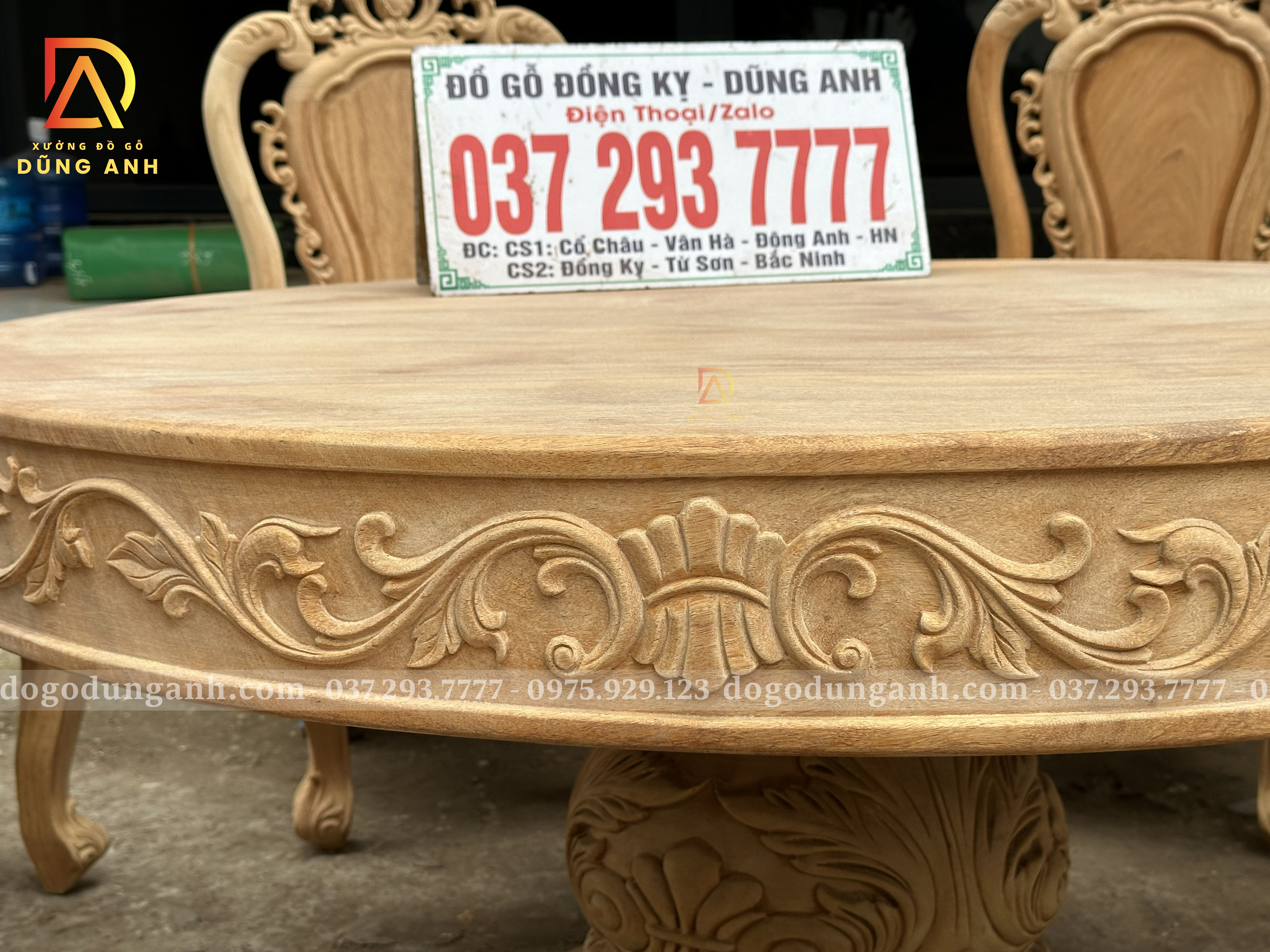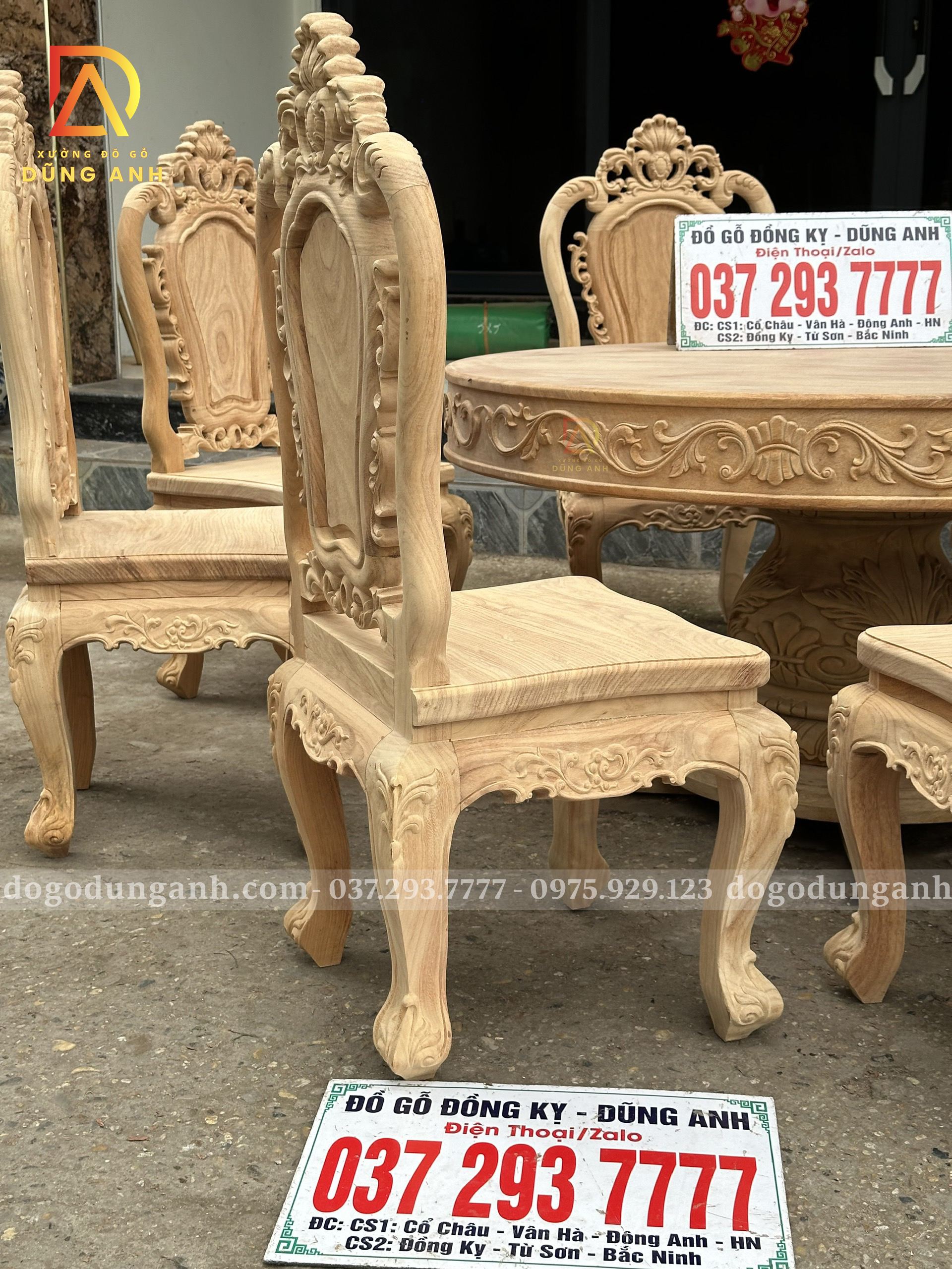 Đồ Gỗ Dũng Anh | Bộ Bàn tròn Nguyên Khối + 8 ghế Louis Hoa Hồng