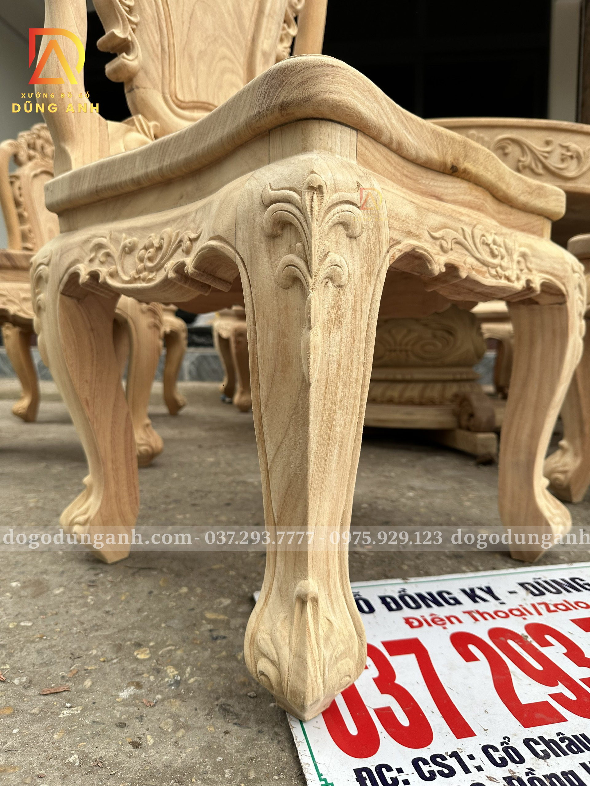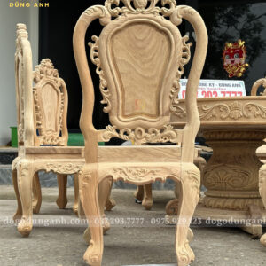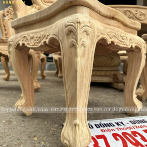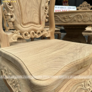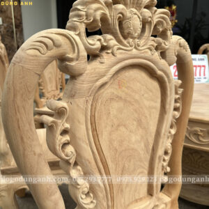 - Chân ghế là chân cột liền từ dưới lên trên và mặt sau cũng được đục chạm như mặt trước có độ dày là 5 cm cực kì đẹp và chắc chắn