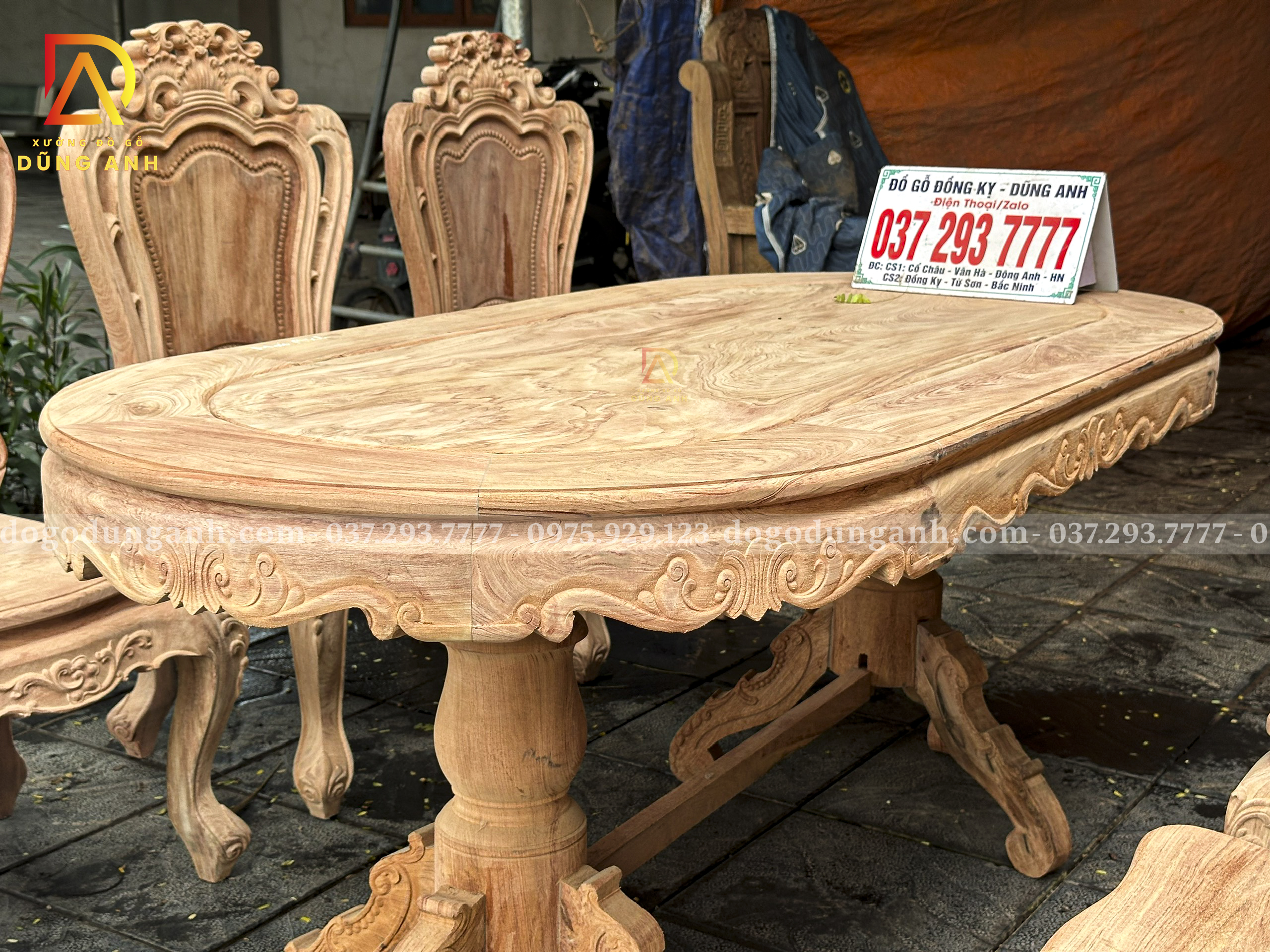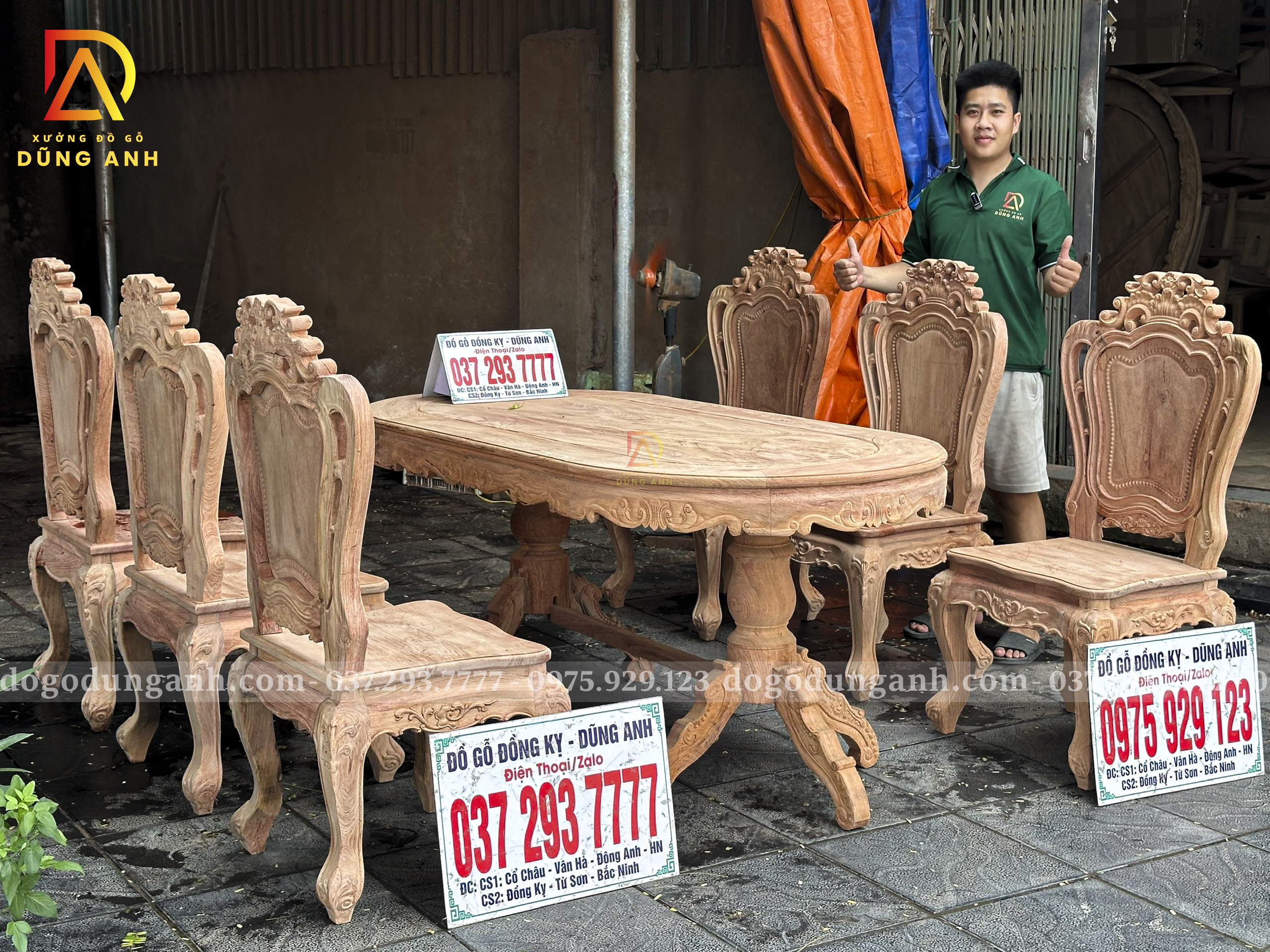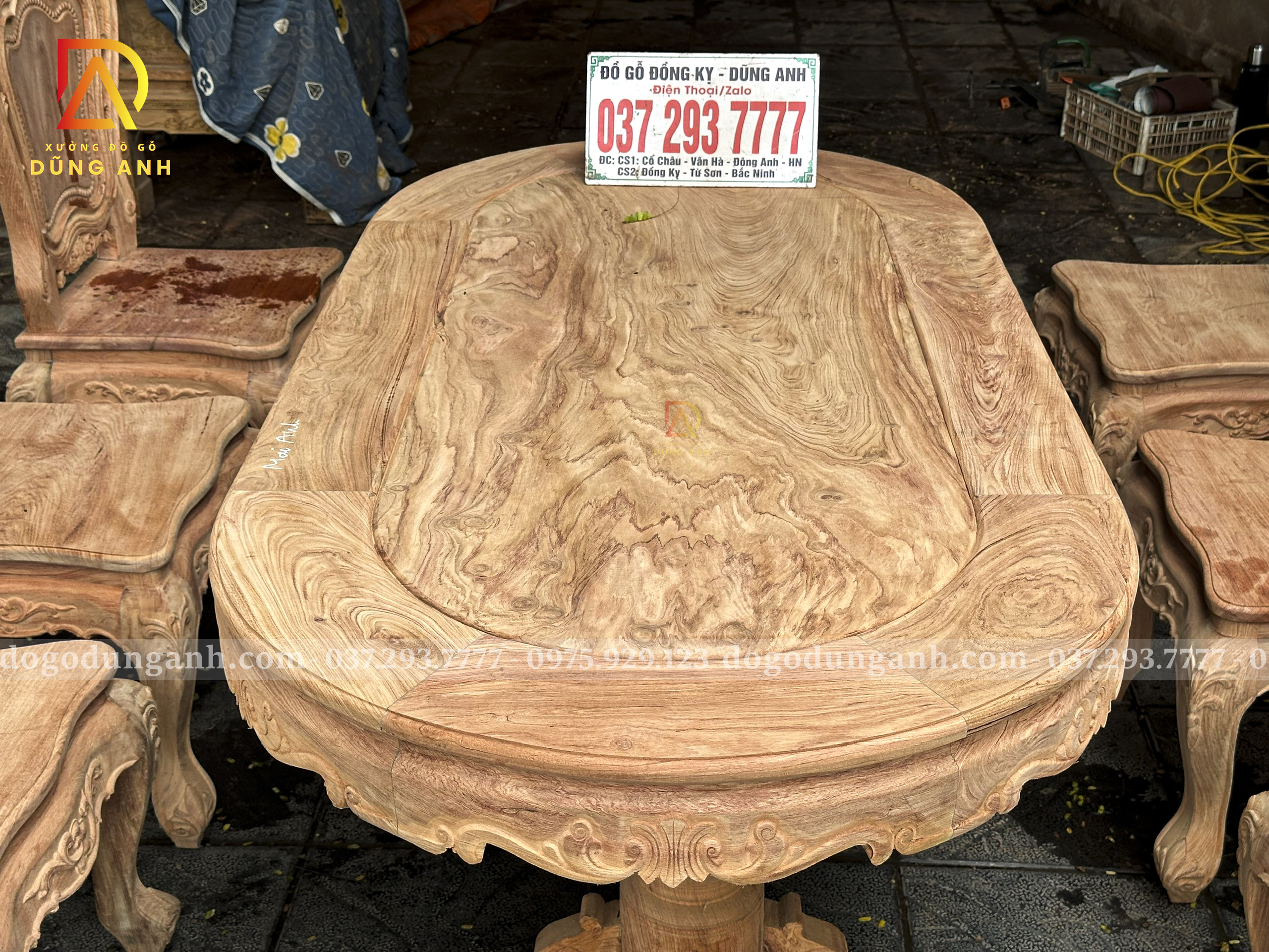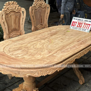 Đồ Gỗ Dũng Anh | Bộ Ghế Louis Hoàng Gia 6 Ghế – Bàn Ovan Gỗ Hương Đá Vân Đẹp Tuyệt Hảo