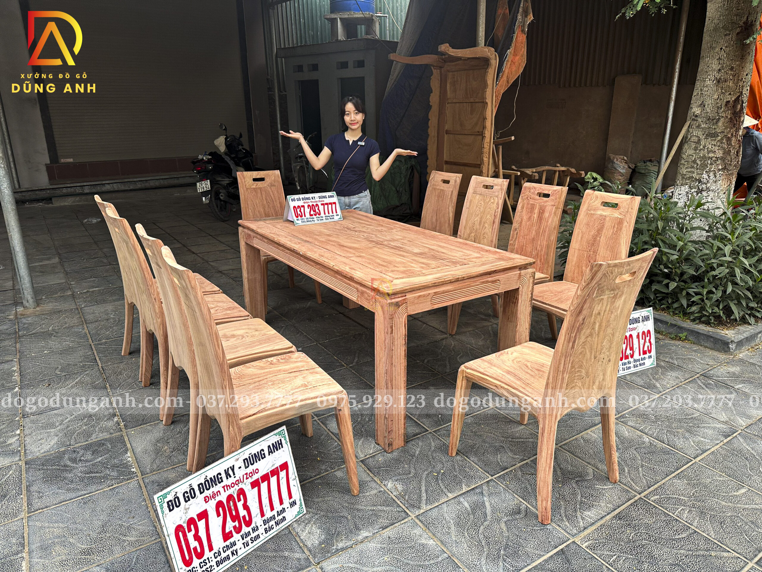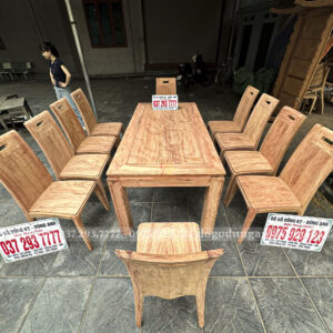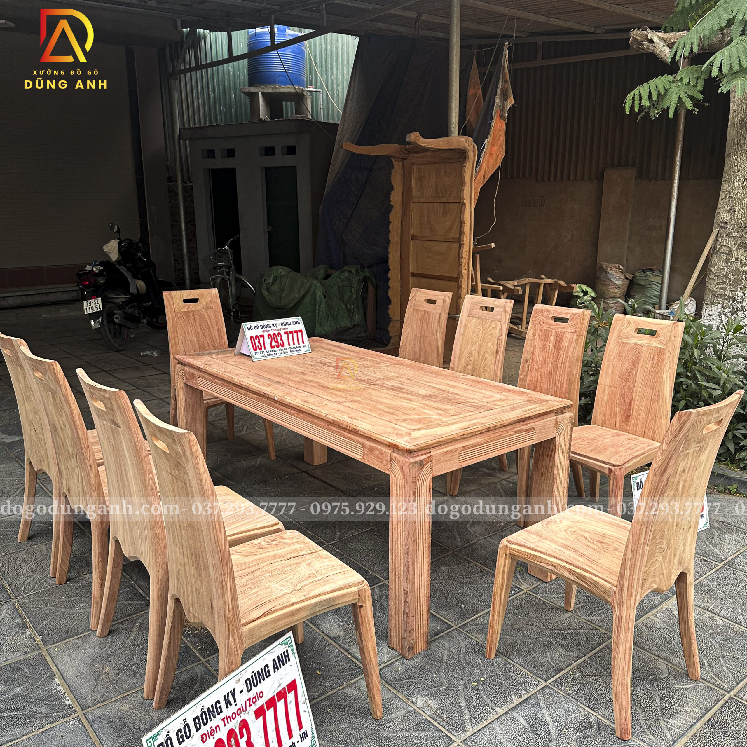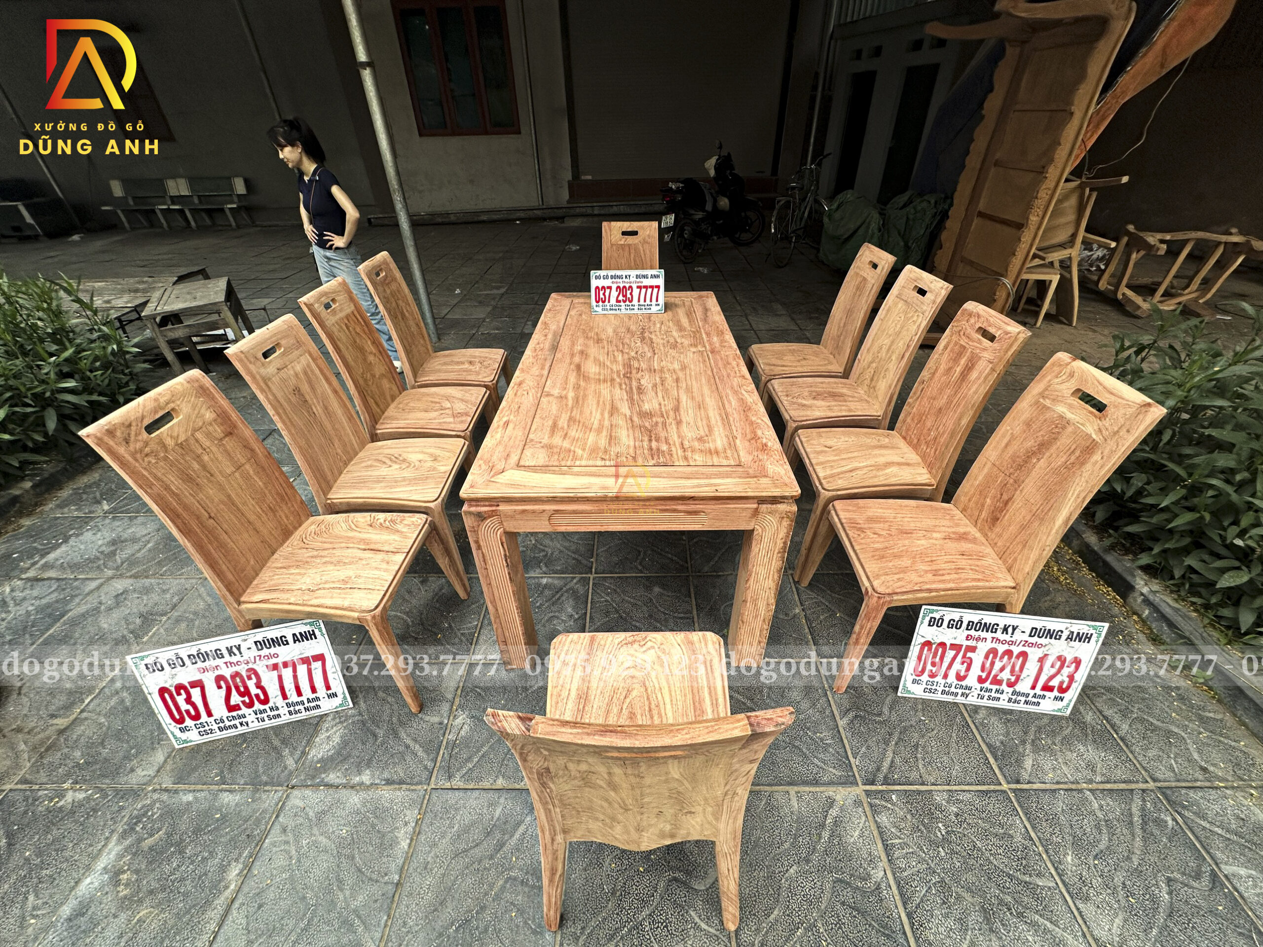 Đồ Gỗ Dũng Anh | Bộ sản phẩm 10 Ghế Hiện Đại ( Cong ) – Bàn Chữ nhật 4 chân Gỗ Hương Đá