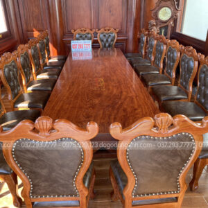 Đồ Gỗ Dũng Anh | Bộ sản phẩm 18 ghế Sừng Trâu bọc da và bàn nguyên khối gỗ Hương Đá,