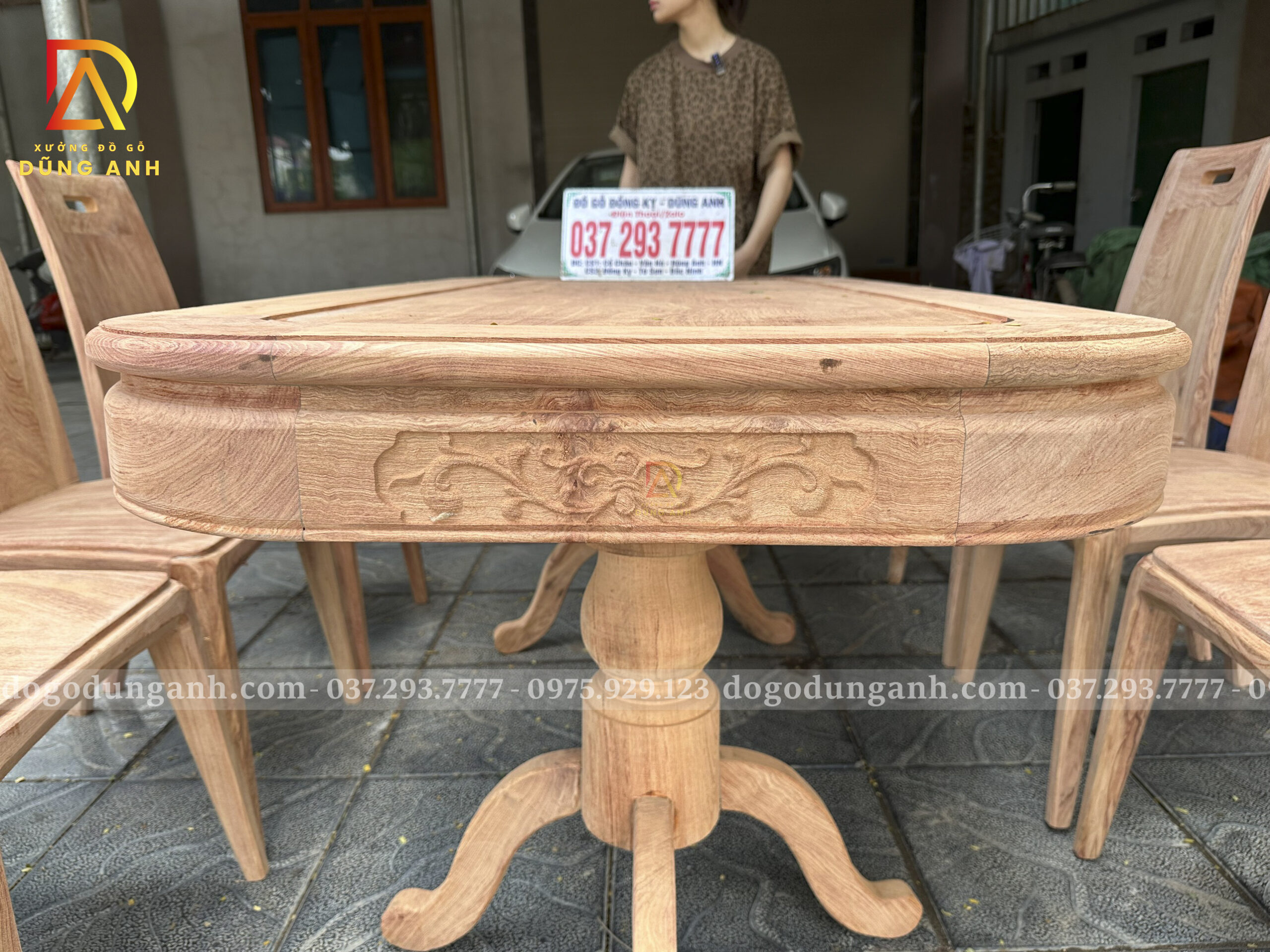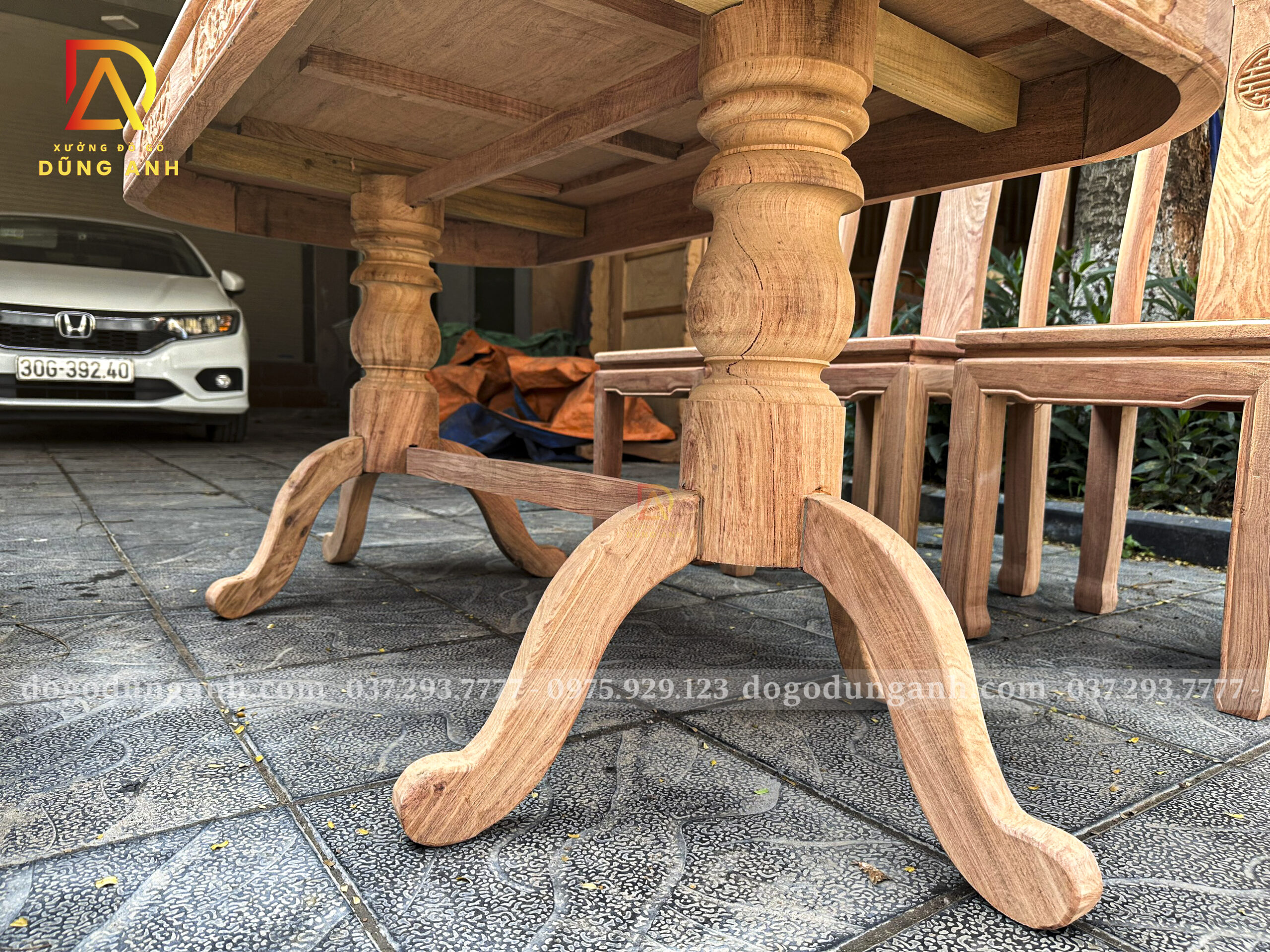 Hoa văn tân cổ điển được những nghệ nhân Xưởng đồ gỗ Dũng Anh chạm khắc tỉ mỉ tạo ra những đường nét sâu nổi hoa văn. Hoa văn tân cổ điển được chạm khắc trên bộ ghế ăn đòi hỏi sáng tạo, cân xứng phải có tay nghề cứng am hiểu về hoa văn phương tây và đặc biệt bàn tay phải có sự gia công kỹ lưỡng