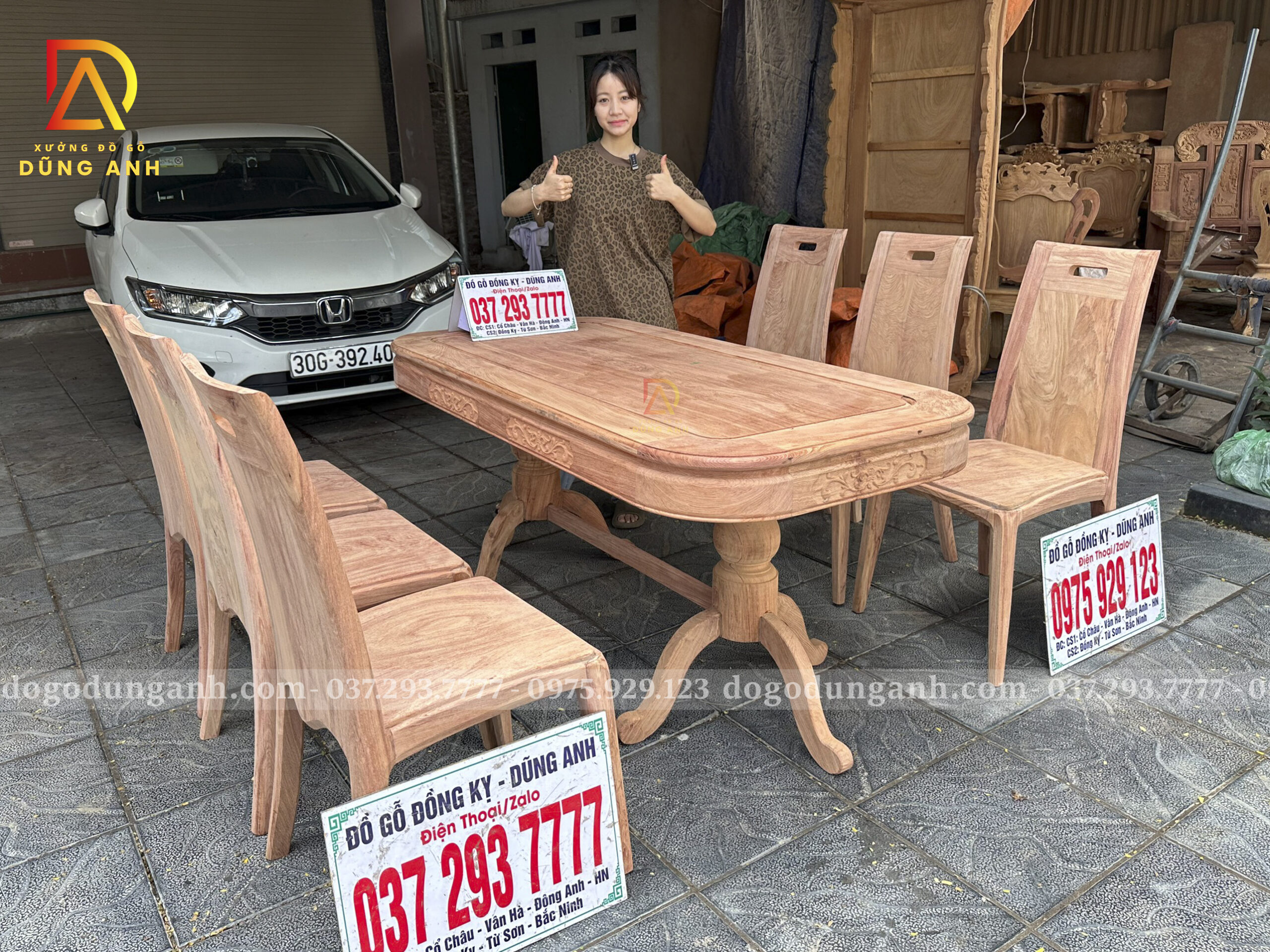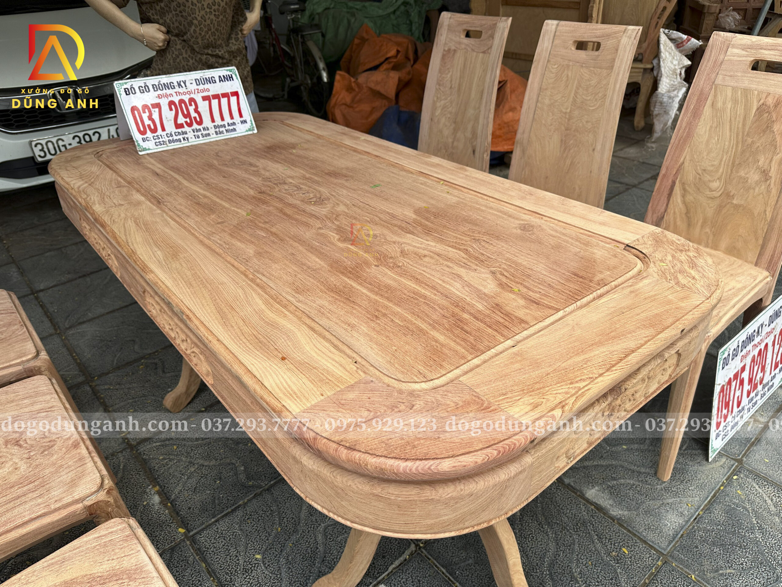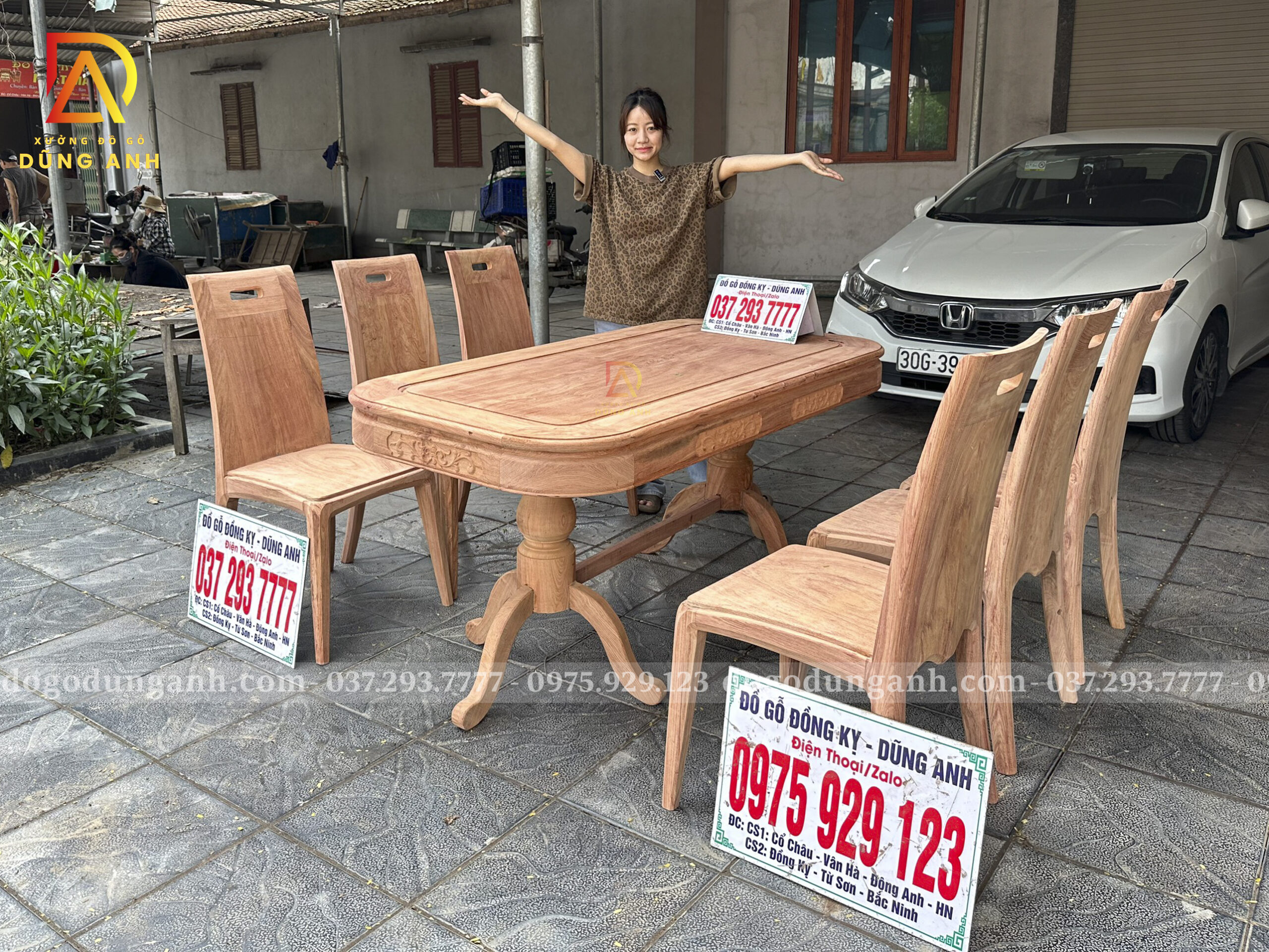 Đồ Gỗ Dũng Anh | Bộ sản phẩm 6 Ghế Hiện Đại ( Cong ) – Bàn Chữ nhật Yếm bo Gỗ Hương Đá