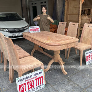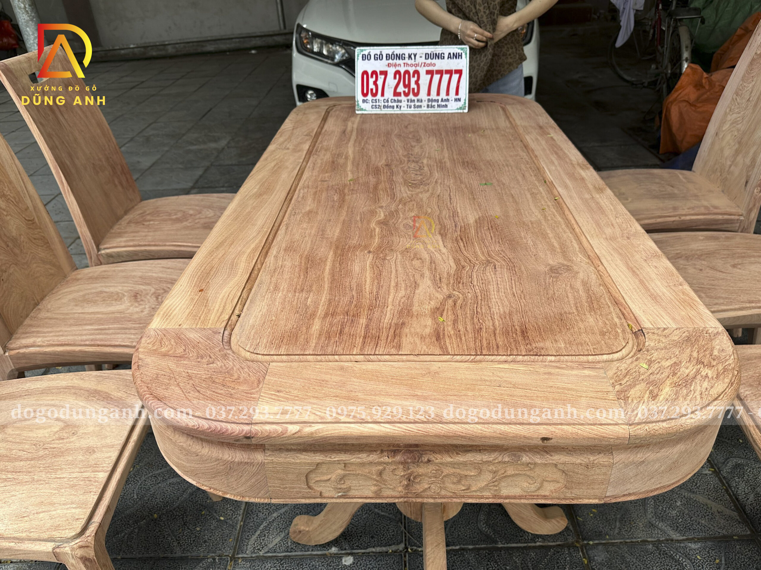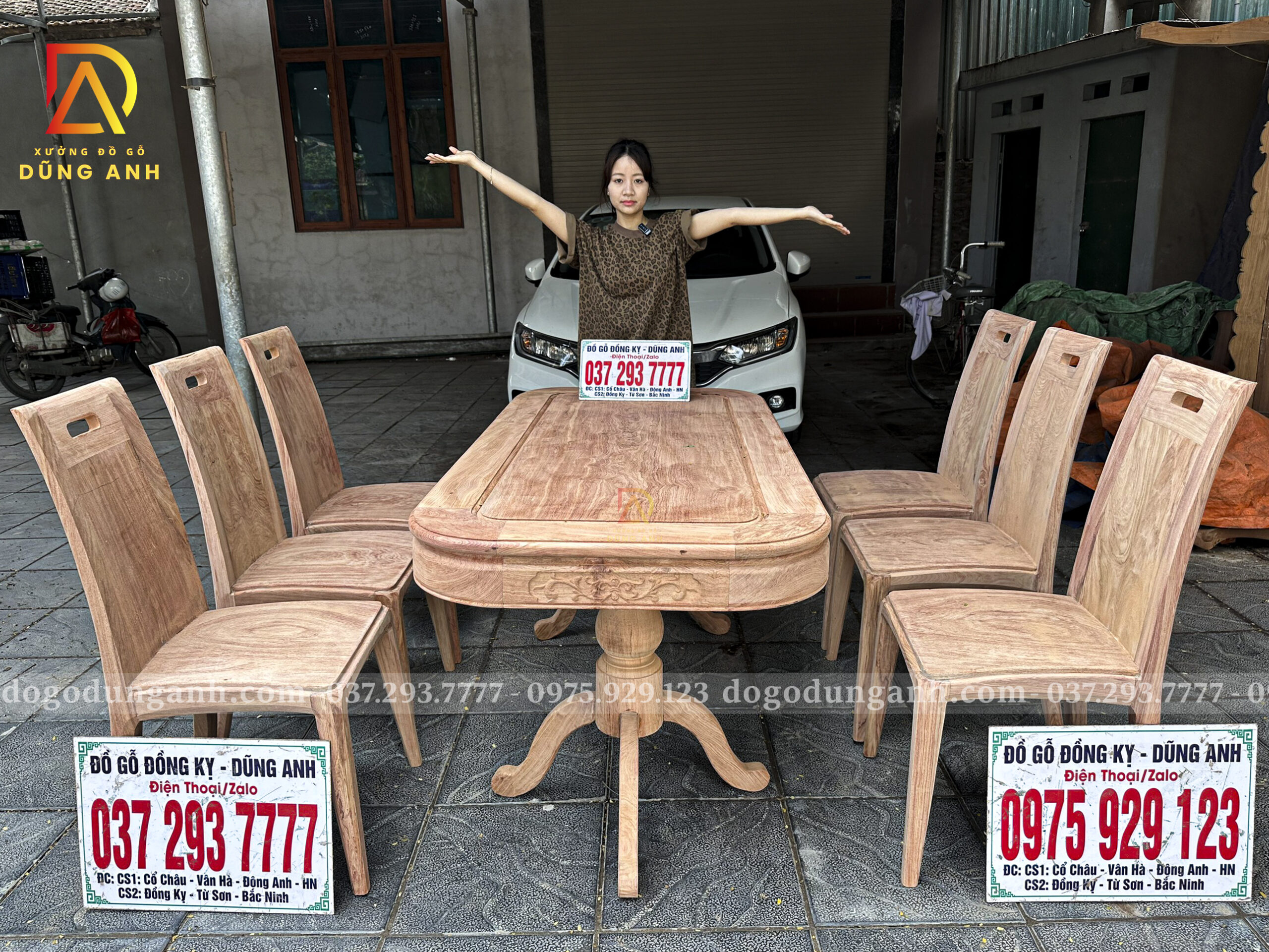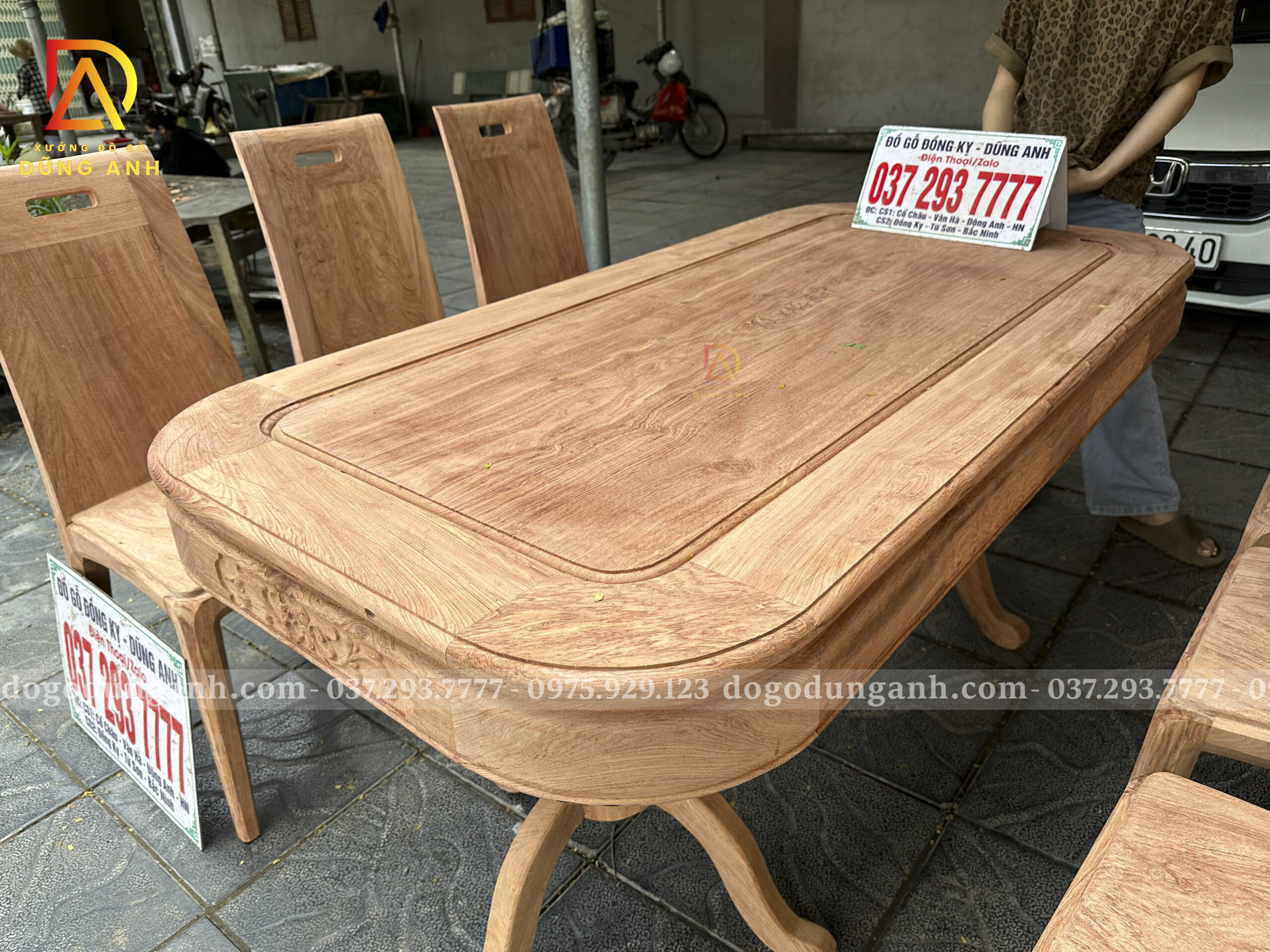 Đồ Gỗ Dũng Anh | Bộ sản phẩm 6 Ghế Hiện Đại ( Cong ) – Bàn Chữ nhật Yếm bo Gỗ Hương Đá