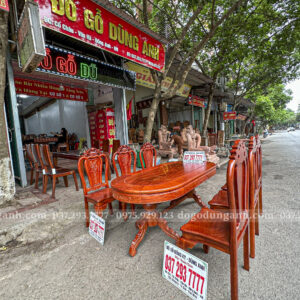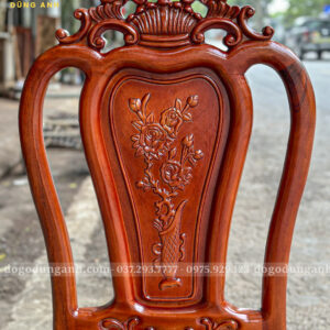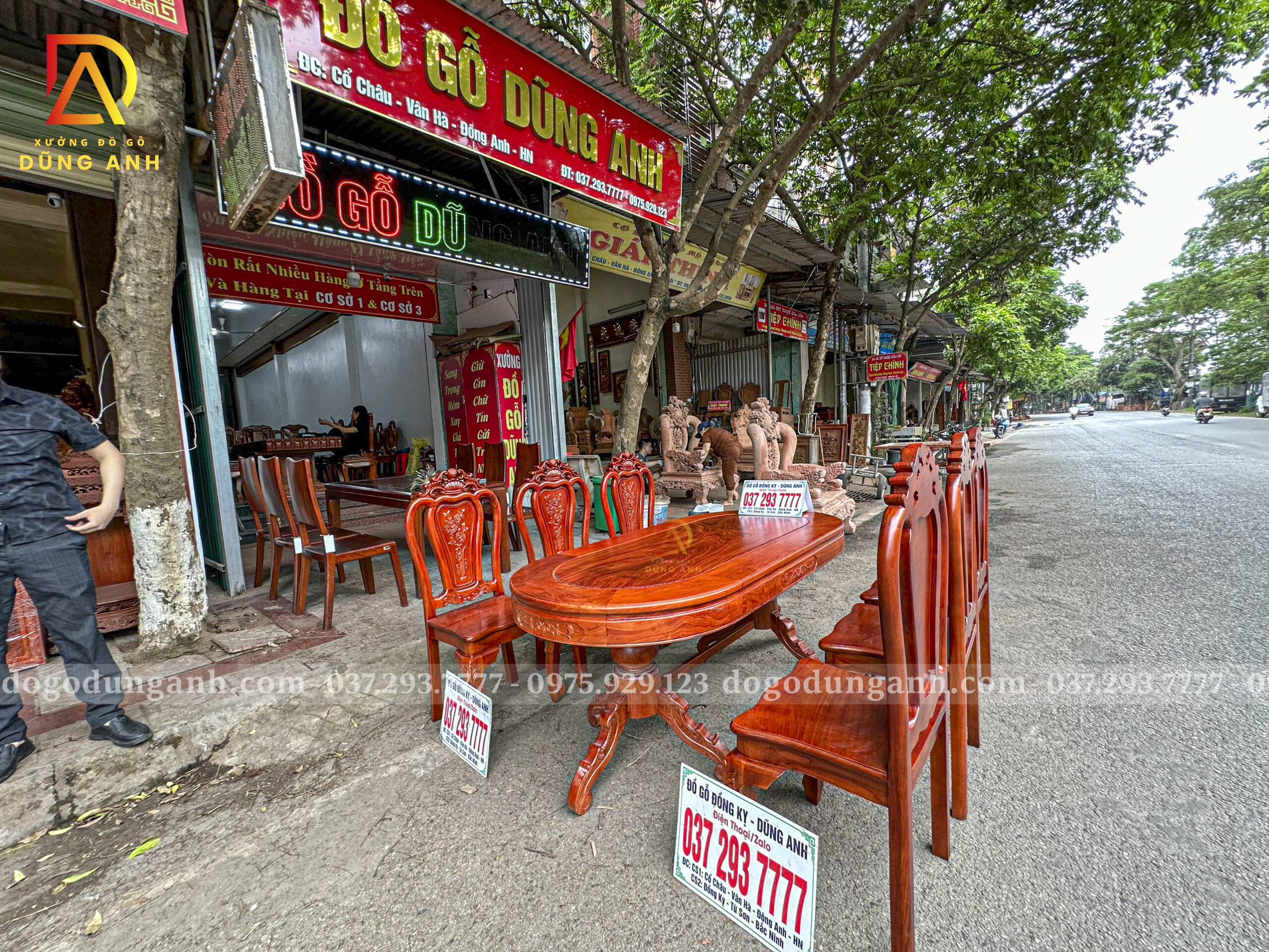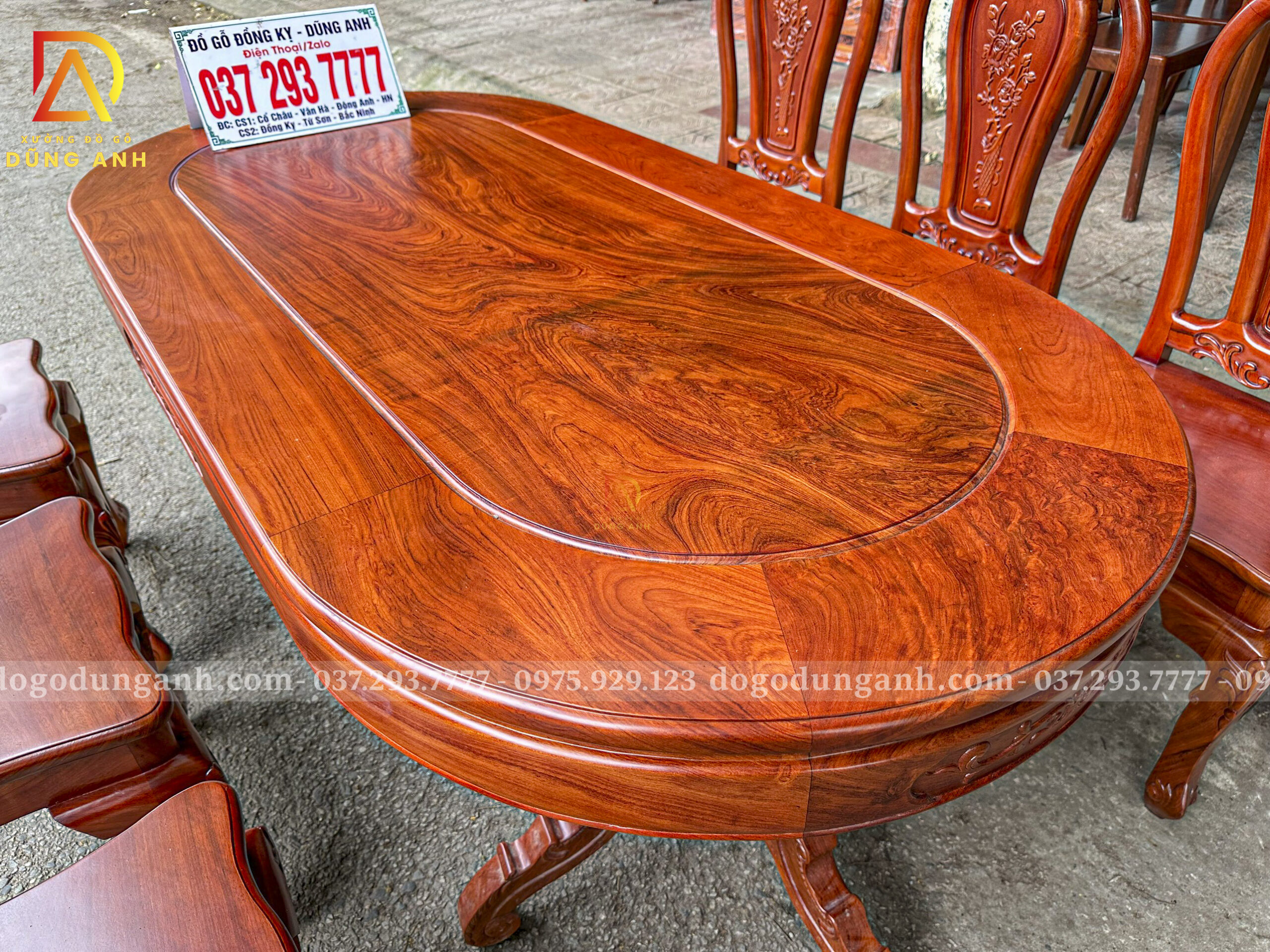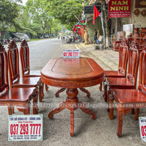 Đồ Gỗ Dũng Anh | Bộ sản phẩm 6 Ghế Hoa Cúc kết hợp Bàn Ovan Siêu Vân – Gỗ Hương Đá