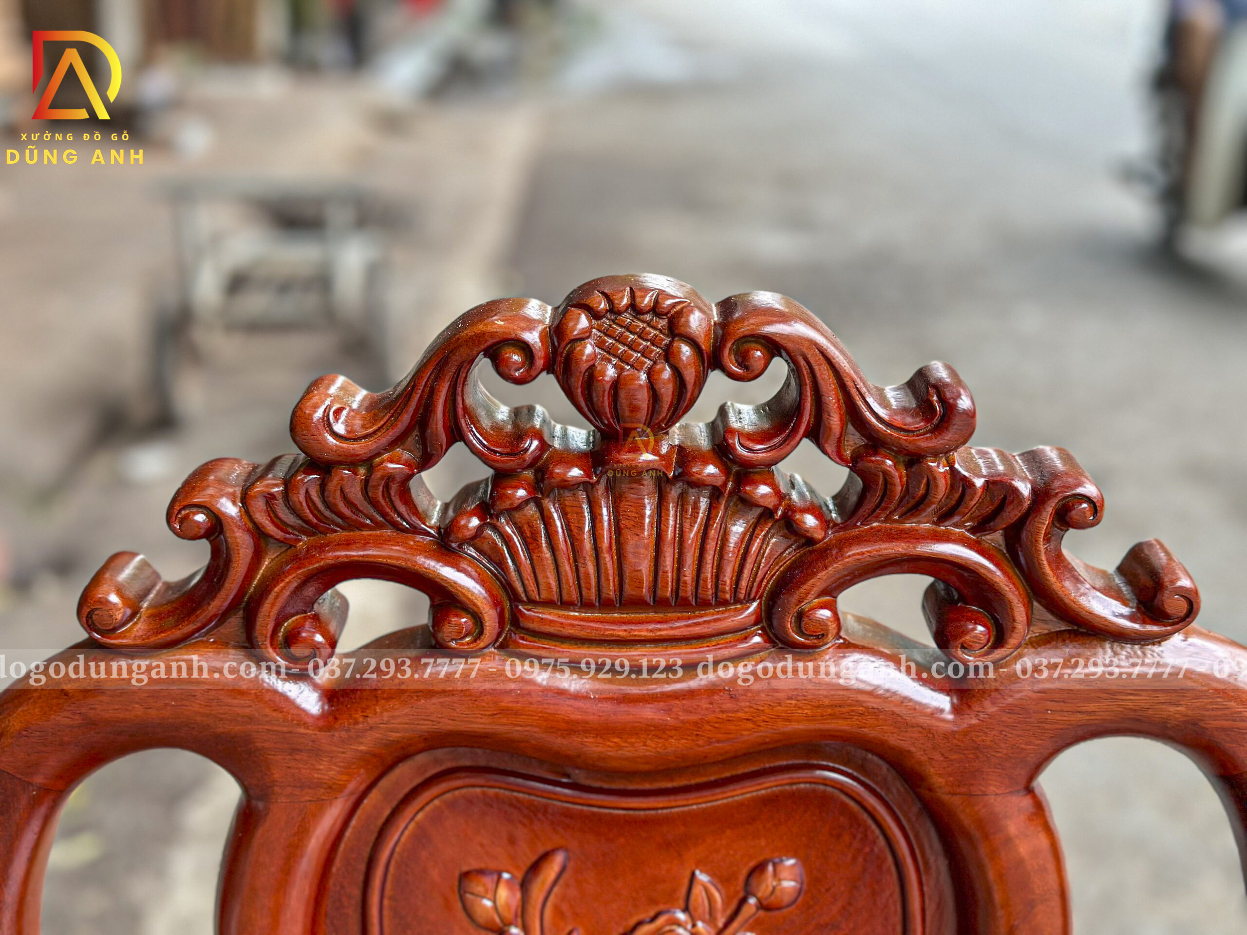 Từng chi tiết trong bộ bàn ghế này được thực hiện bởi những nghệ nhân có tay nghề cao, am hiểu sâu sắc về gỗ và mỹ thuật cổ điển. Mỗi đường soi, mỗi nét chạm đều được xử lý tinh xảo, đảm bảo sản phẩm hoàn thiện đạt độ sắc nét cao và bền đẹp theo thời gian.