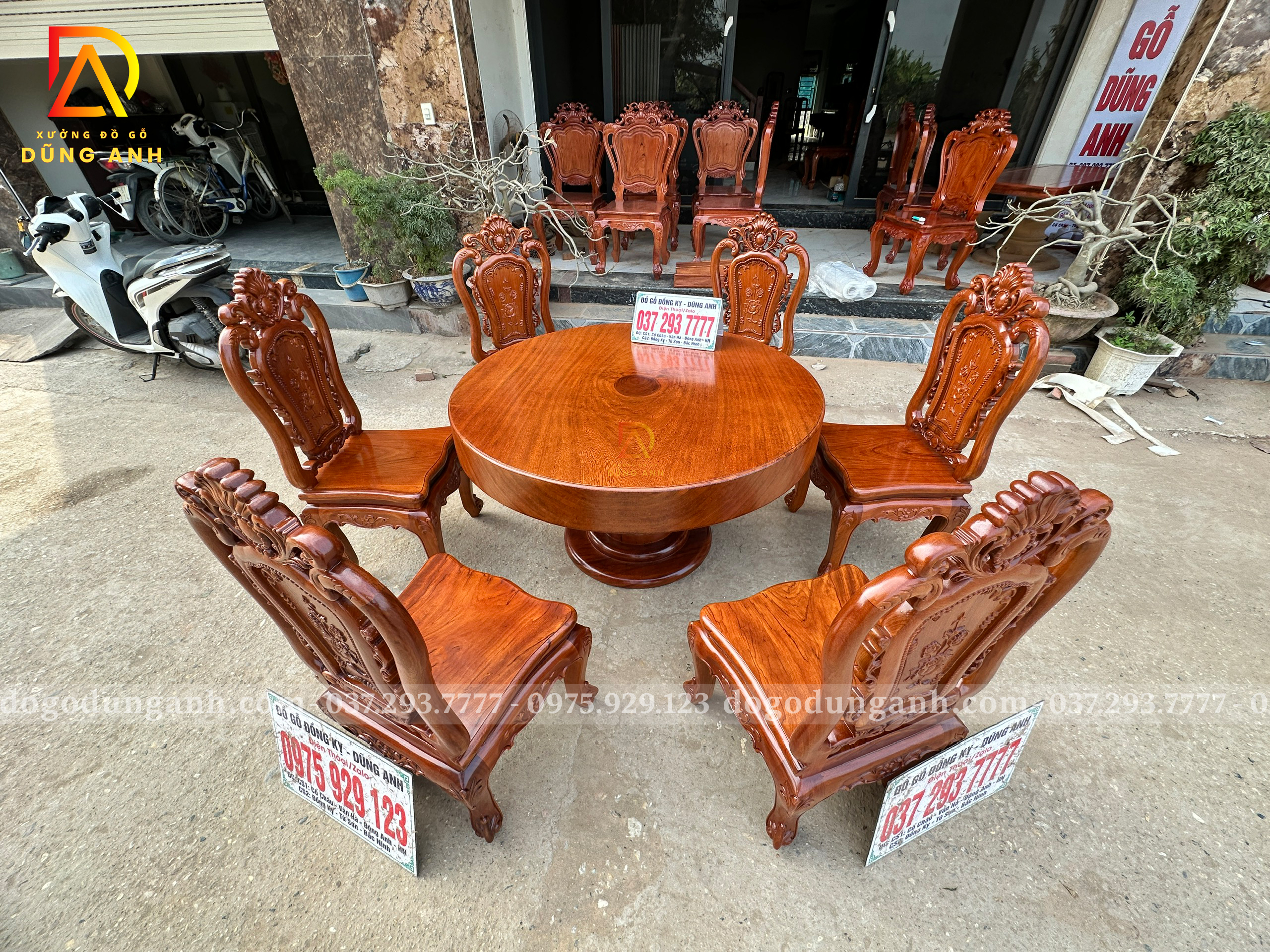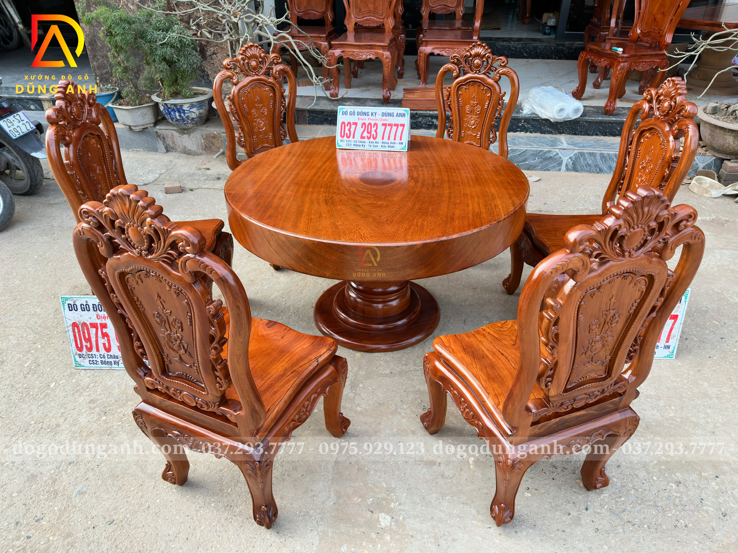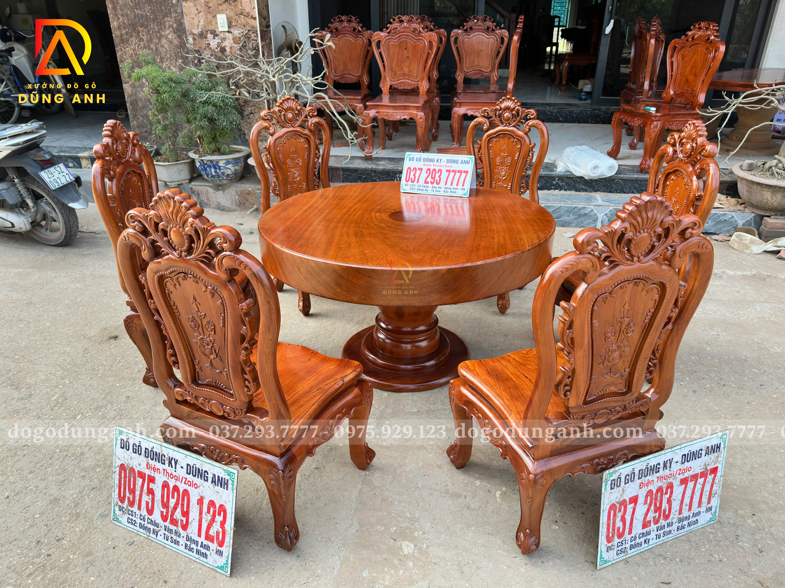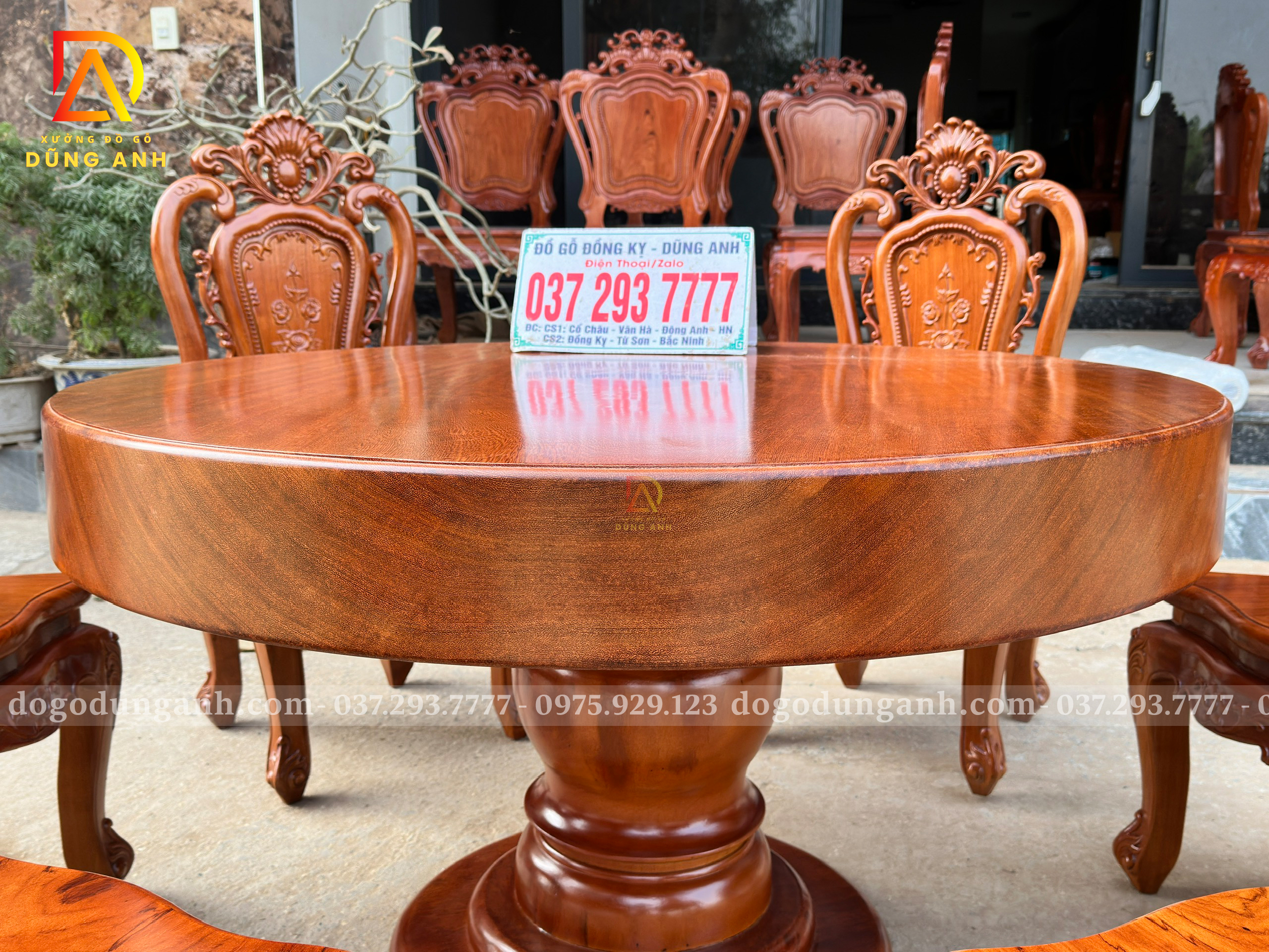 Với kết cấu chắc chắn, độ bền vượt trội và khả năng chịu lực cao, gỗ Gõ Đỏ hạn chế tối đa tình trạng cong vênh, nứt nẻ và mối mọt. Không chỉ đẹp ở hiện tại, bàn tròn nguyên khối gỗ Gõ Đỏ còn mang giá trị sử dụng lâu dài, thẩm mỹ bền vững theo thời gian, đồng thời tạo cảm giác ấm cúng, cân bằng và sum vầy – lựa chọn xứng tầm cho gia chủ yêu phong cách hiện đại, tinh tế và đẳng cấp.