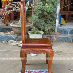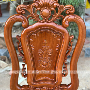 - Vách tựa liền cong dẻo được đục chạm thủ công, đường nét mềm mại, liền mạch, thể hiện rõ tay nghề tinh xảo của nghệ nhân. Thiết kế vừa đảm bảo độ chắc chắn, vừa mang lại cảm giác ngồi thoải mái, đồng thời tôn lên giá trị thẩm mỹ và đẳng cấp của toàn bộ chiếc ghế.