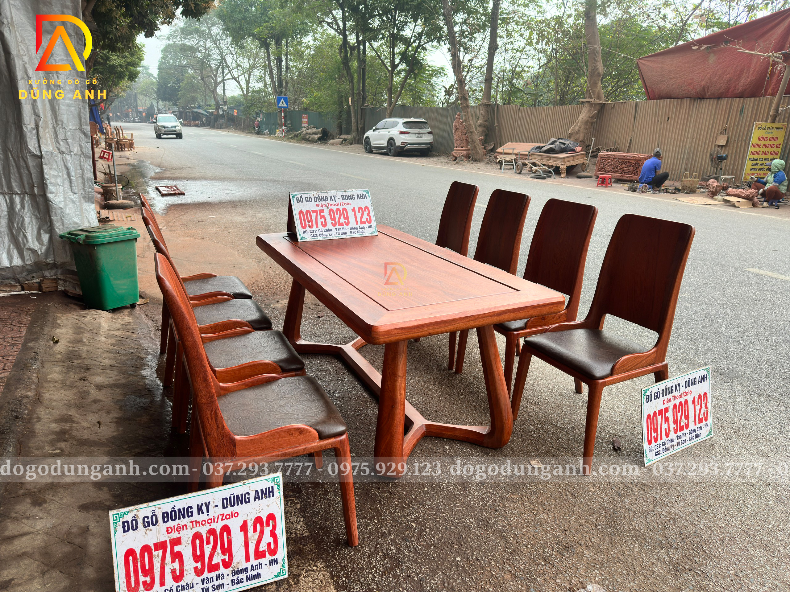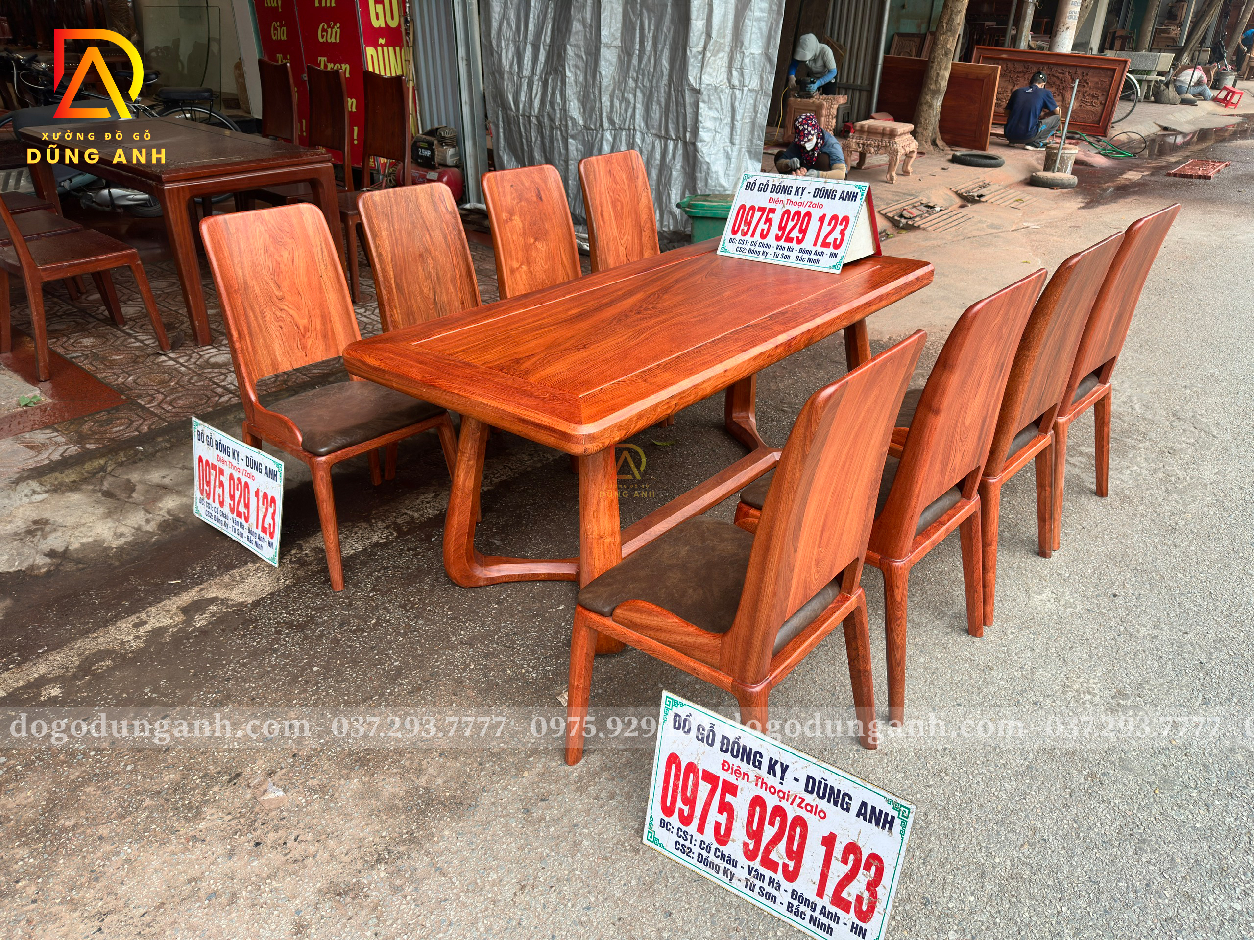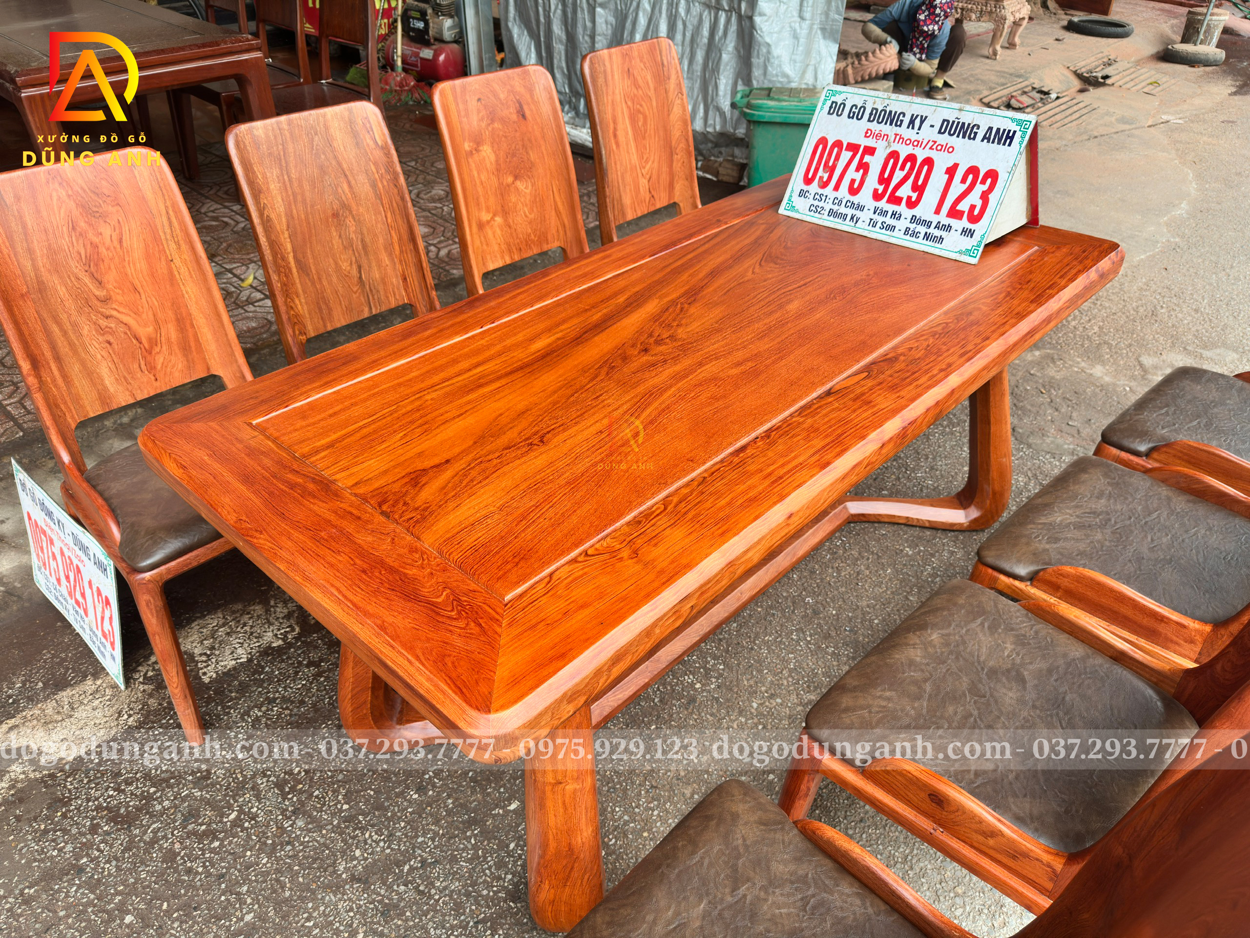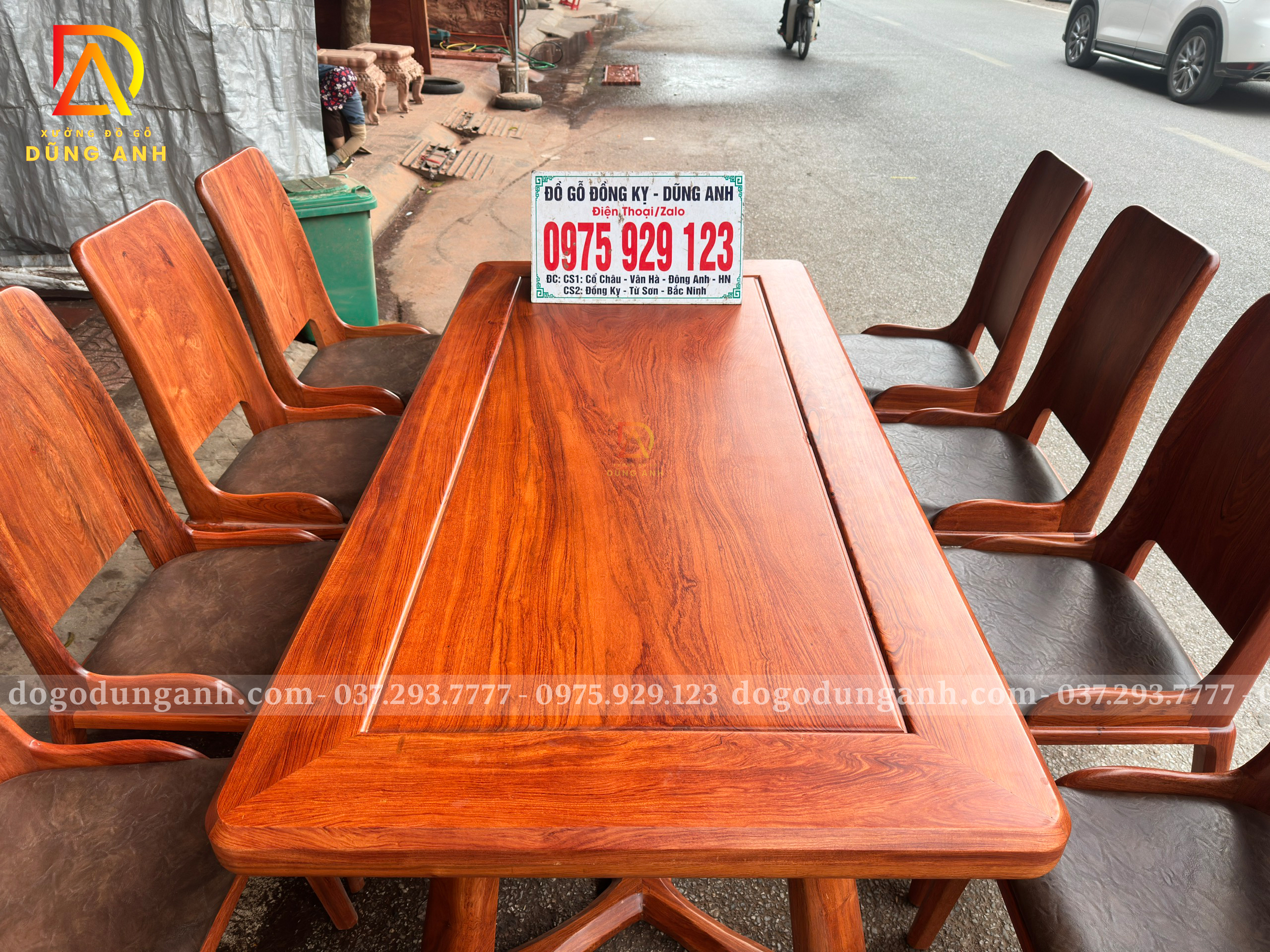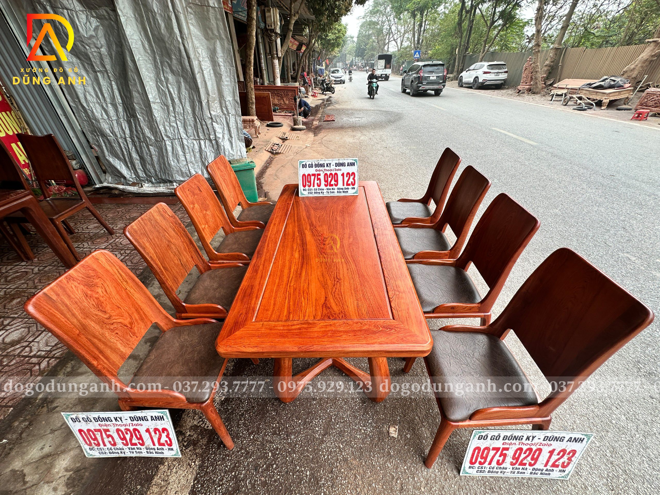 Đồ Gỗ Dũng Anh | Bộ sản phẩm 8 Ghế Hiện Đại bọc da – Bàn Chữ Nhật – Gỗ hương đá.