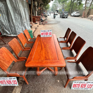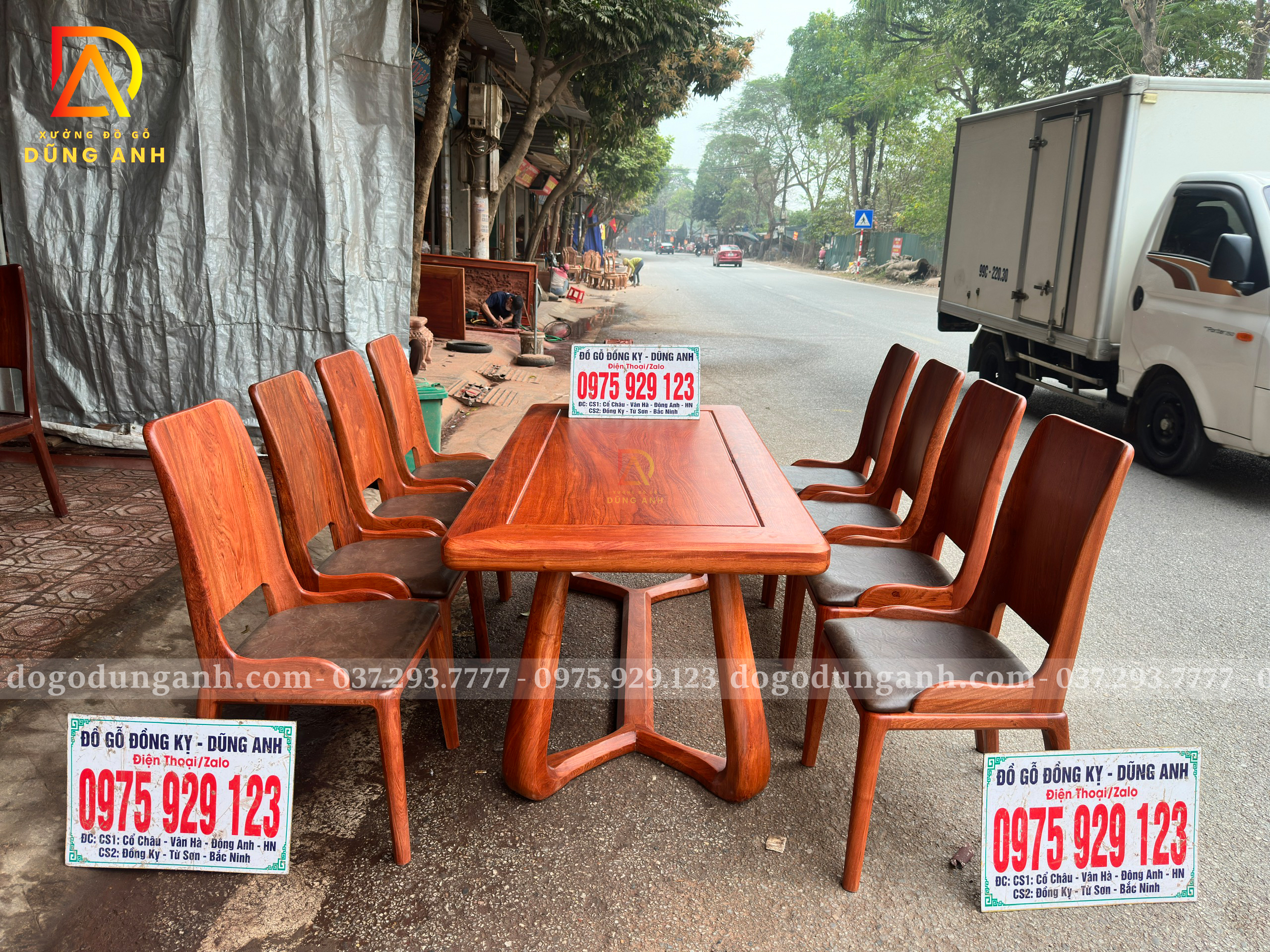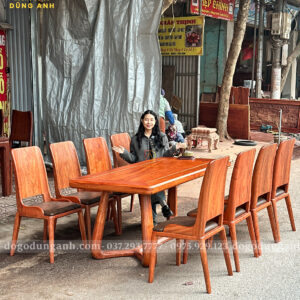 Bộ bàn ăn 8 ghế được chế tác từ chất liệu gỗ hương đá tự nhiên