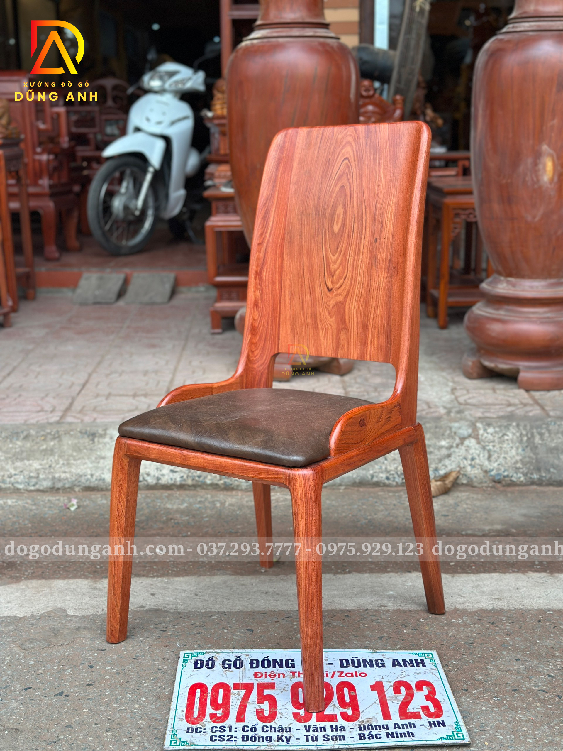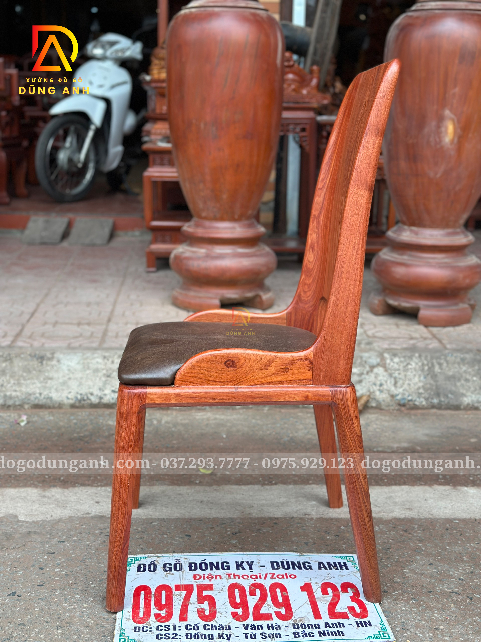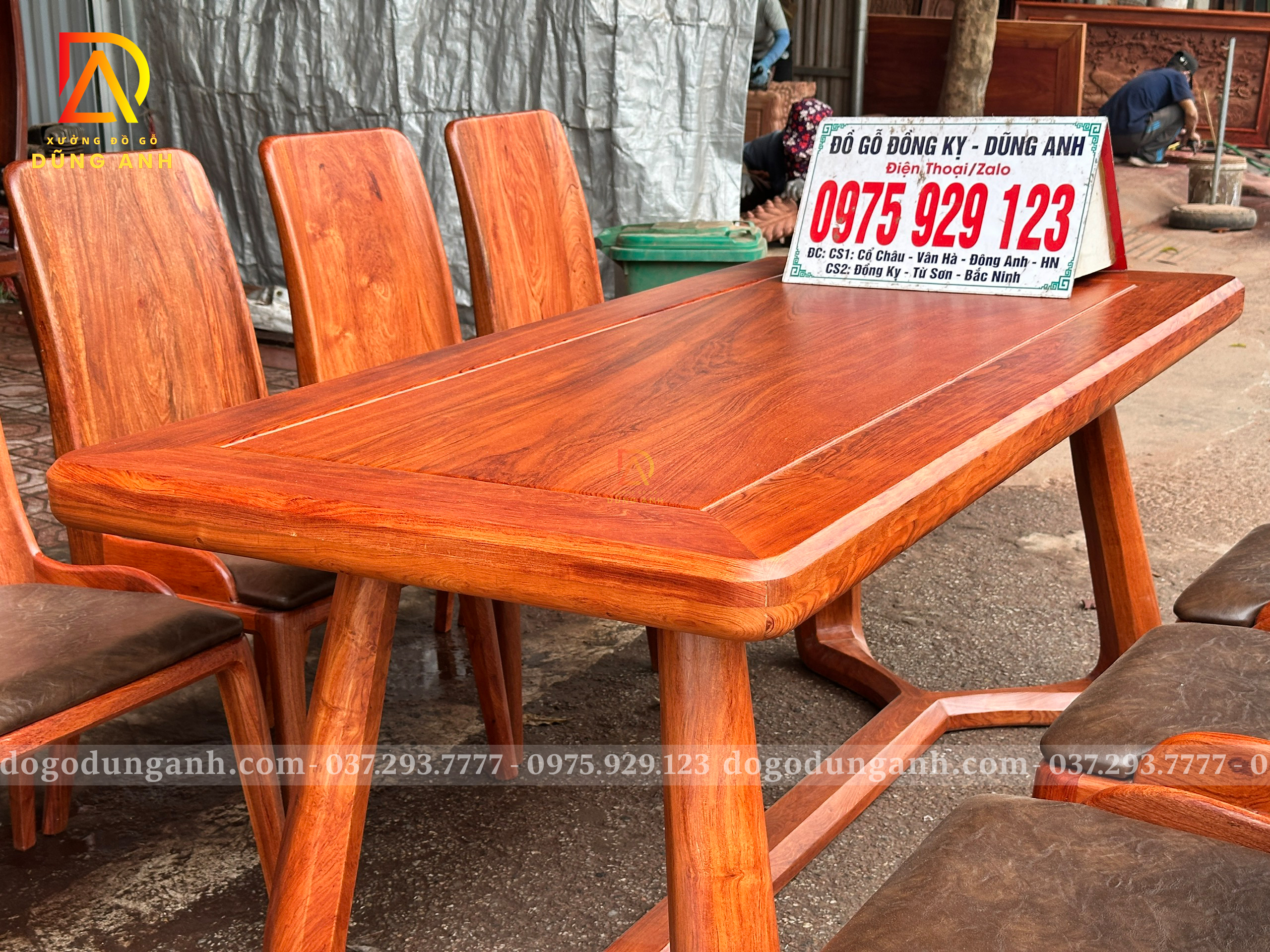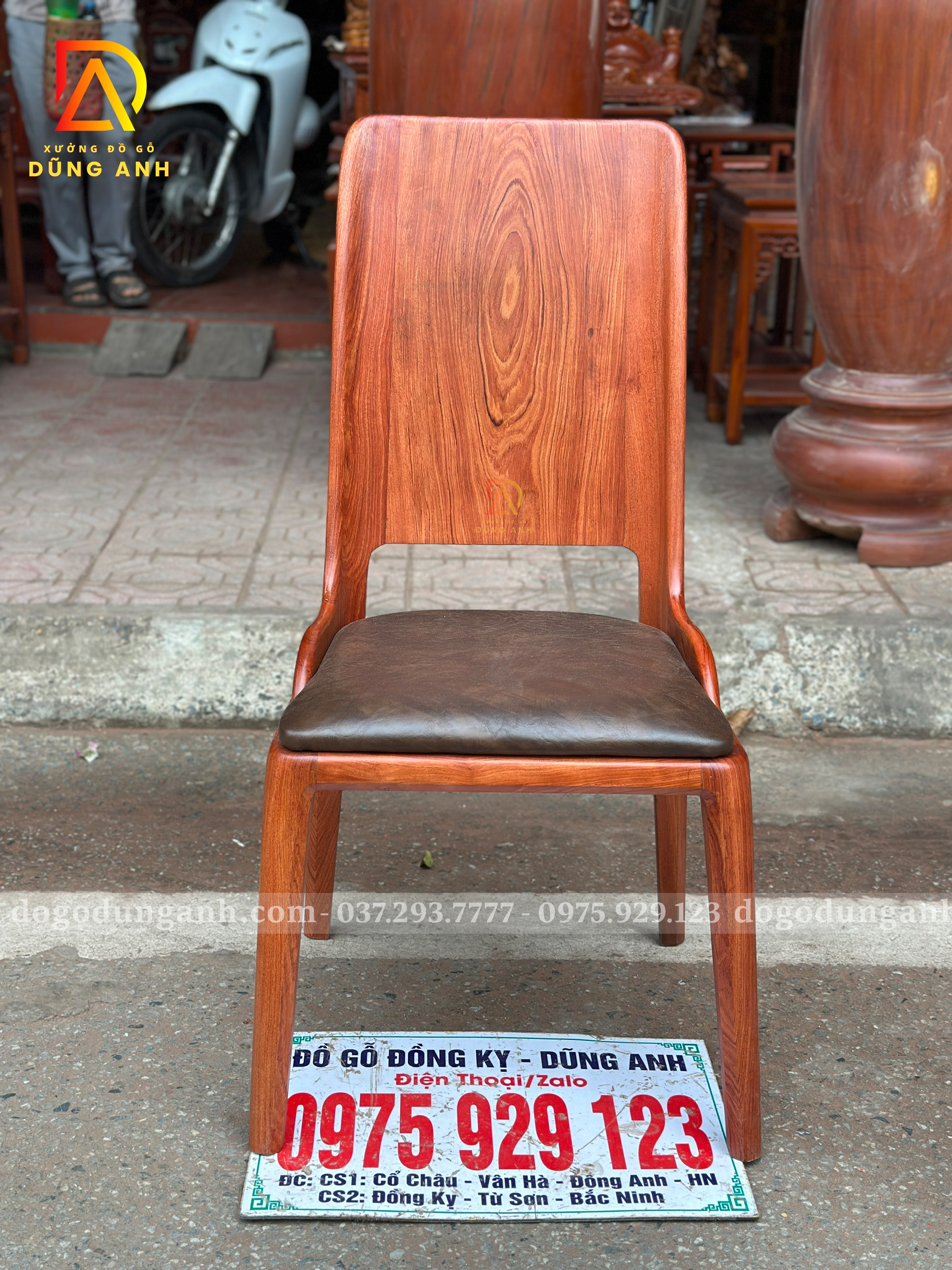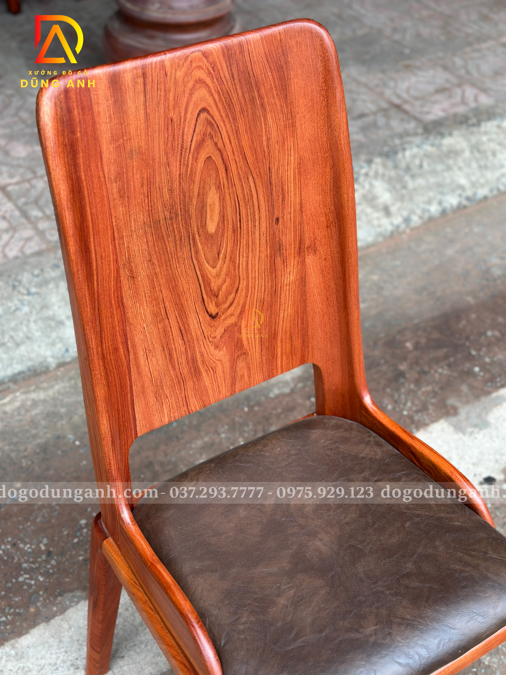 Các chi tiết trên bộ ghế ăn được những nghệ nhân Xưởng Đồ Gỗ Dũng Anh gia công tỉ mỉ, tạo nên những đường nét gọn gàng, sắc sảo và dứt khoát. Thay vì hoa văn cầu kỳ, thiết kế hiện đại tập trung vào tỷ lệ cân đối, bề mặt hoàn thiện tinh tế và từng đường bo, đường cong được xử lý chính xác, thể hiện rõ tay nghề vững vàng và tư duy thẩm mỹ đương đại.