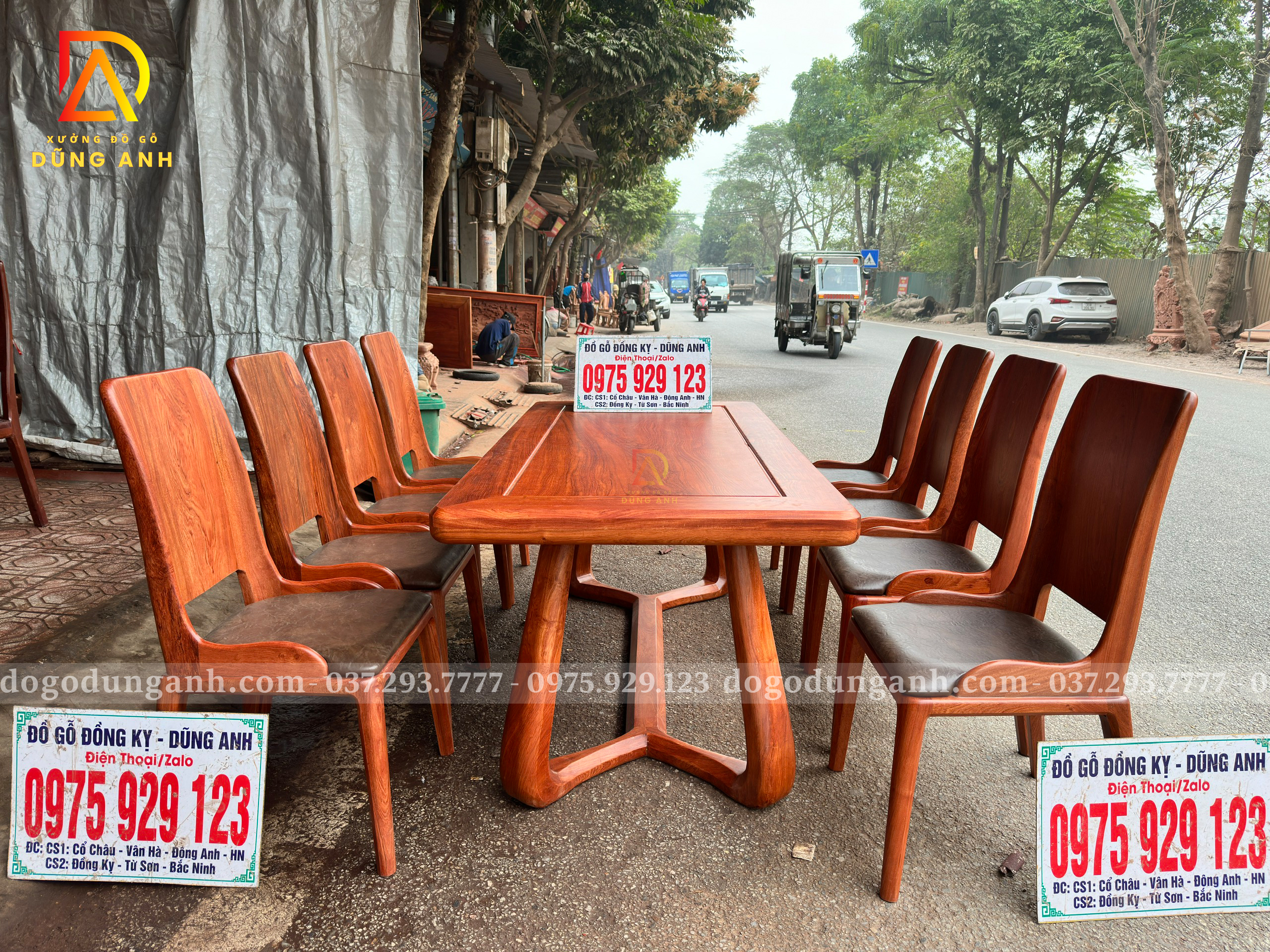 Bạn có thể yêu cầu điều chỉnh kích thước bàn, số lượng ghế hoặc chi tiết chạm khắc theo sở thích và không gian sử dụng. Chỉ cần liên hệ với Xưởng đồ gỗ Dũng Anh, mọi thiết kế sẽ được đáp ứng một cách linh hoạt và tận tâm.