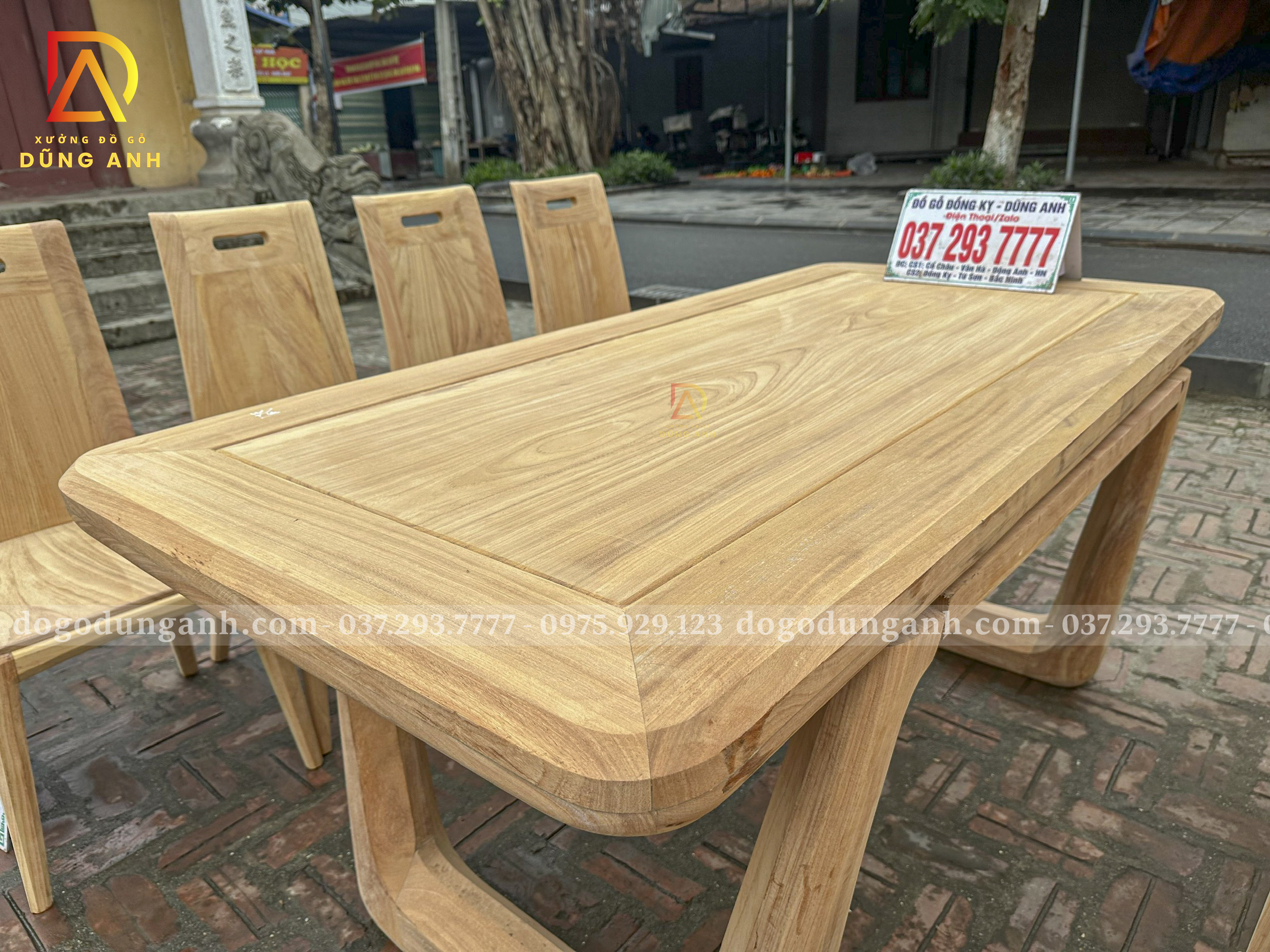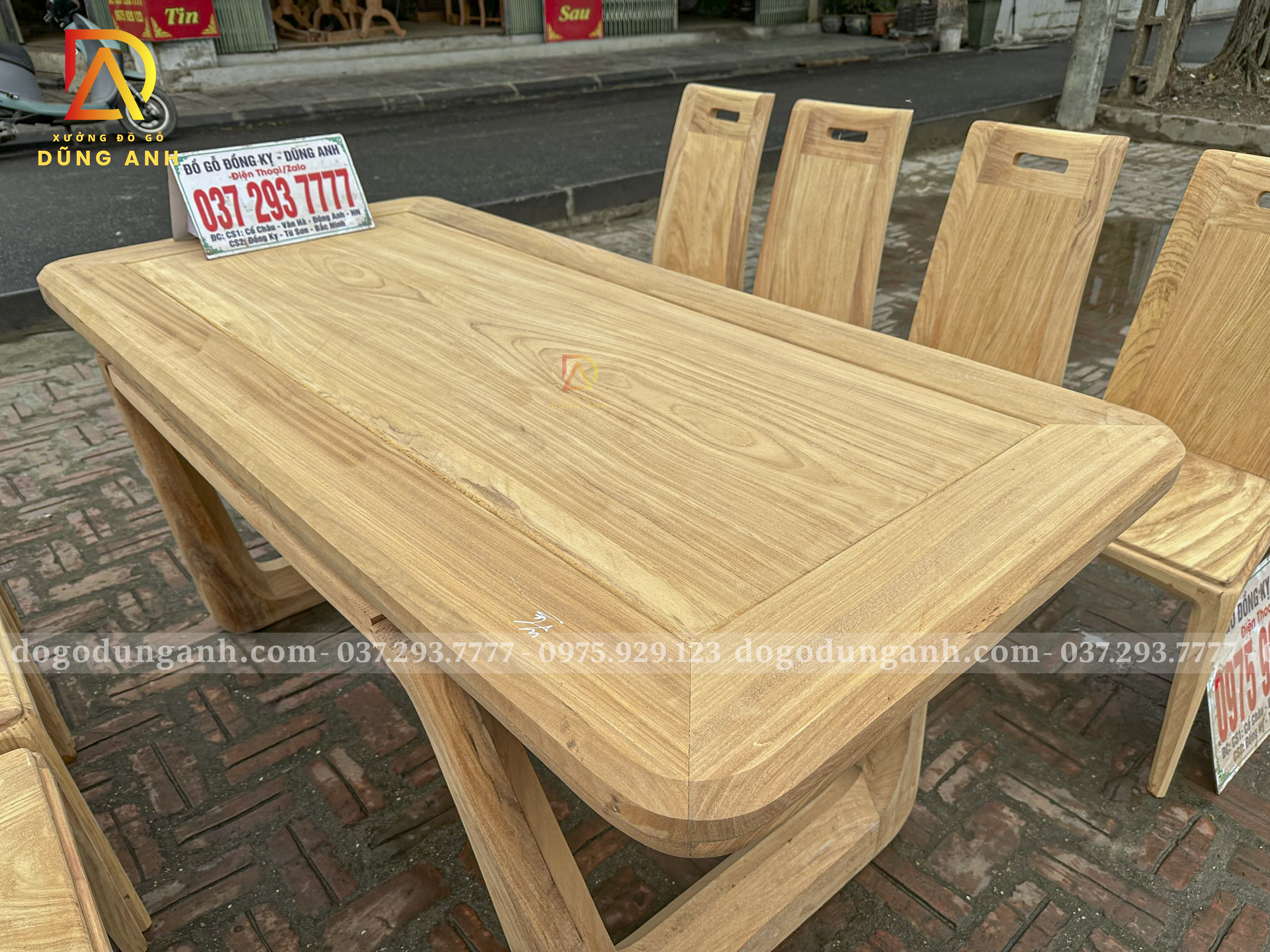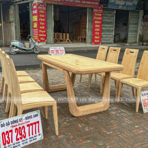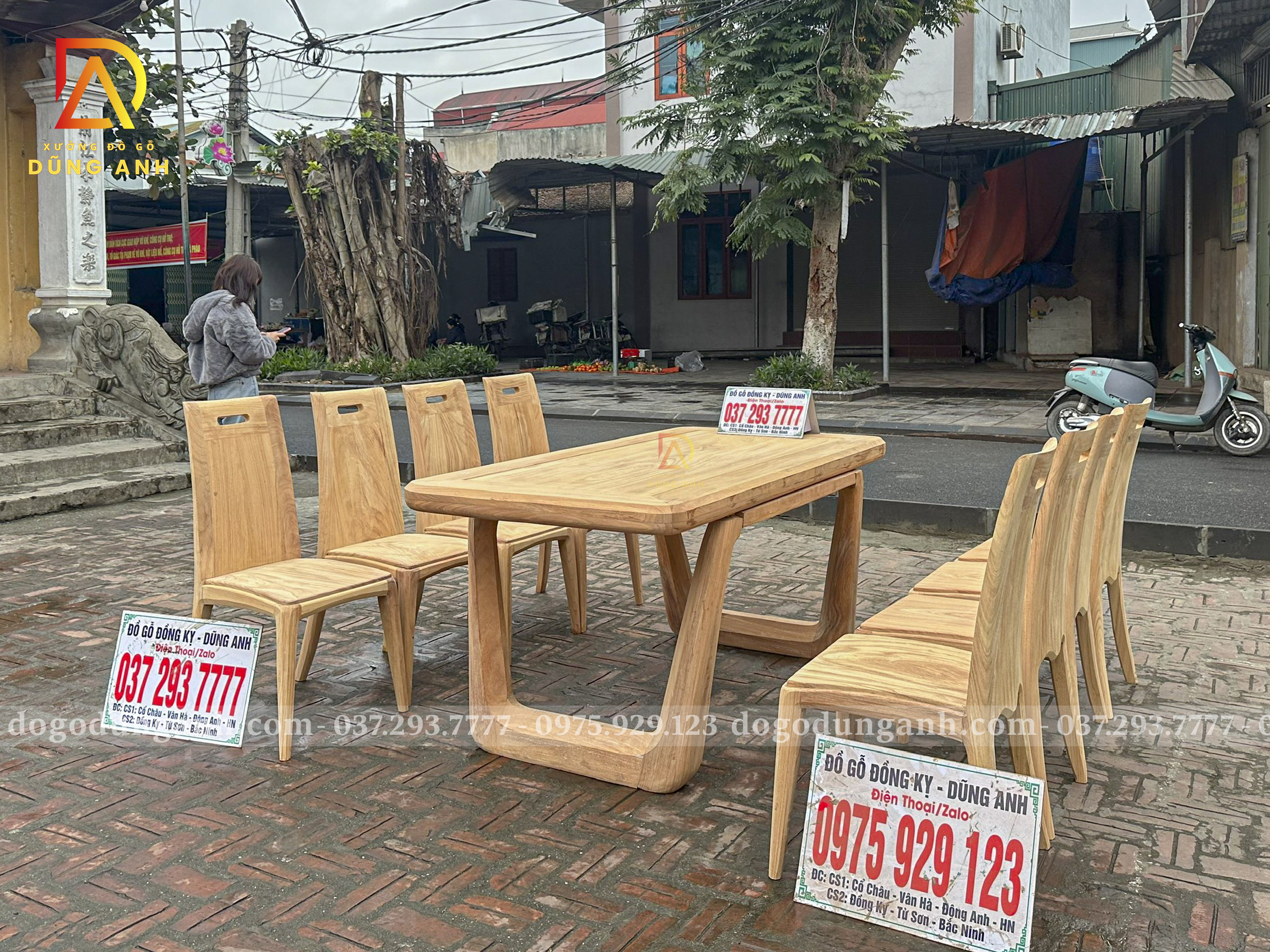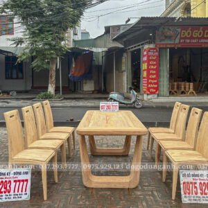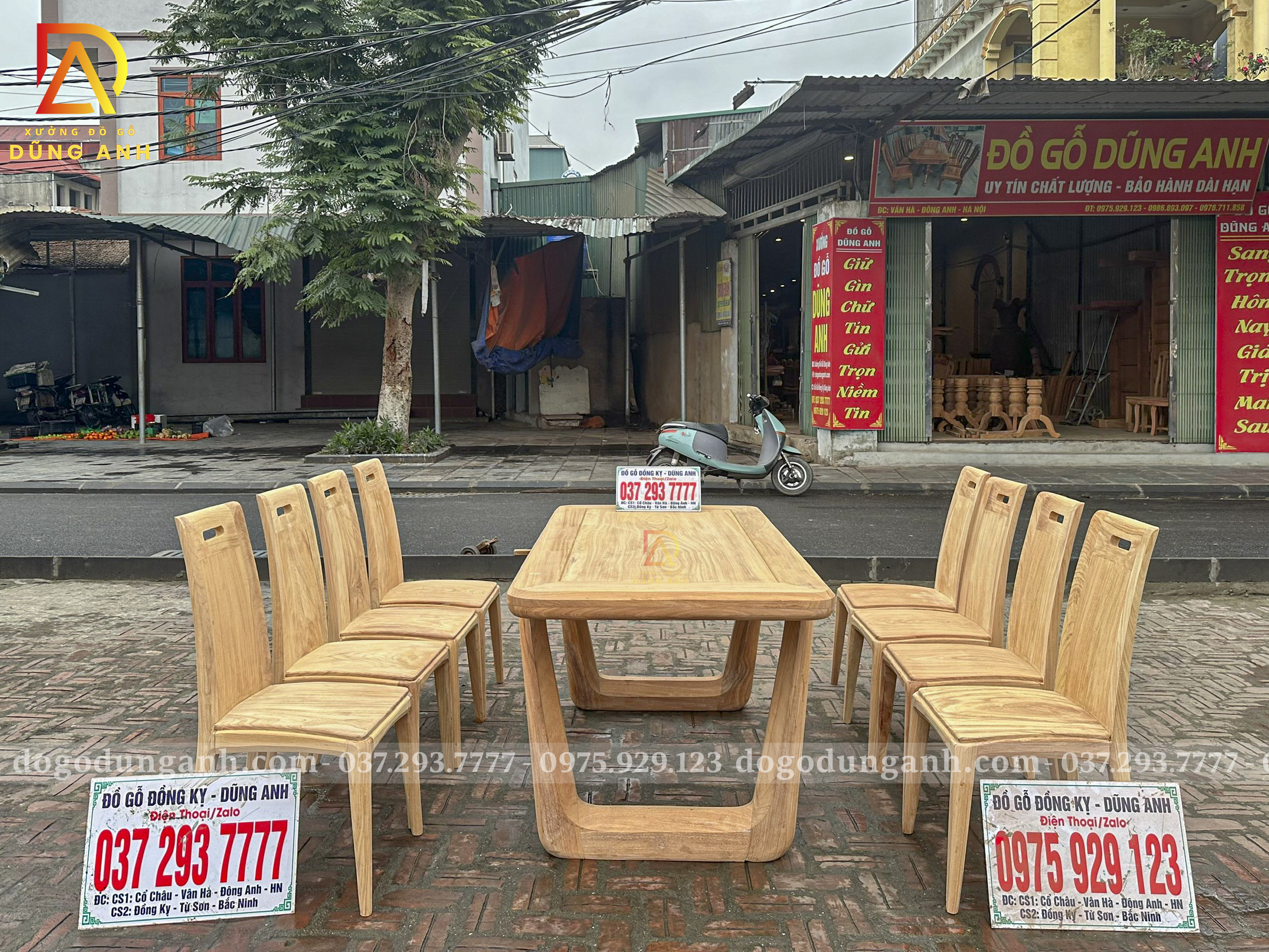 Đồ Gỗ Dũng Anh | Bộ sản phẩm 8 ghế hiện đại ( Cong ) + bàn chân trụ chữ U – Gỗ gõ đỏ