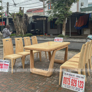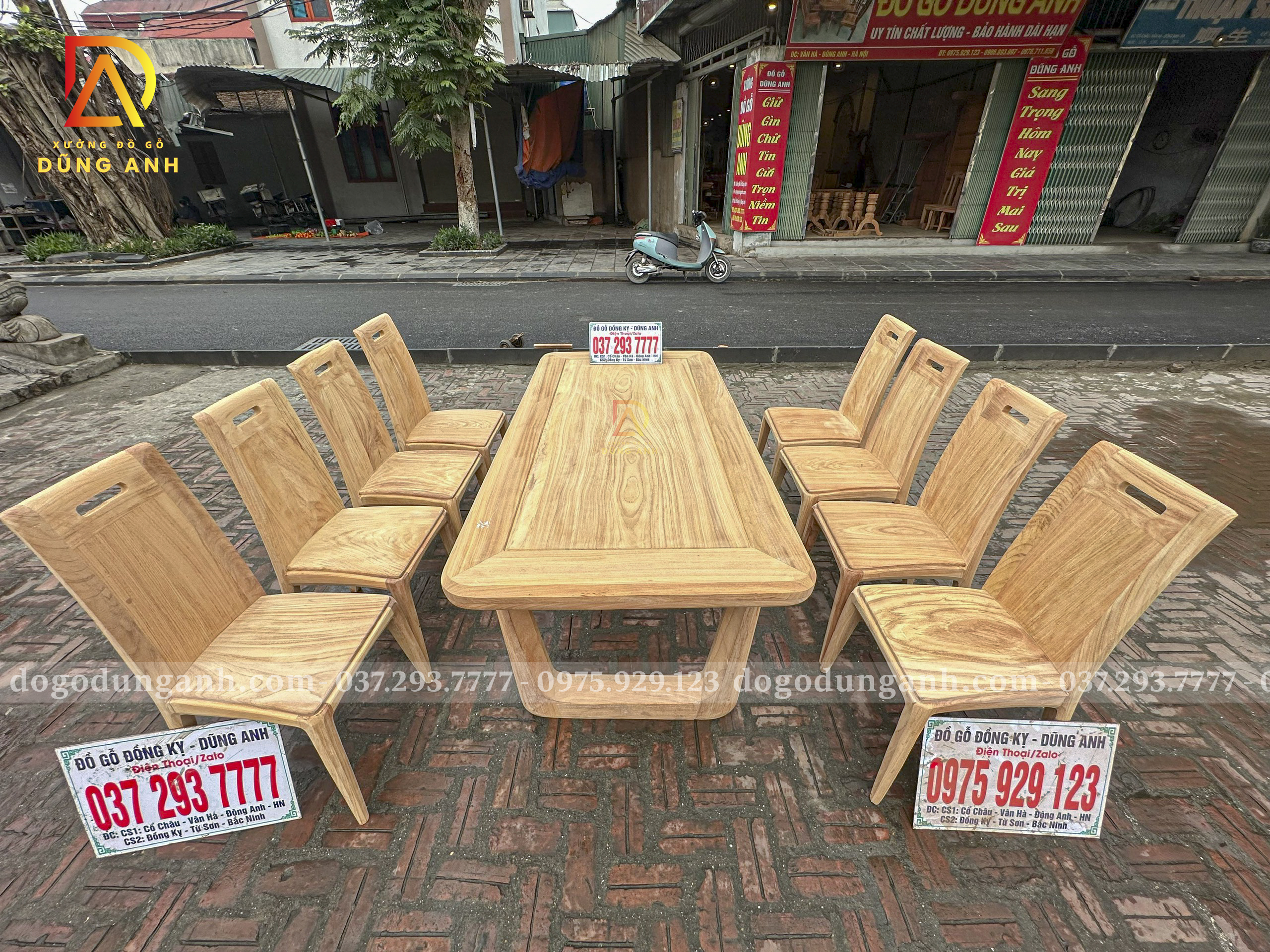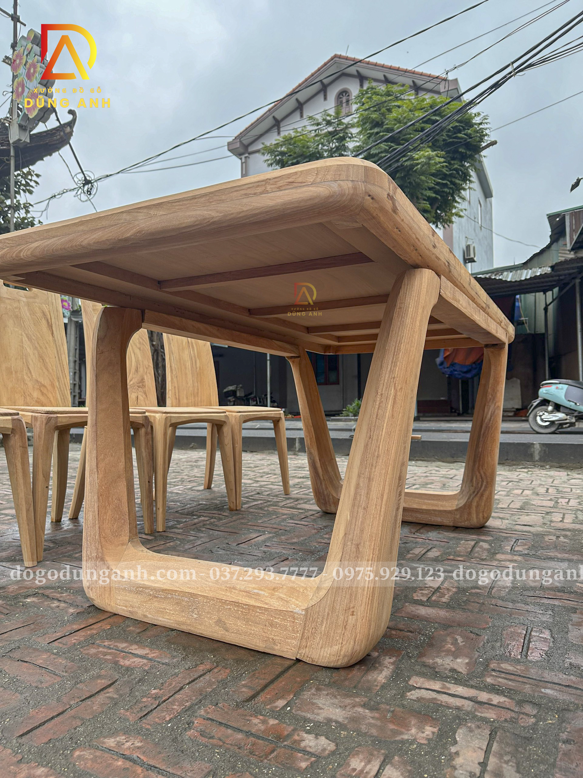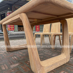 Đồ Gỗ Dũng Anh | Bộ sản phẩm 8 ghế hiện đại ( Cong ) + bàn chân trụ chữ U – Gỗ gõ đỏ pachy
