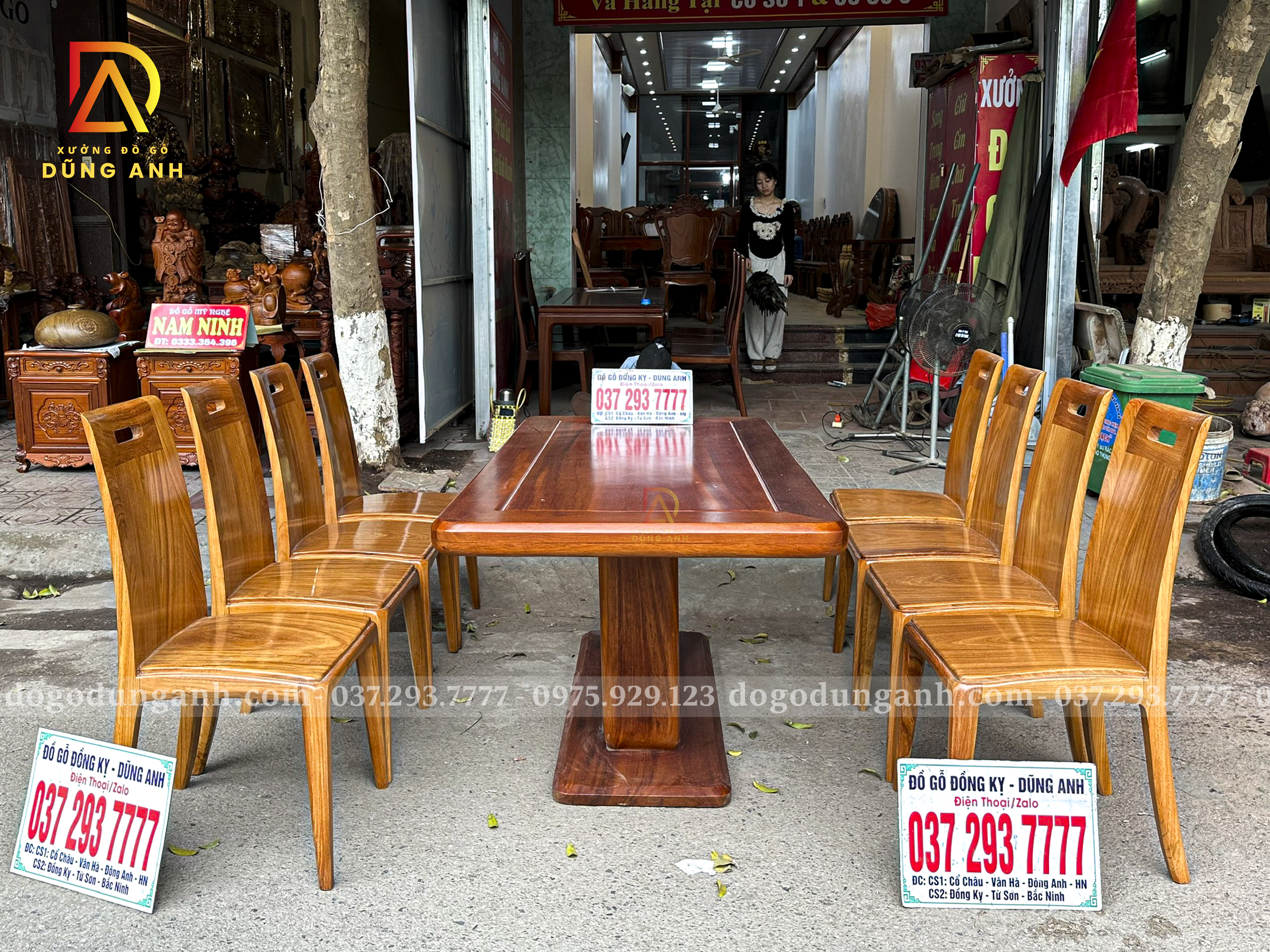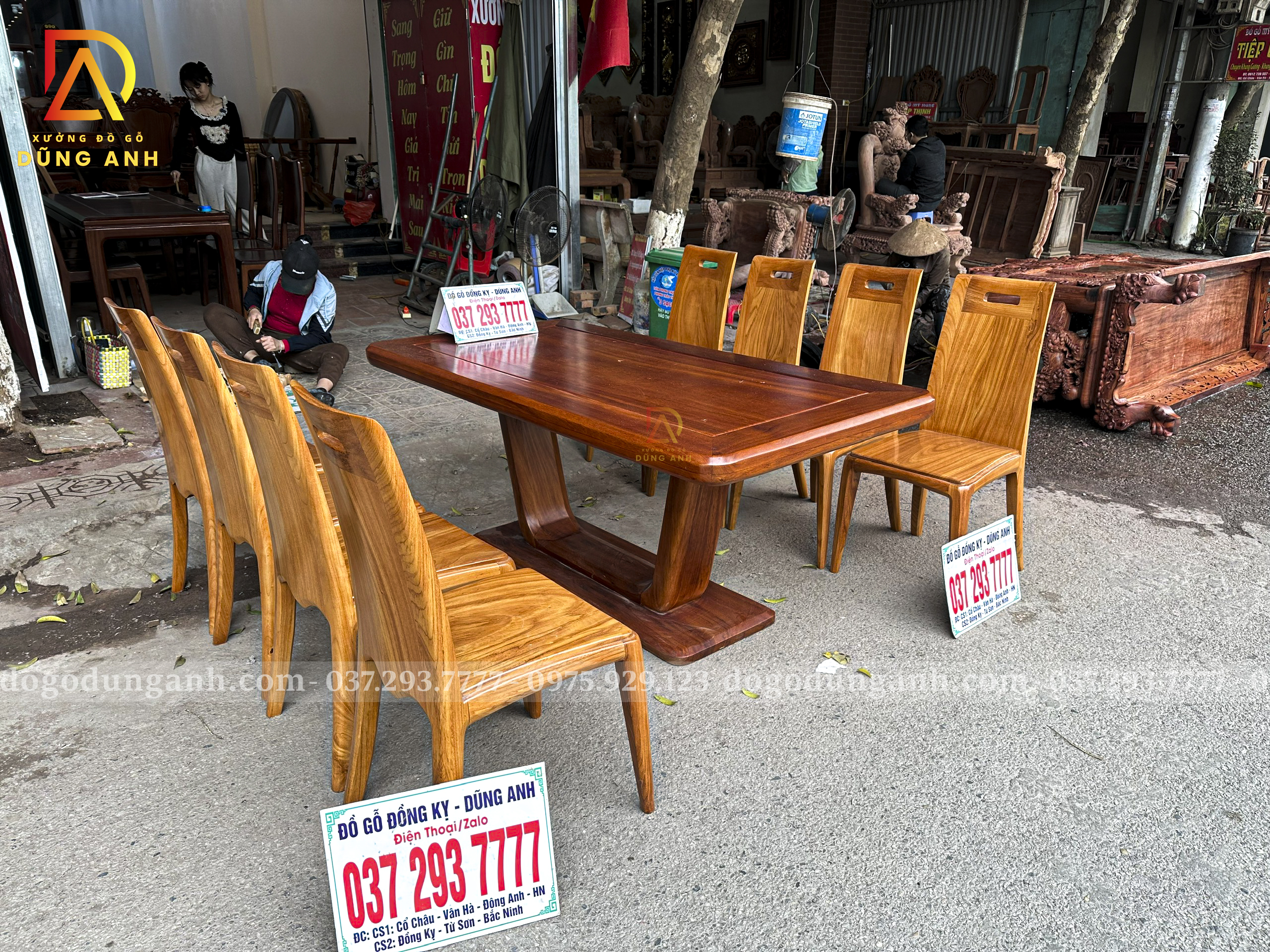 Quý khách có thể tham khảo thêm các mẫu bàn ghế ăn đẹp, bàn ghế ăn nguyên khối, các mẫu ghế ăn đẹp thì có thể liên hệ ngay với Xưởng đồ gỗ Dũng Anh qua: