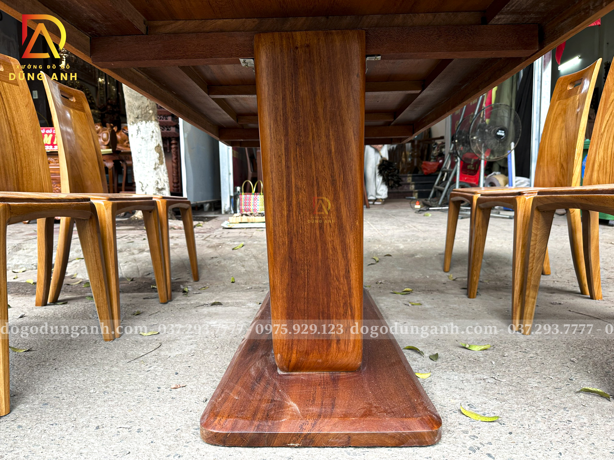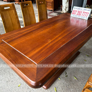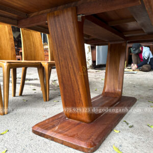 Đồ Gỗ Dũng Anh | Bộ 8 ghế hiện đại ( Cong ) + Bàn chữ nhật chân thuyền | Gỗ Gõ Đỏ