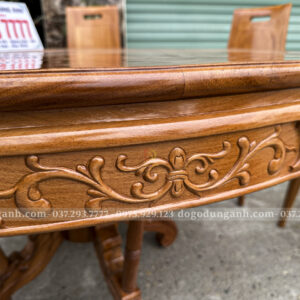 Hoa văn tân cổ điển được những nghệ nhân Xưởng đồ gỗ Dũng Anh chạm khắc tỉ mỉ tạo ra những đường nét sâu nổi hoa văn. Hoa văn tân cổ điển được chạm khắc trên bộ ghế ăn đòi hỏi sáng tạo, cân xứng phải có tay nghề cứng am hiểu về hoa văn phương tây và đặc biệt bàn tay phải có sự gia công kỹ lưỡng