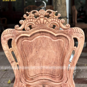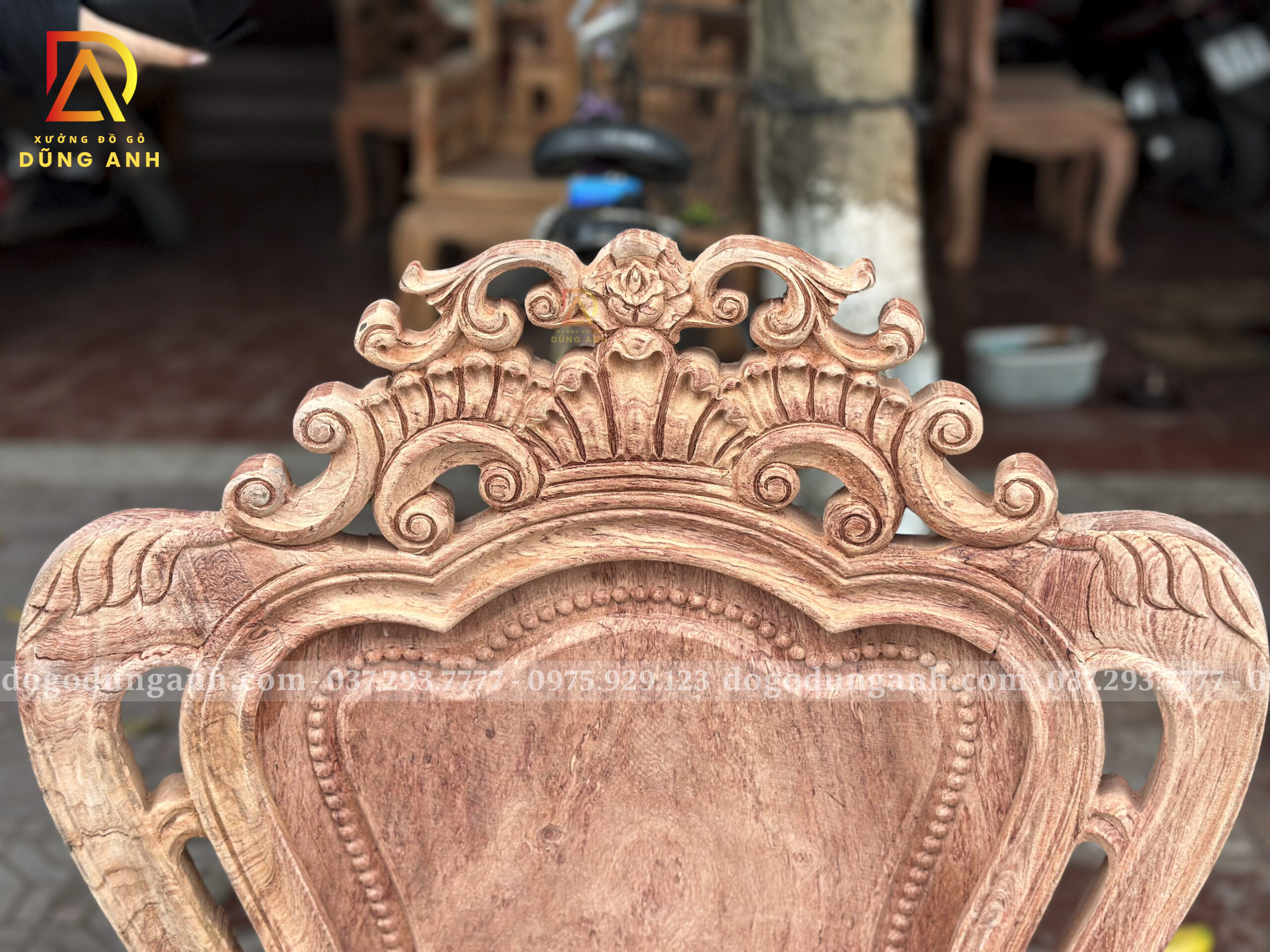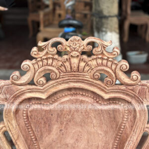 - Phần Chương ghế Liền Nguyên Khối được đục chính giữa là bông hoa hồng xung quanh là họa tiết hoa lá tây vô cùng sắc nét phía dưới