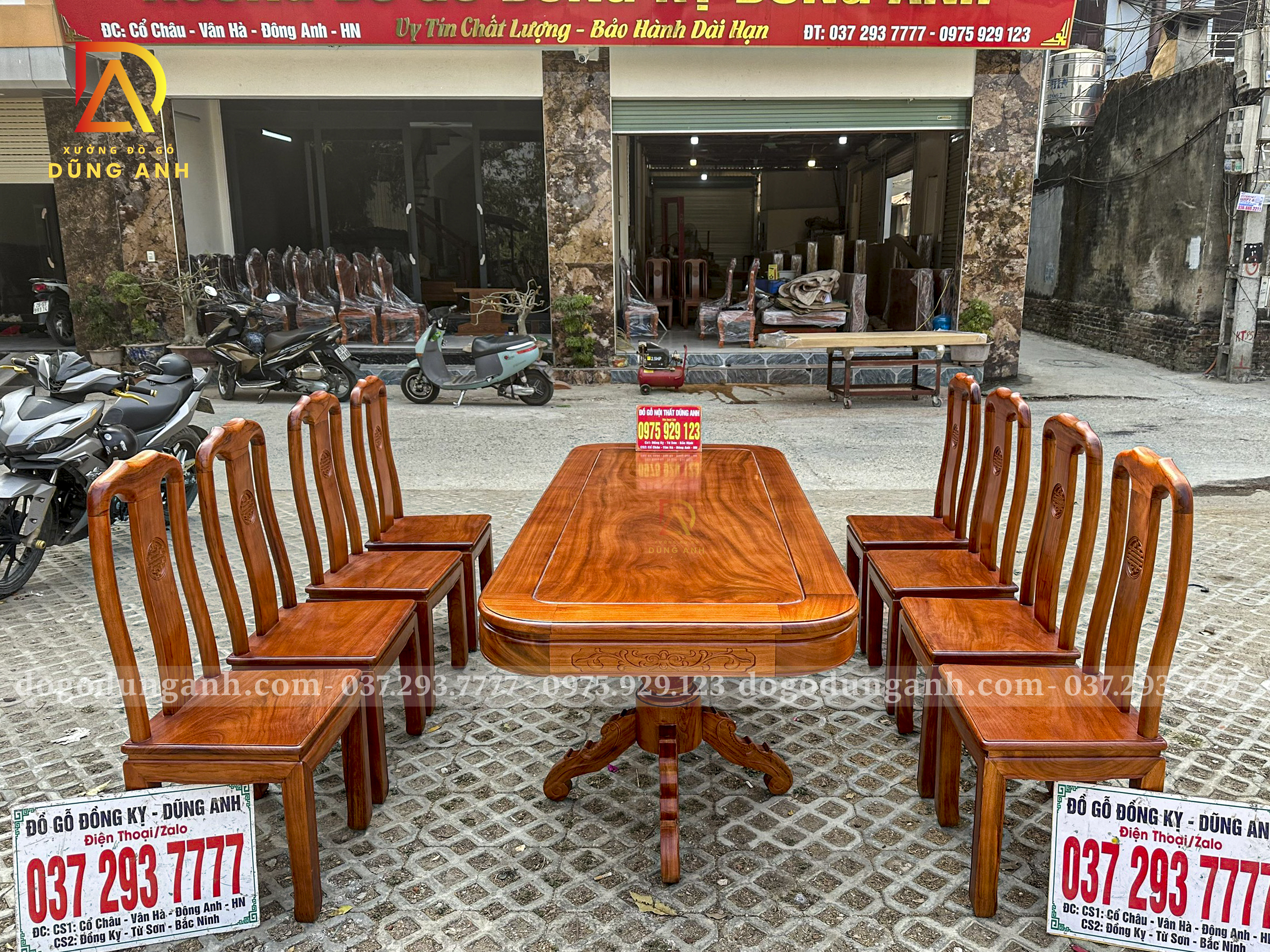 Quý khách có thể tham khảo thêm các mẫu bàn ghế ăn đẹp, bàn ghế ăn nguyên khối, các mẫu ghế ăn đẹp thì có thể liên hệ ngay với Xưởng đồ gỗ Dũng Anh qua: