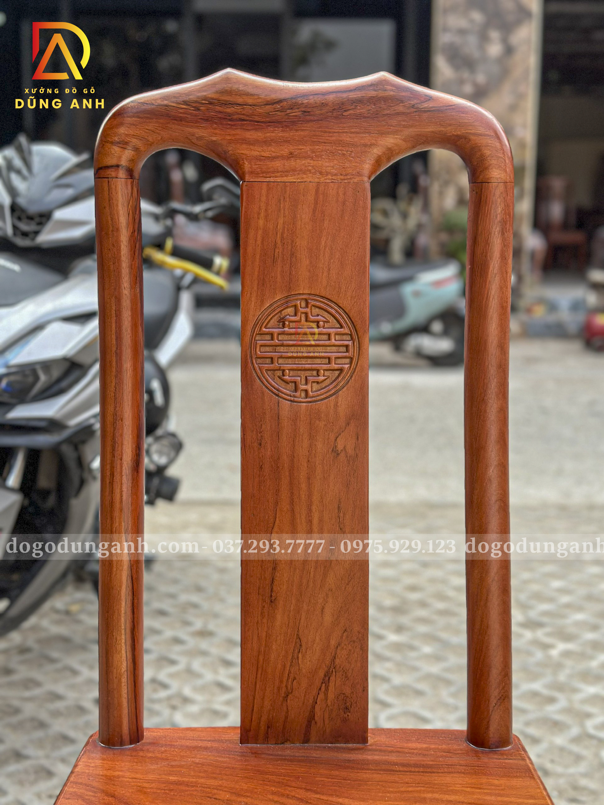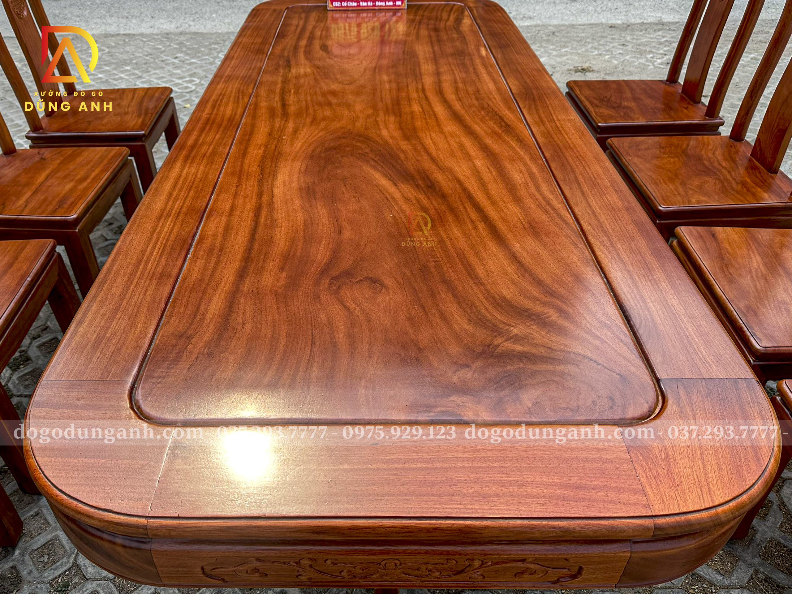 Đồ Gỗ Dũng Anh | Bộ 8 Ghế Triện Thọ + Bàn Chữ Nhật Yếm Bo | Gỗ Gõ Đỏ