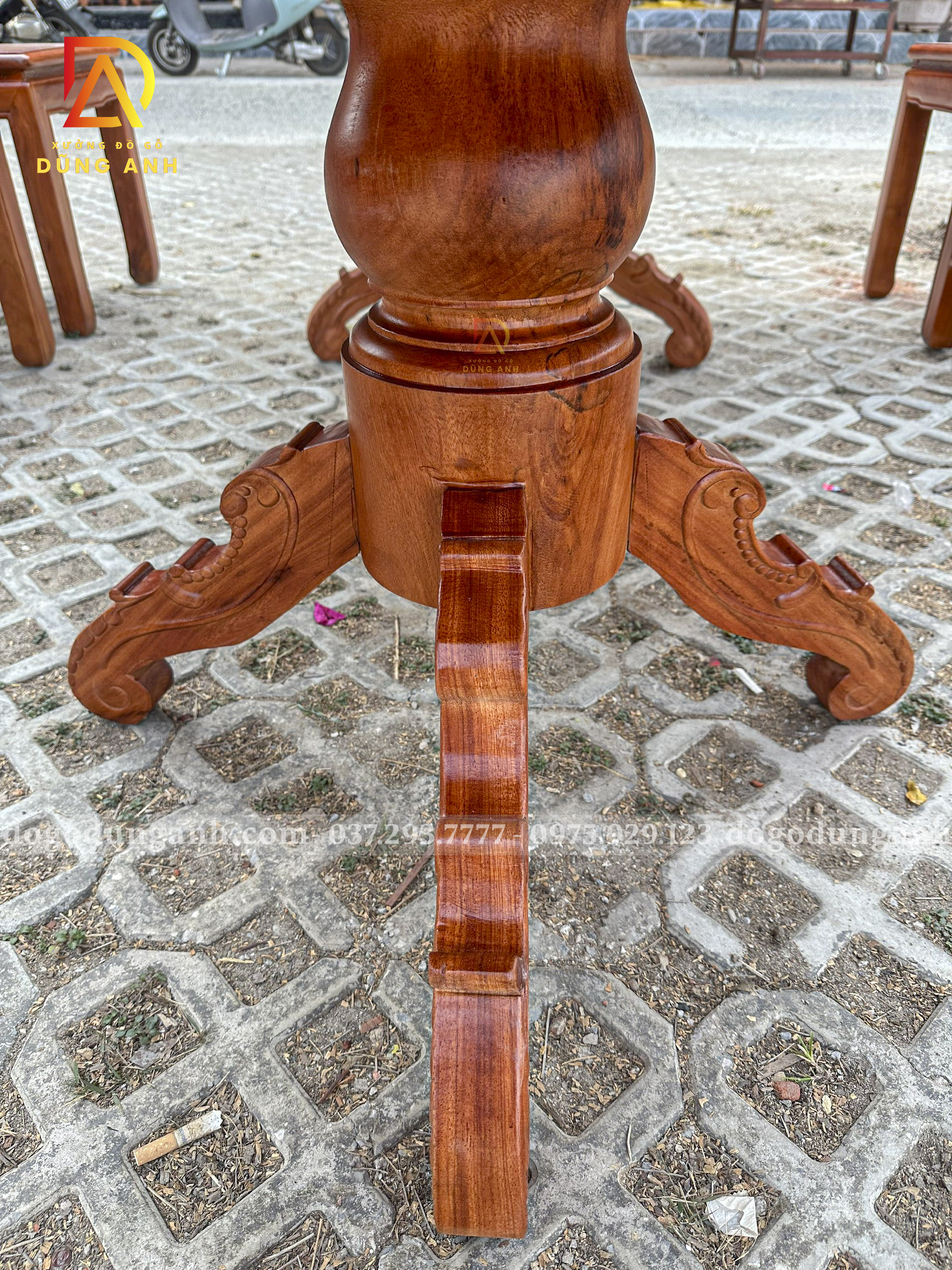 - Chân trụ đặc liền Nguyên Khối có kích thước bản vuông là 18 cm và được tiện tròn thủ công hoàn toàn bằng tay