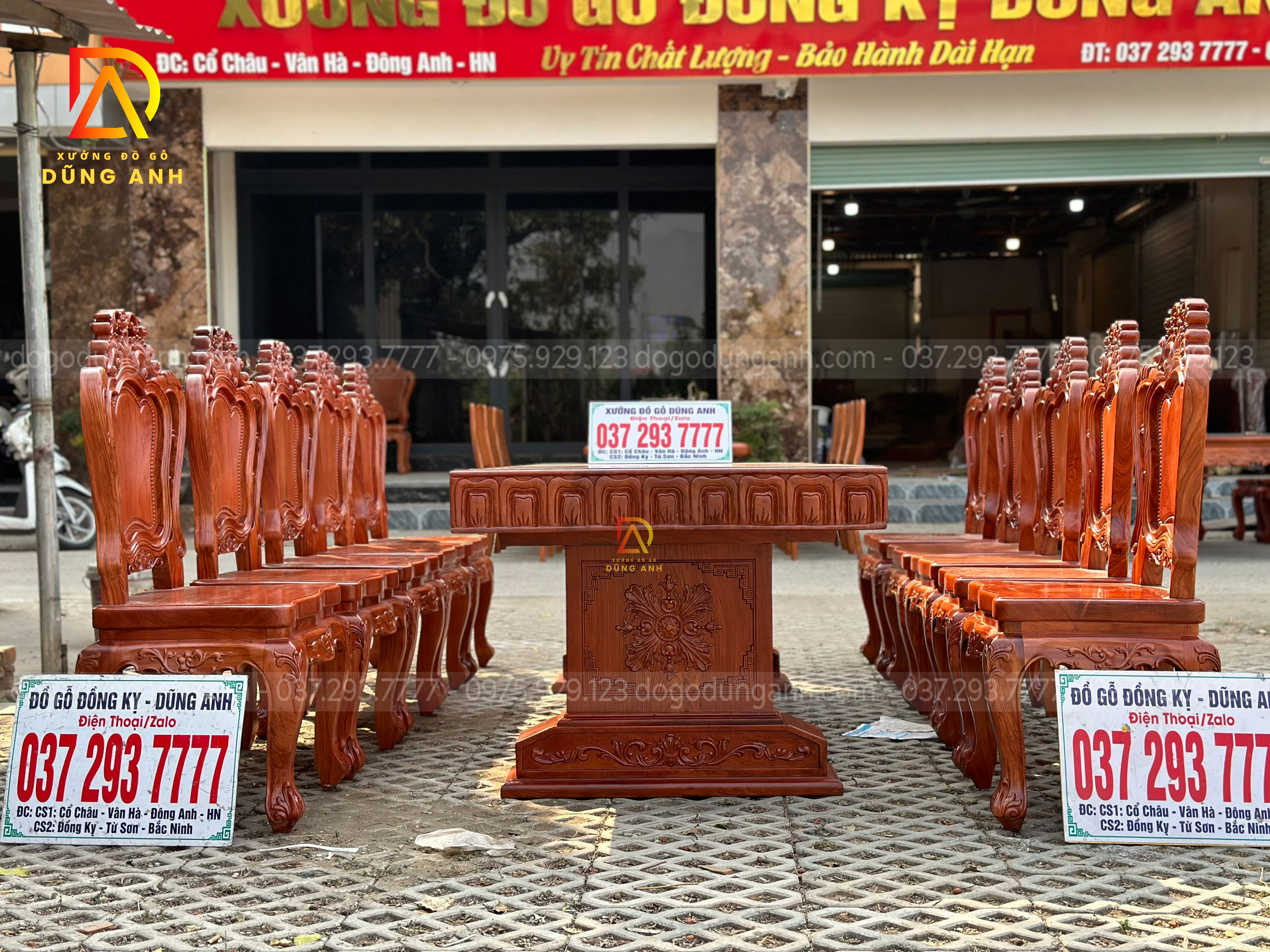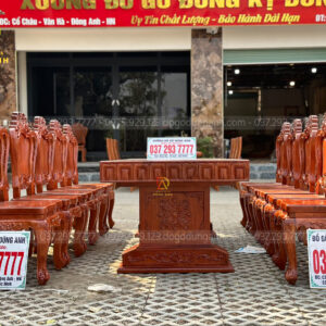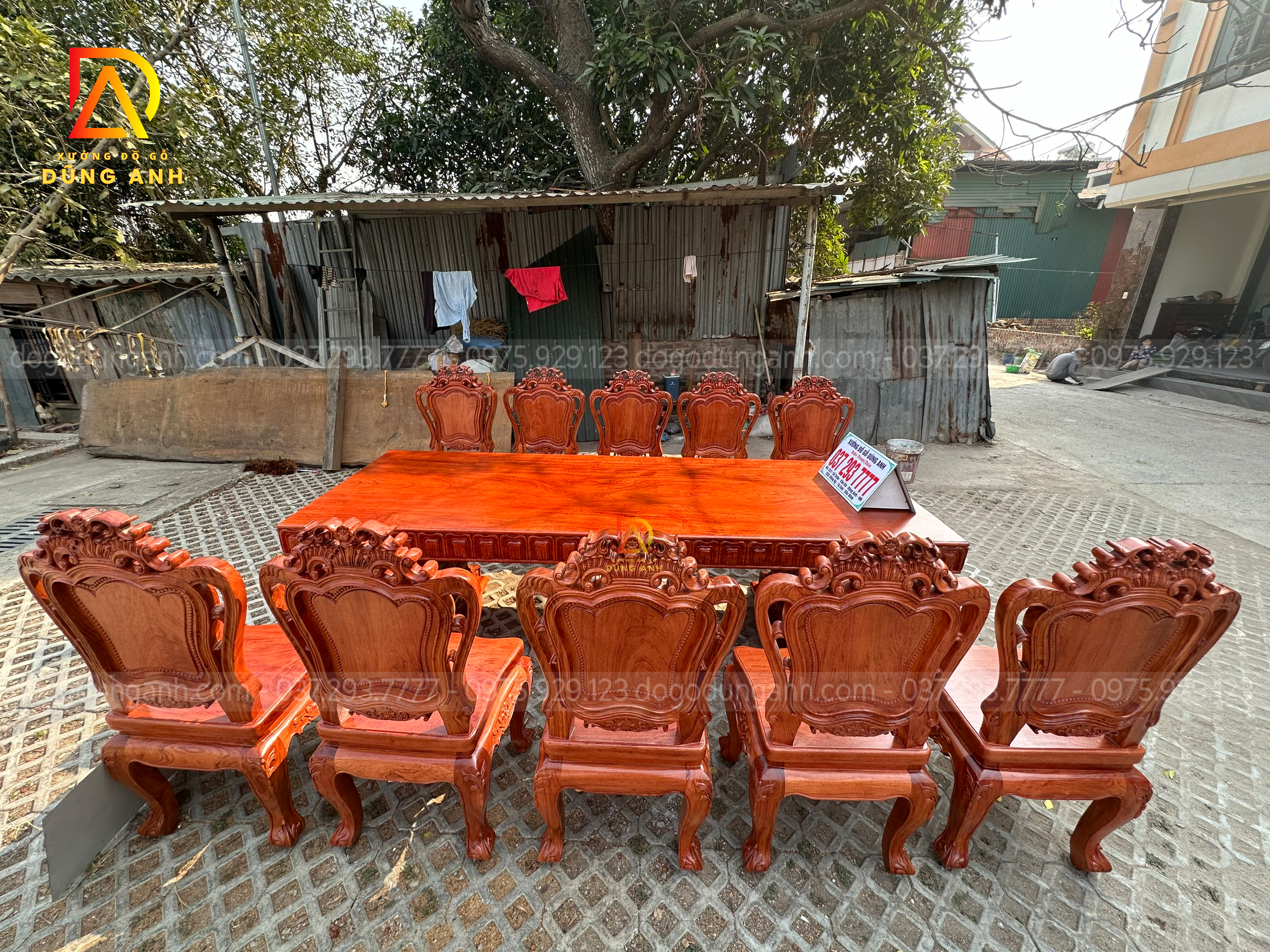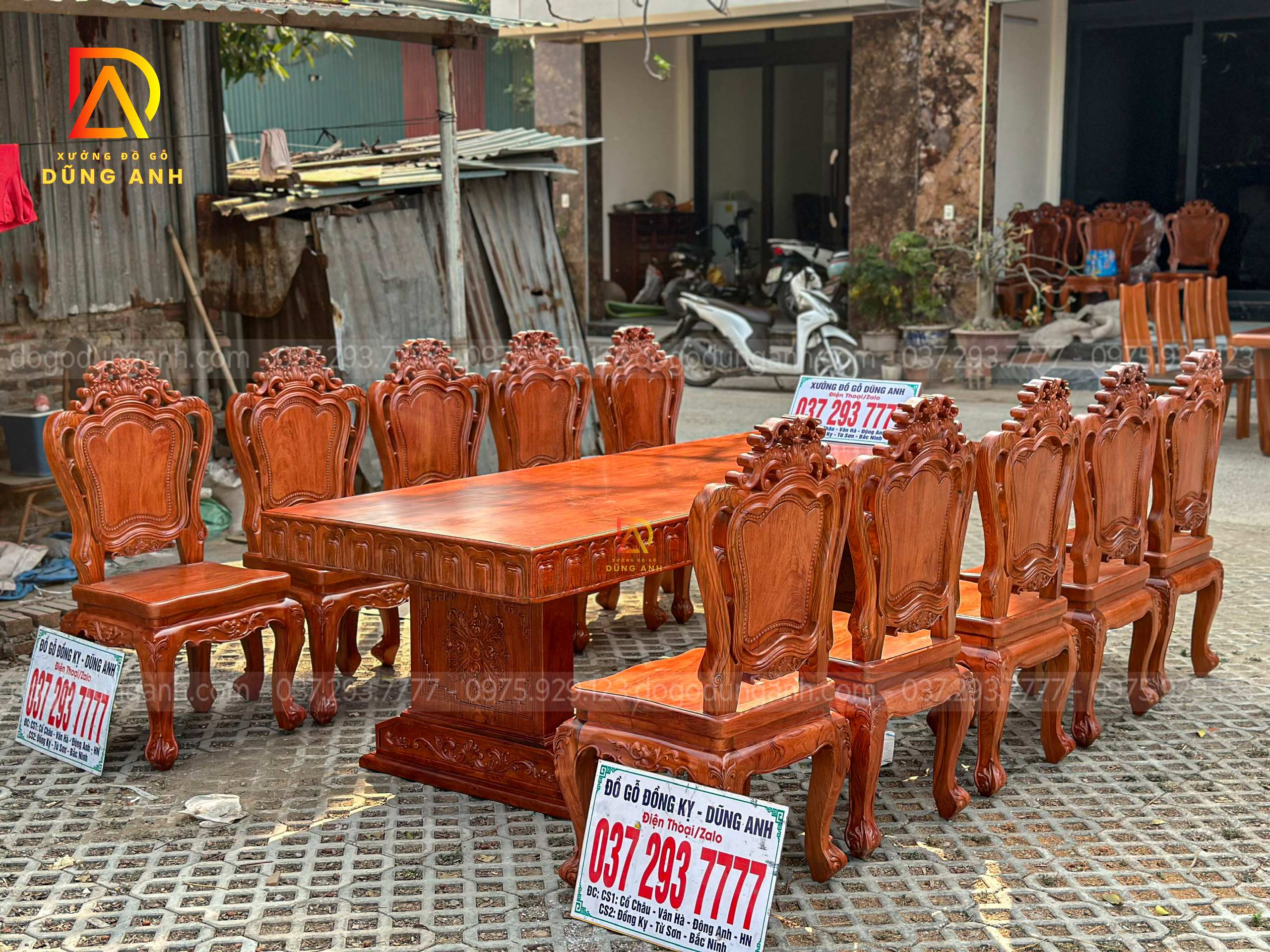 Bộ VIP 10 Ghế Louis Hoàng Gia + Bàn Nguyên Khối – Gỗ Hương Đá Từ Đồ Gỗ Dũng Anh