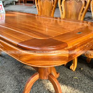Bộ bàn ăn Gõ Đỏ Pachy không chỉ đơn thuần đáp ứng nhu cầu thưởng thức bữa cơm gia đình, mà còn trở thành điểm nhấn sang trọng trong không gian phòng ăn. Sắc đỏ vàng ấm áp đặc trưng, hòa quyện cùng những đường vân gỗ nổi bật, mềm mại và tinh tế, mang đến cảm giác ấm cúng, gần gũi nhưng vẫn toát lên vẻ đẳng cấp. Đây chính là lựa chọn thể hiện sự chỉn chu trong phong cách sống, khẳng định gu thẩm mỹ và vị thế của gia chủ một cách tinh tế và bền vững theo thời gian.