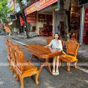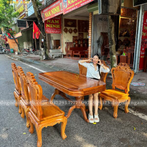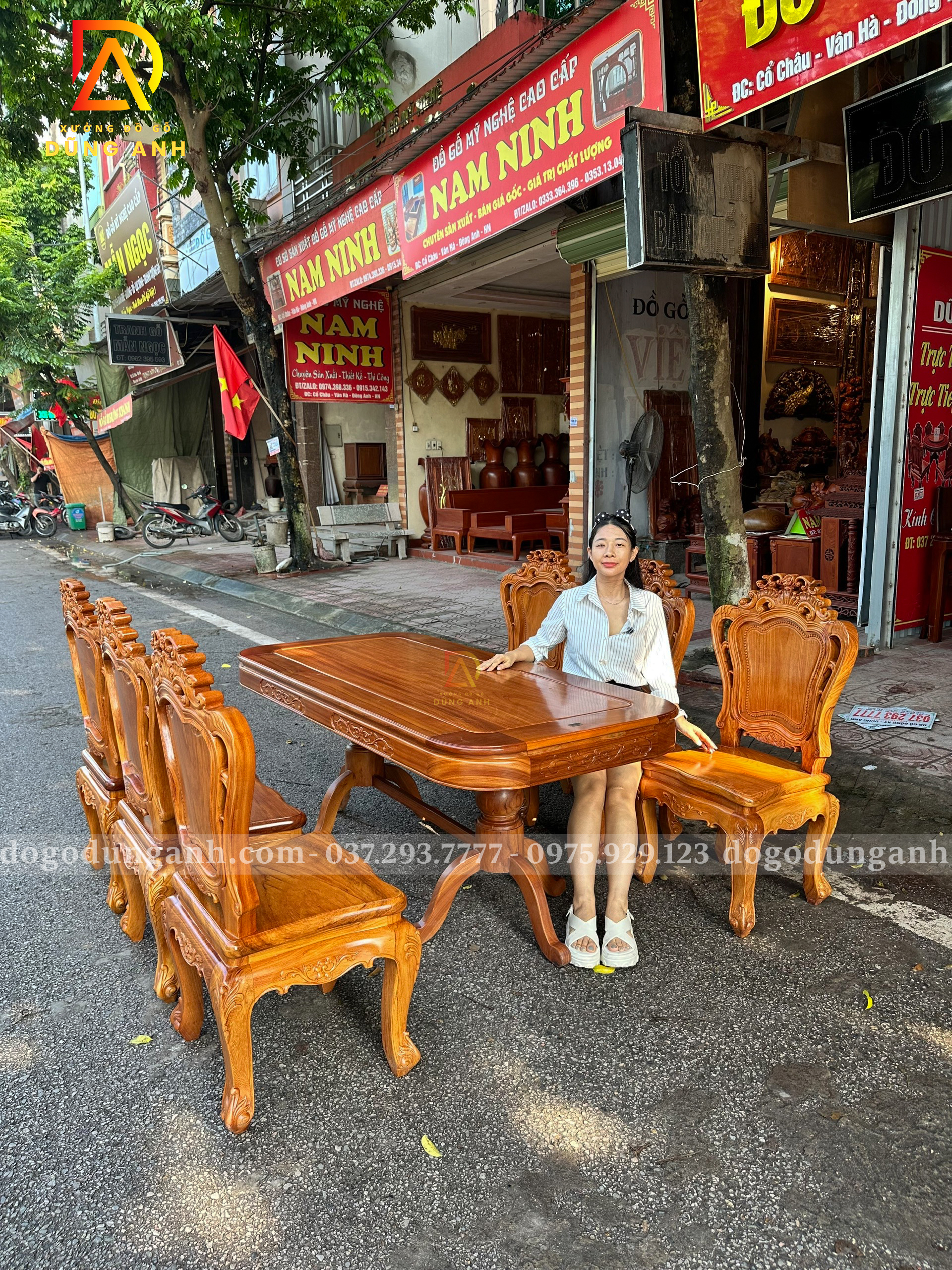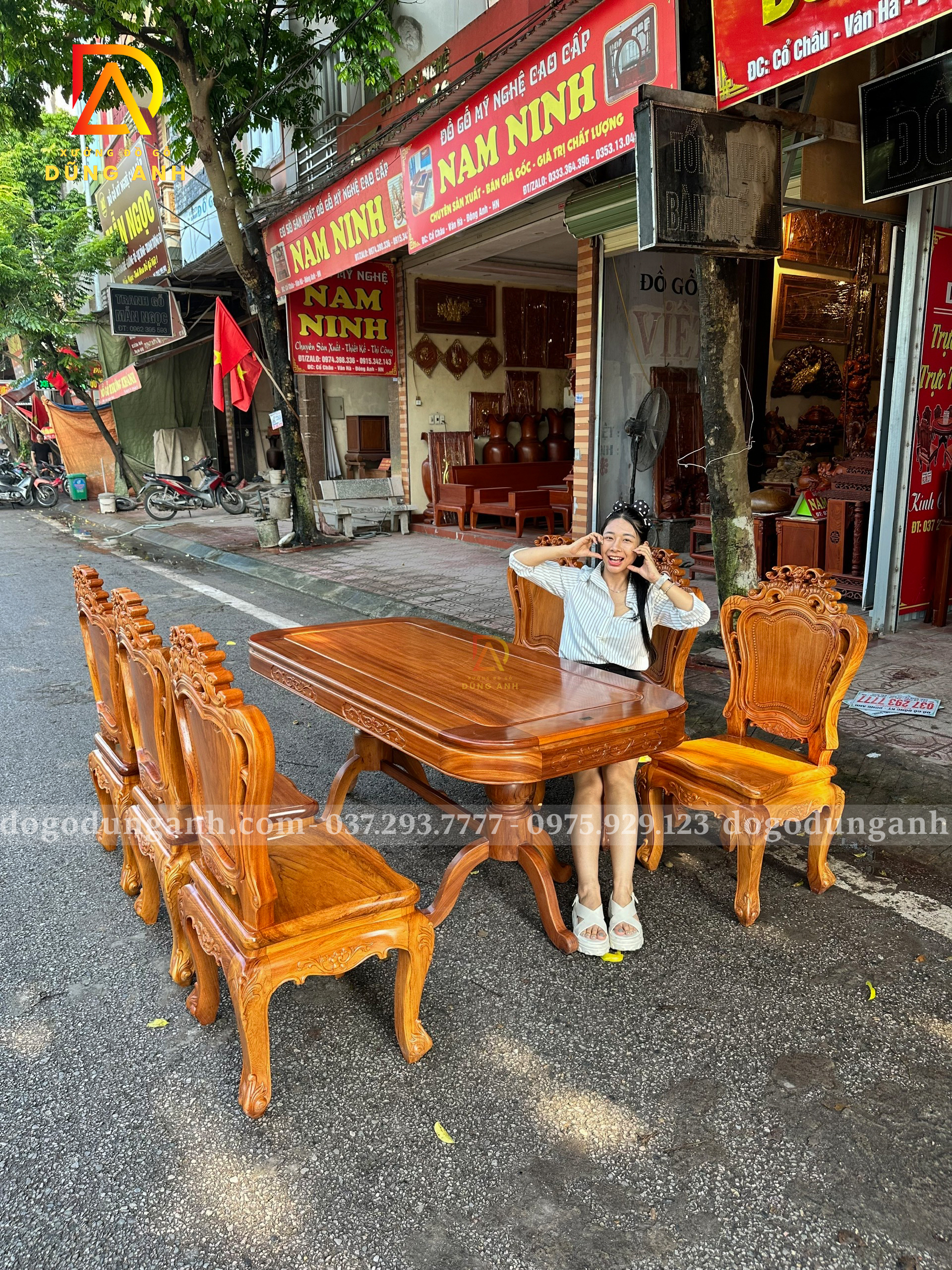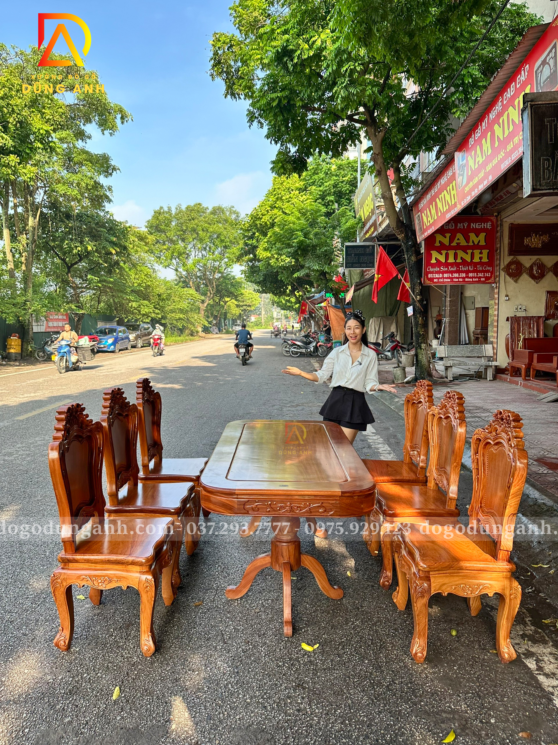 Đồ Gỗ Dũng Anh | Đơn Đặt Hàng Của Anh Khách Hải Dương – Bộ Bàn Ăn 6 Ghế louis Hoàng Gia + Bàn Chữ Nhật Vén Góc – Gỗ Gõ Pachy