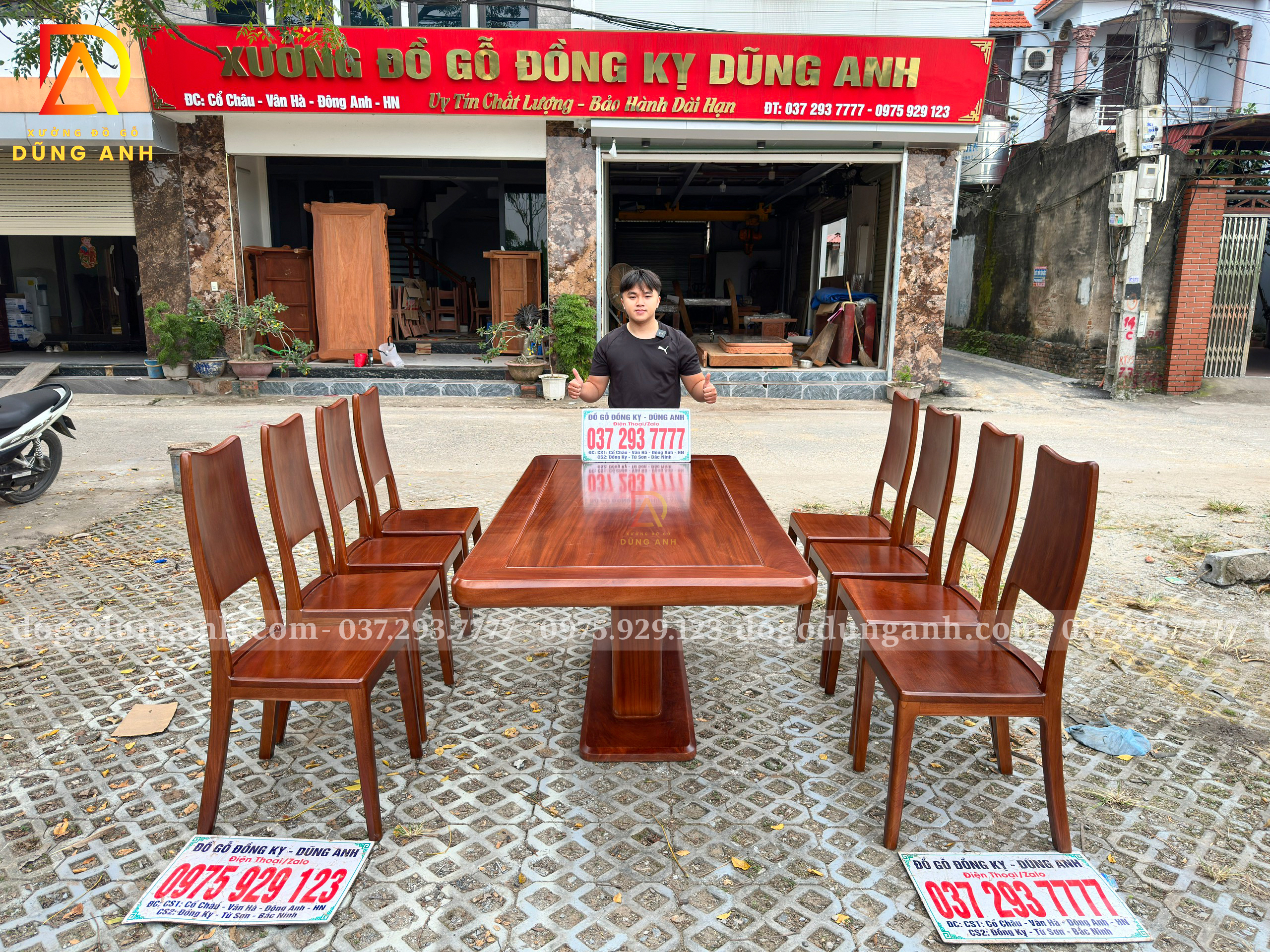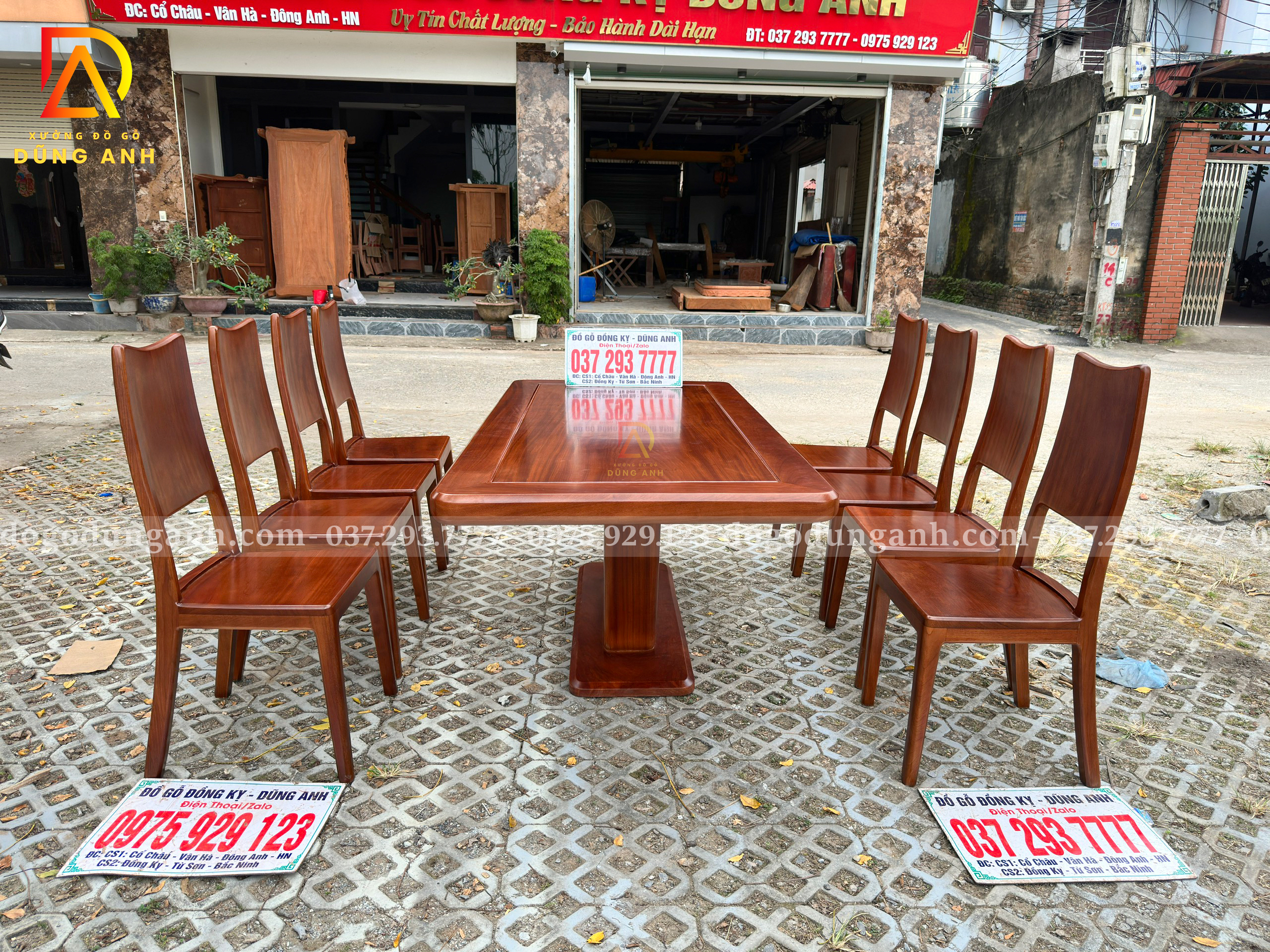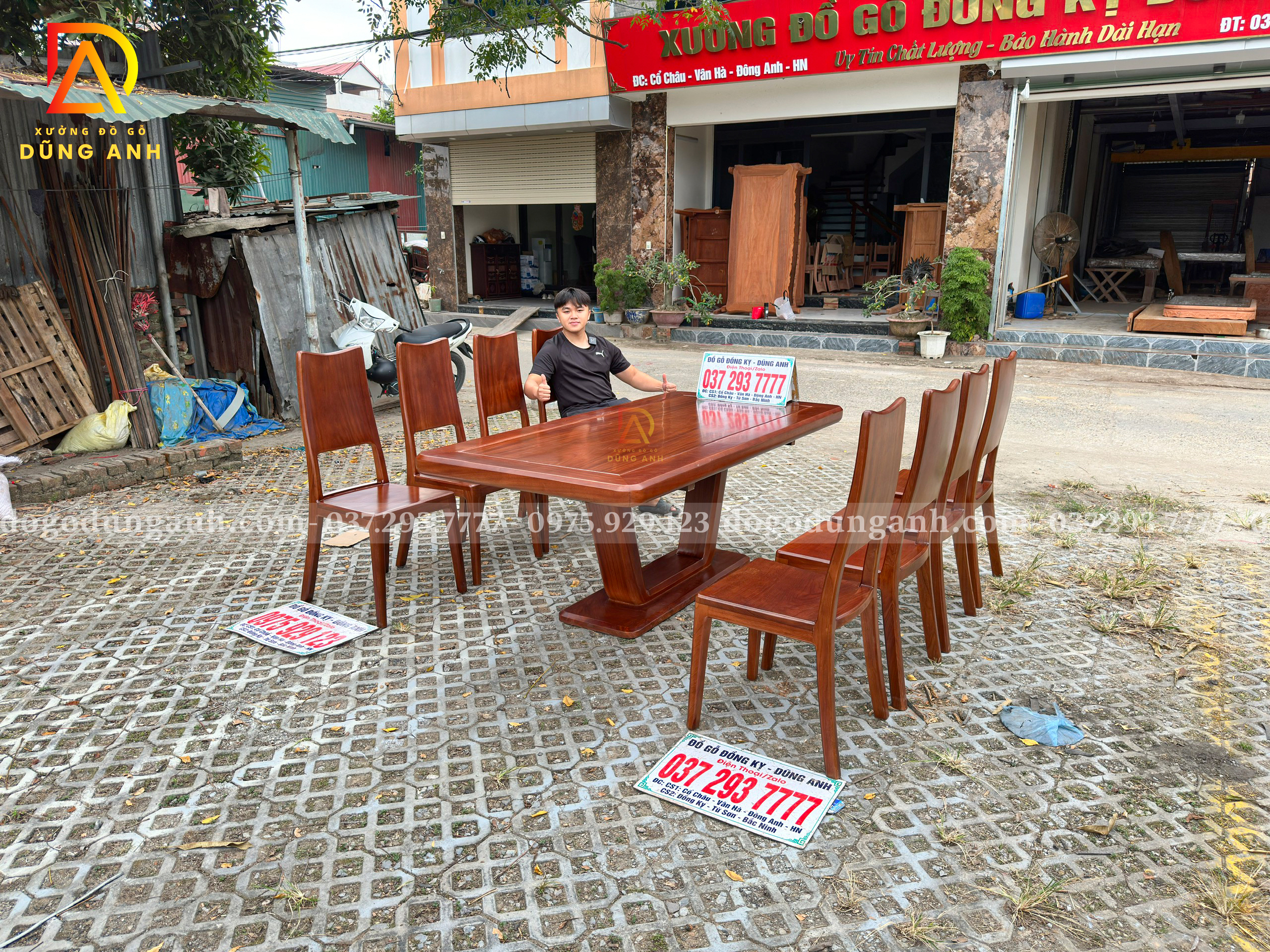 Đồ Gỗ Dũng Anh | Hàng Sẵn Tại ShowRoom Bộ 8 Ghế Ba Tiêu – Kết Hợp Bàn Chữ Nhật – Gỗ Gõ Đỏ