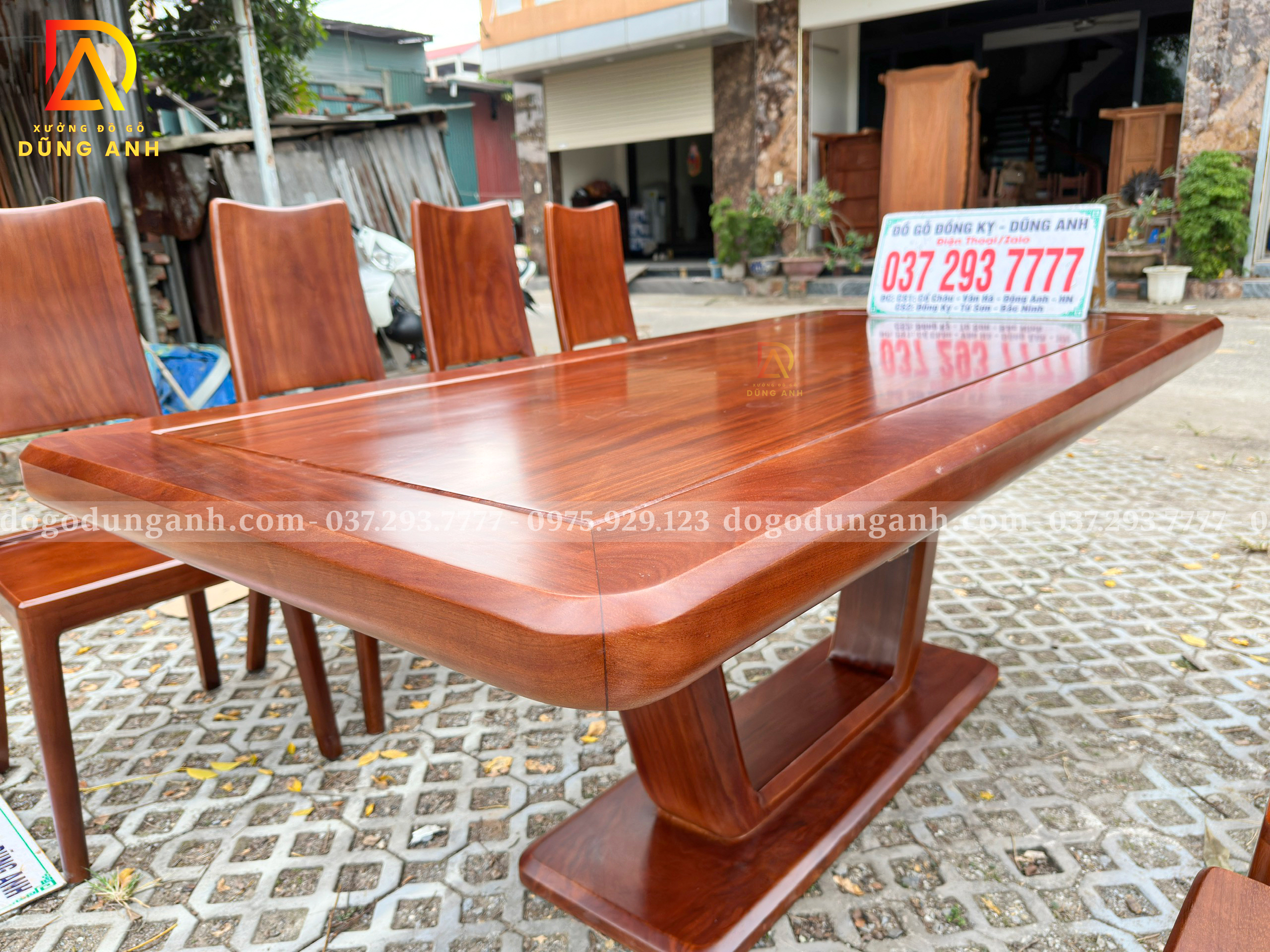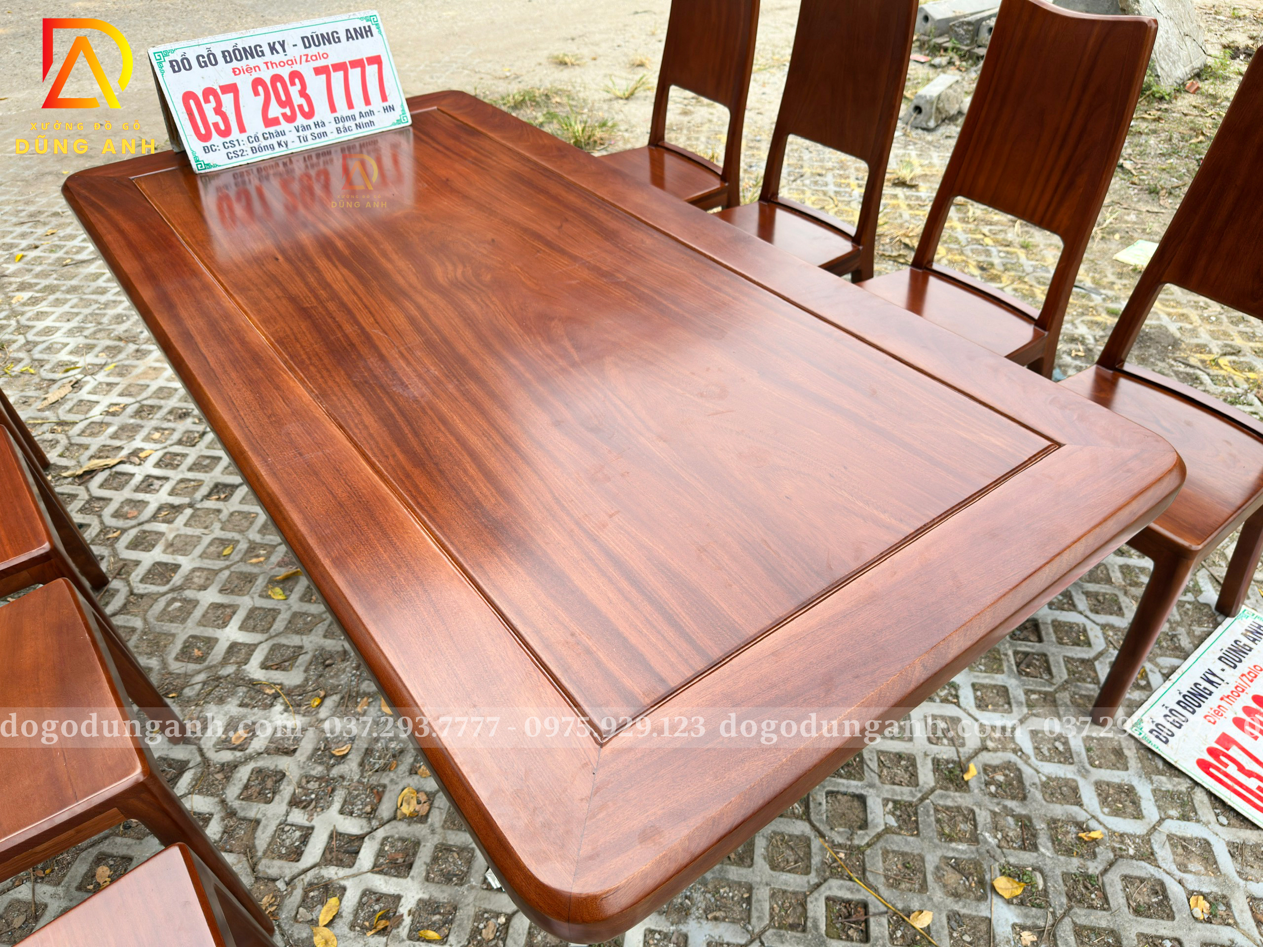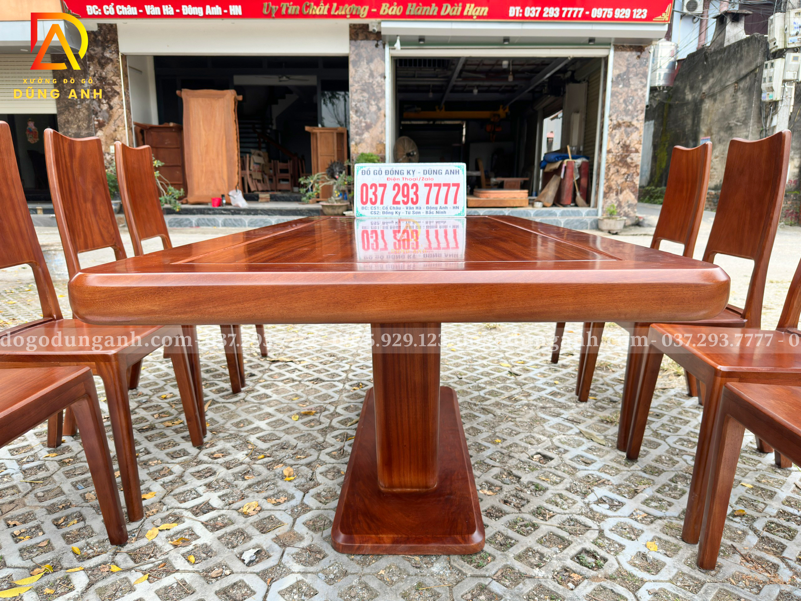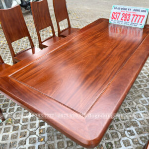 Bàn ăn làm từ gỗ gõ đỏ không chỉ bền chắc và ổn định theo năm tháng mà còn toát lên vẻ đẹp tự nhiên, sang trọng và đầy uy quyền. Từng đường vân gỗ mềm mại, hòa cùng sắc đỏ nâu ấm áp, giúp không gian sống trở nên đẳng cấp, tinh tế và tràn đầy sức sống.