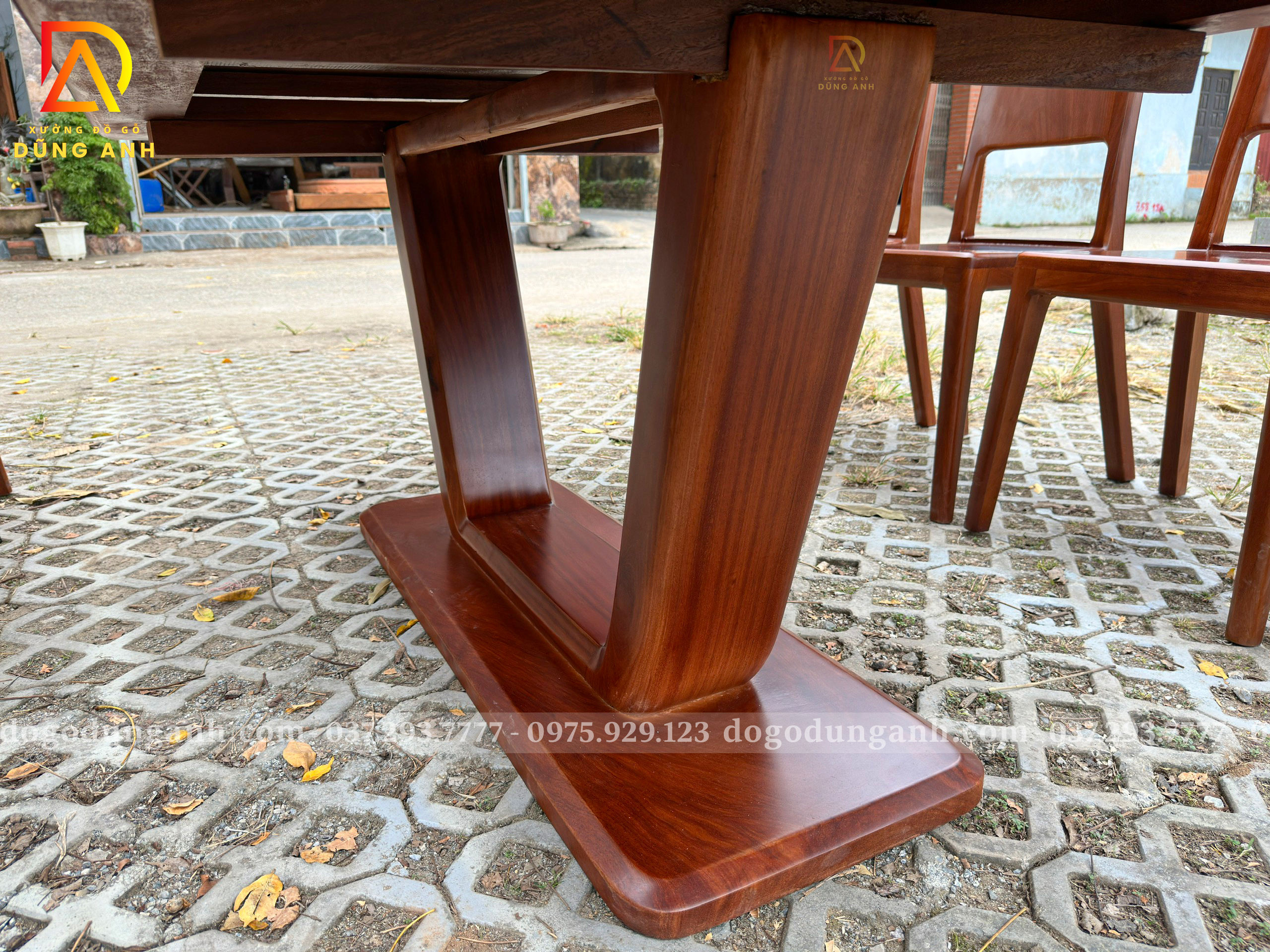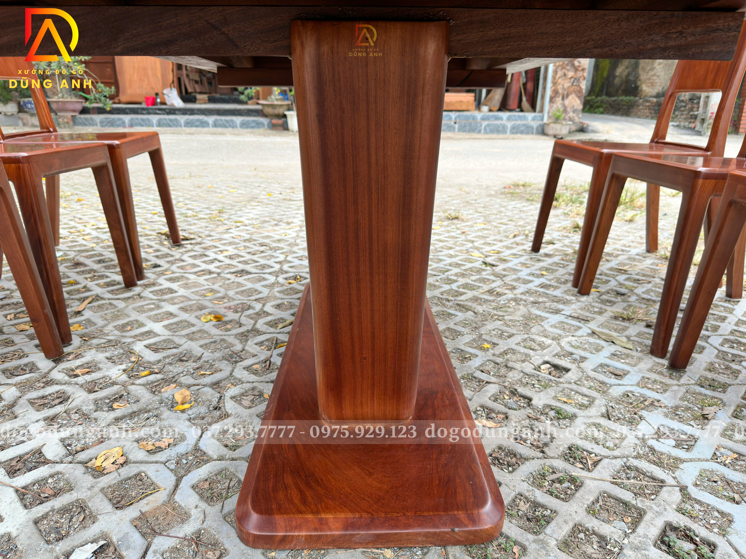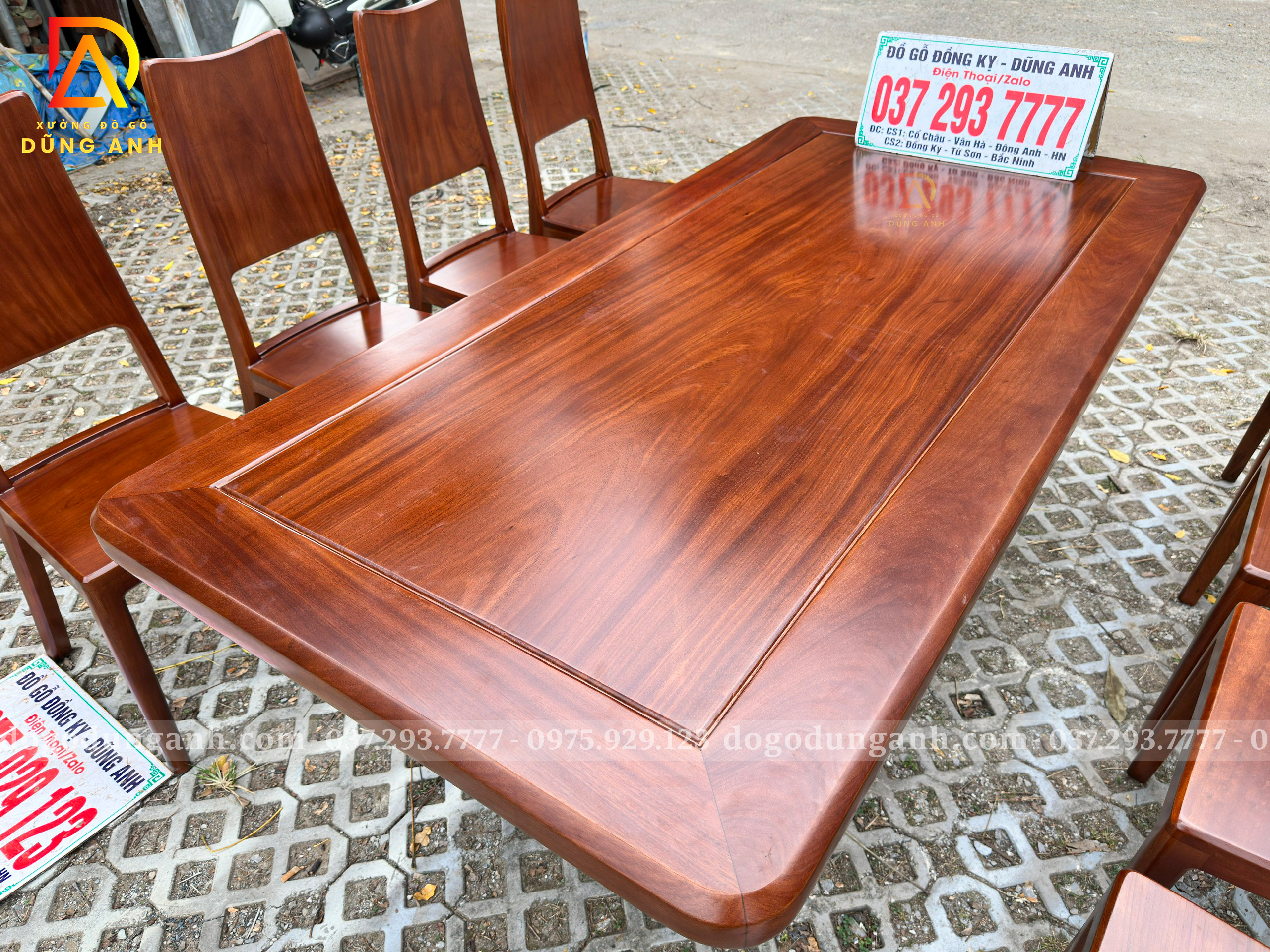 Bàn ăn làm từ gỗ gõ đỏ không chỉ bền chắc và ổn định theo năm tháng mà còn toát lên vẻ đẹp tự nhiên, sang trọng và đầy uy quyền. Từng đường vân gỗ mềm mại, hòa cùng sắc đỏ nâu ấm áp, giúp không gian sống trở nên đẳng cấp, tinh tế và tràn đầy sức sống.
