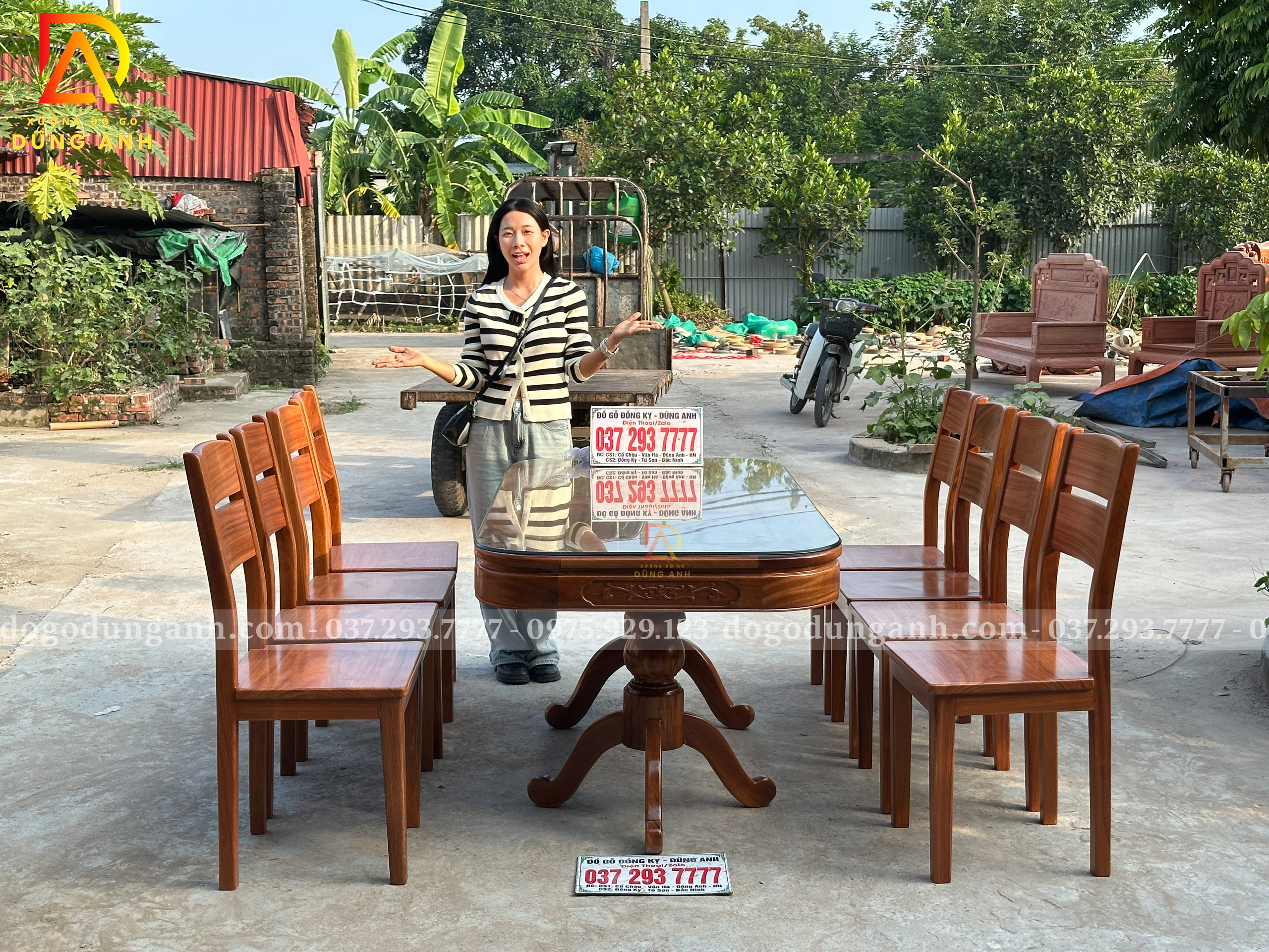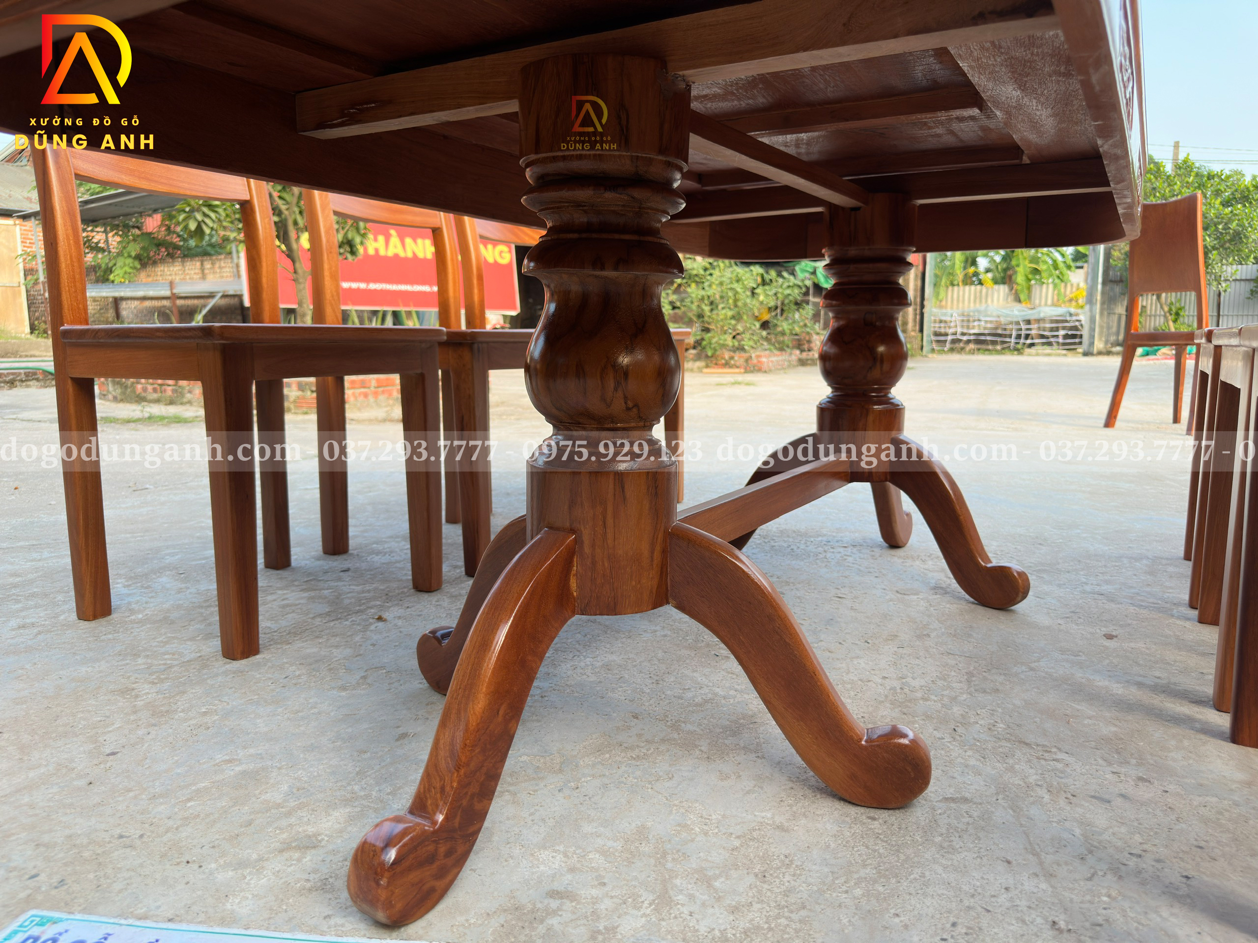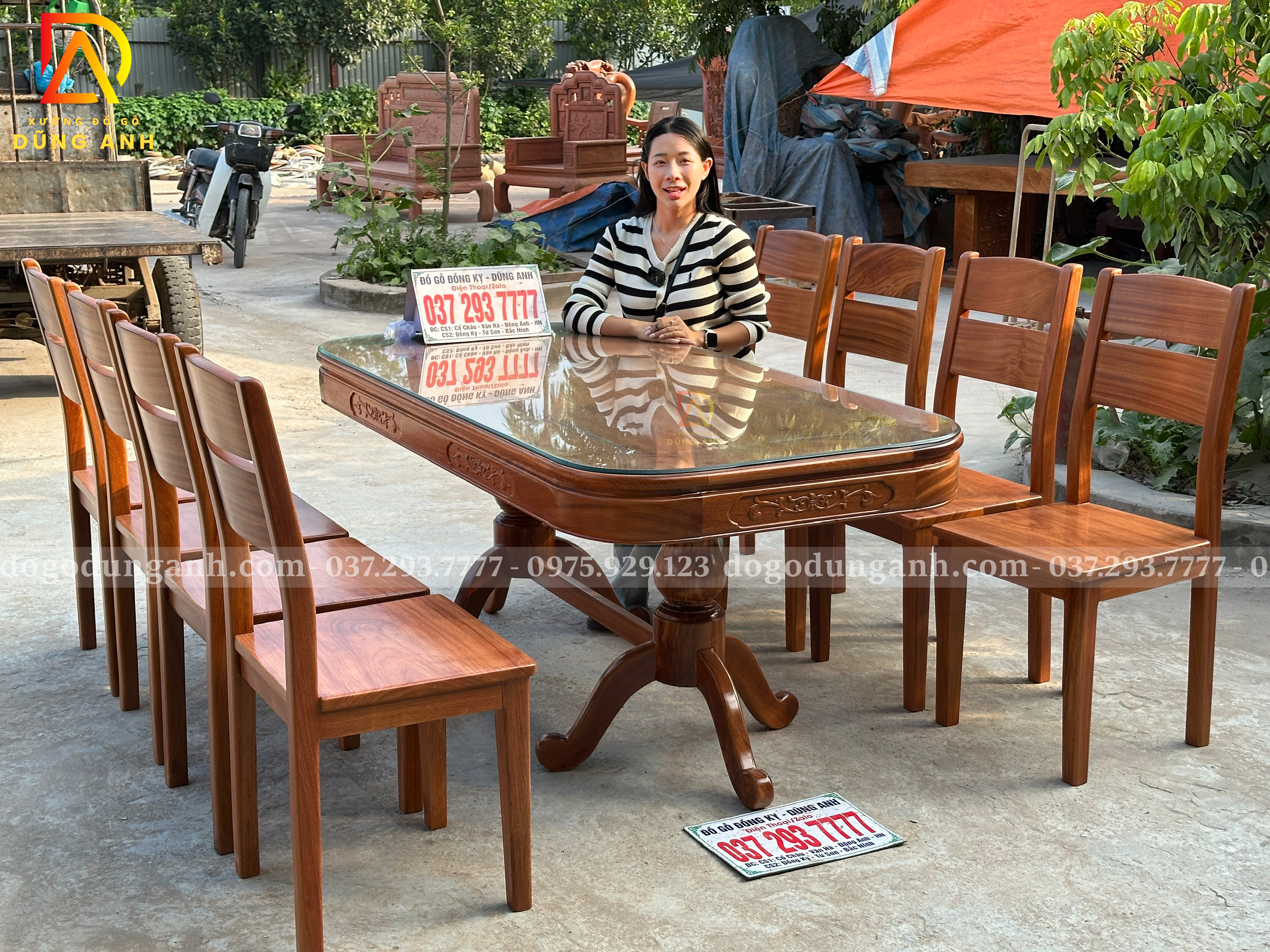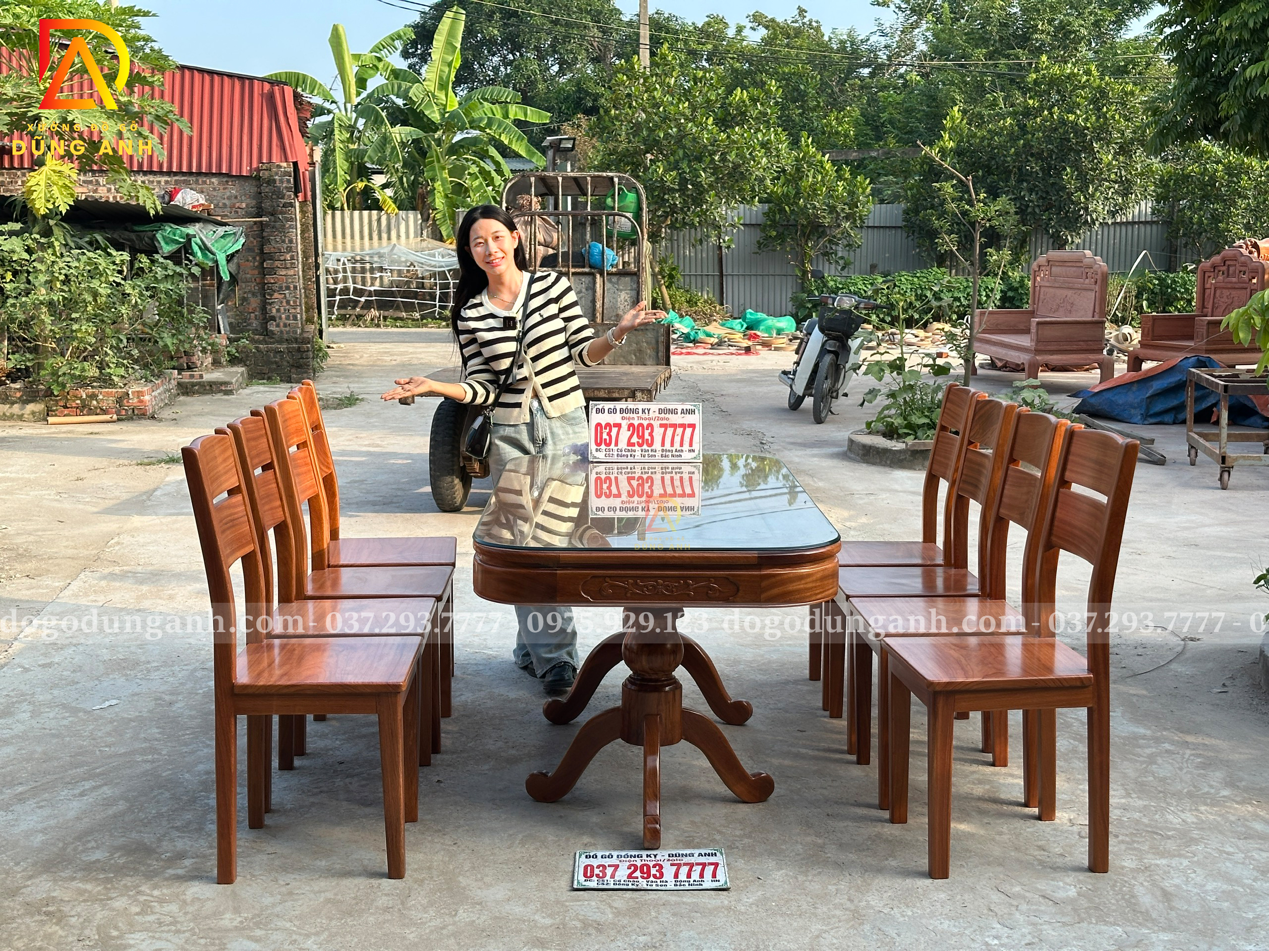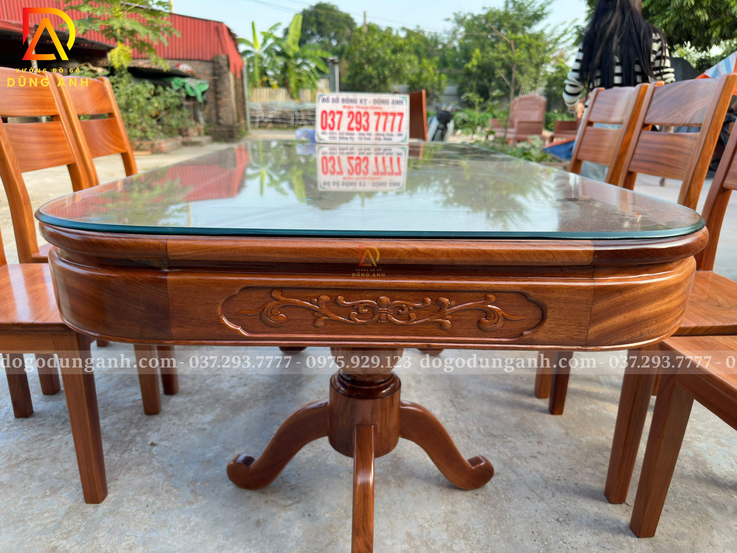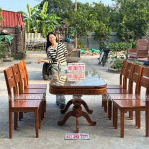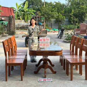 Bạn có thể yêu cầu điều chỉnh kích thước bàn, số lượng ghế hoặc chi tiết chạm khắc theo sở thích và không gian sử dụng. Chỉ cần liên hệ với Xưởng đồ gỗ Dũng Anh, mọi thiết kế sẽ được đáp ứng một cách linh hoạt và tận tâm.