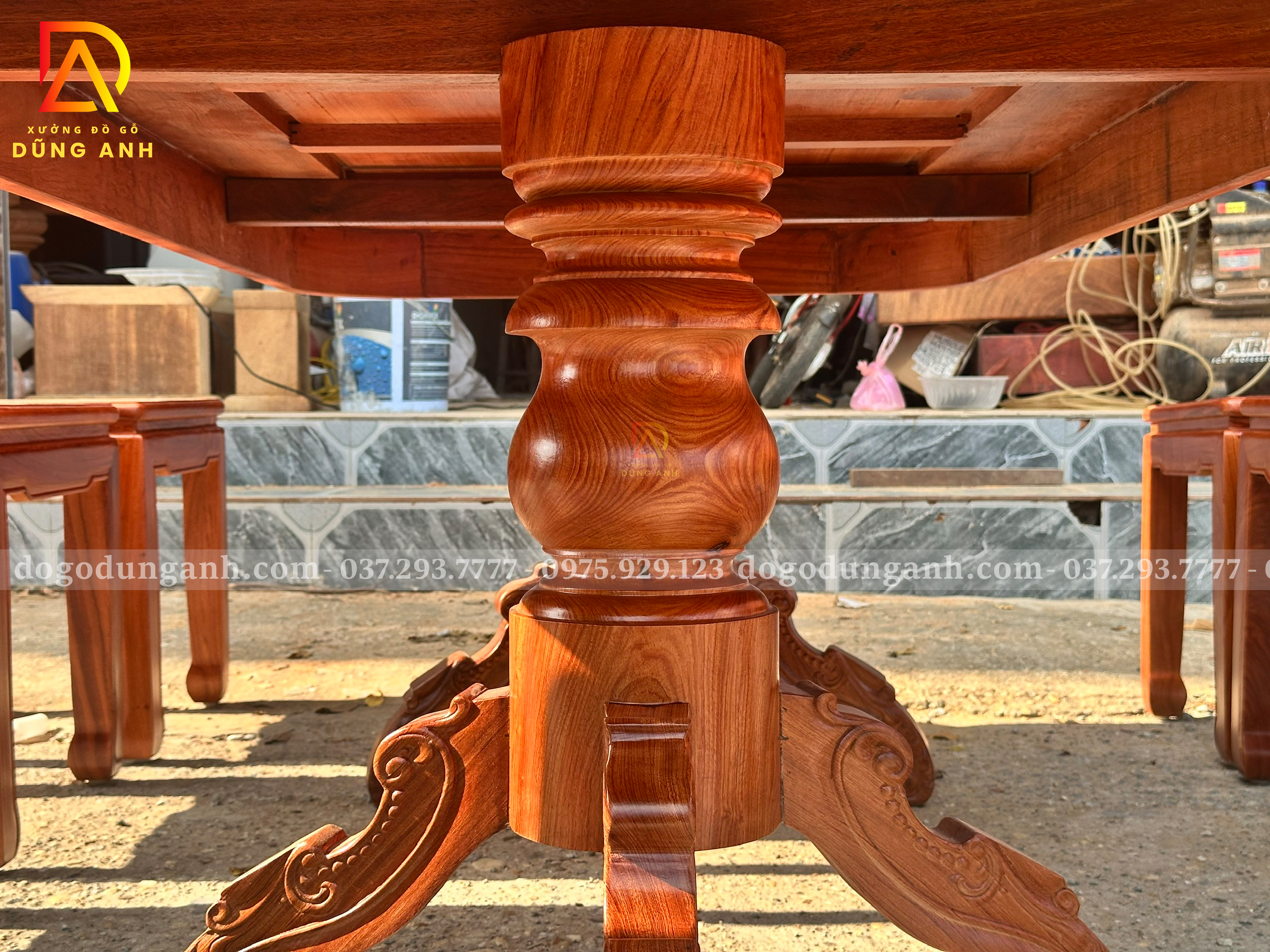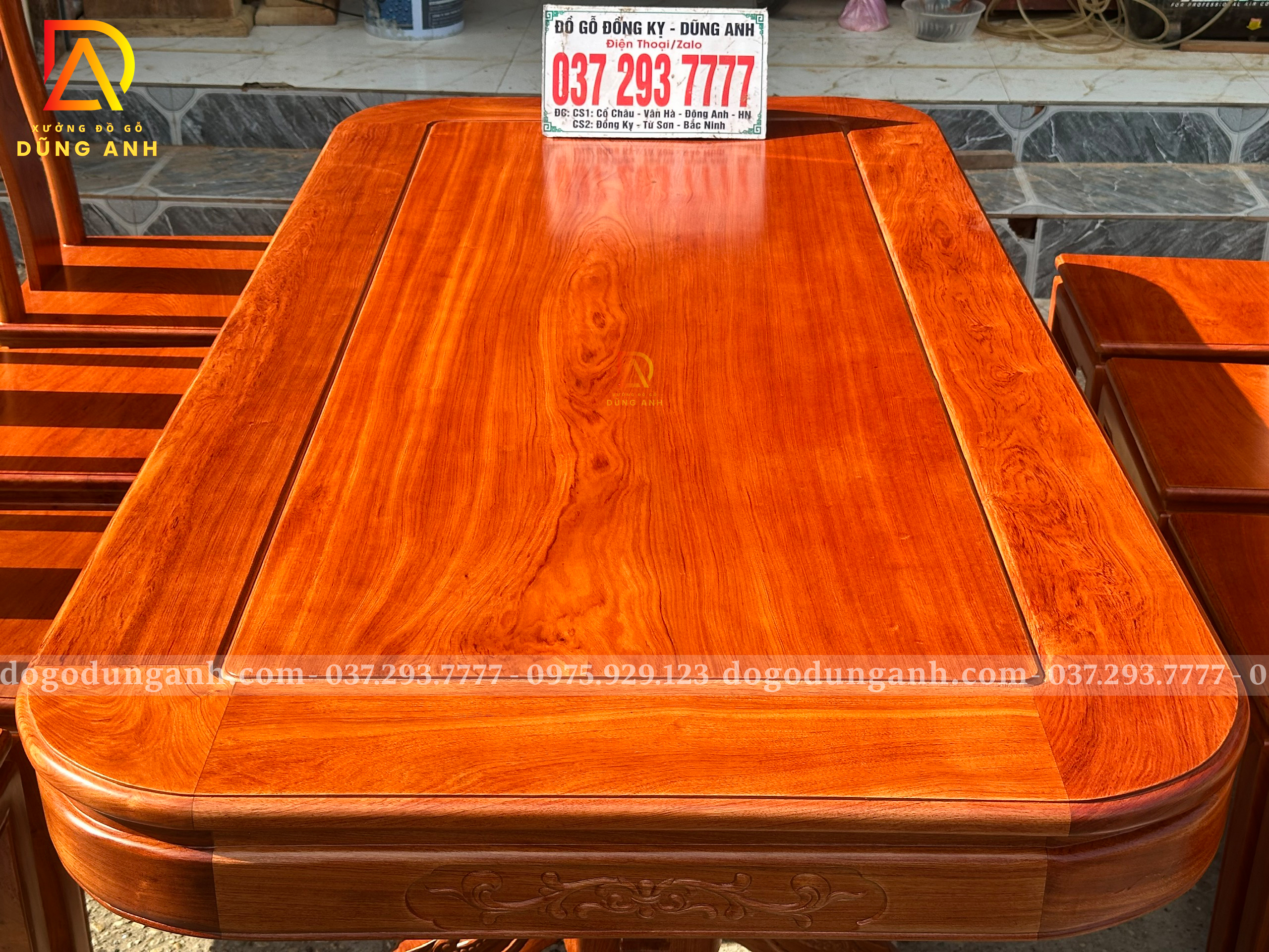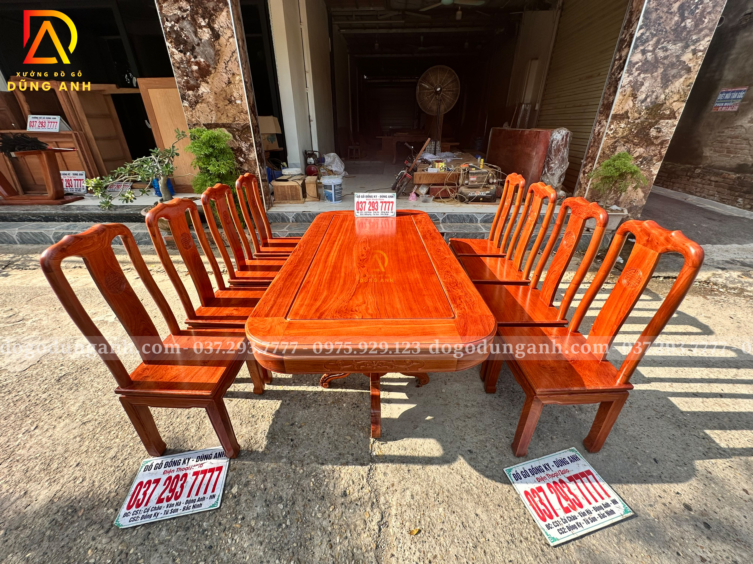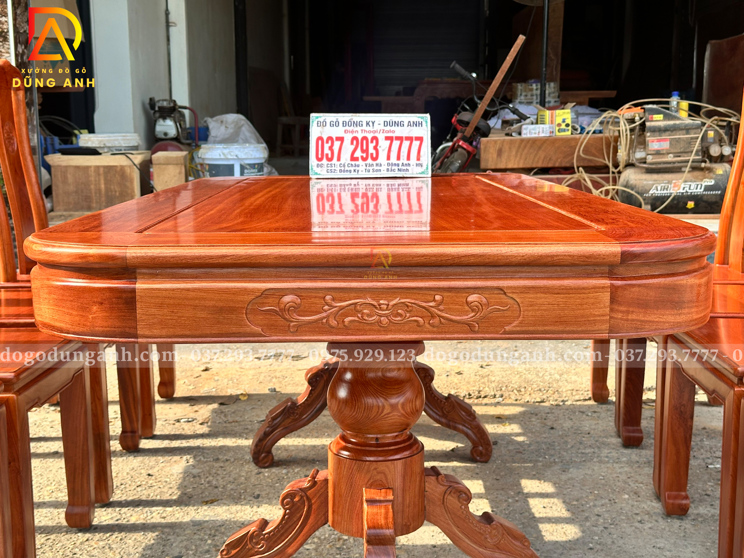 Bạn có thể yêu cầu điều chỉnh kích thước bàn, số lượng ghế hoặc chi tiết chạm khắc theo sở thích và không gian sử dụng. Chỉ cần liên hệ với Xưởng đồ gỗ Dũng Anh, mọi thiết kế sẽ được đáp ứng một cách linh hoạt và tận tâm.