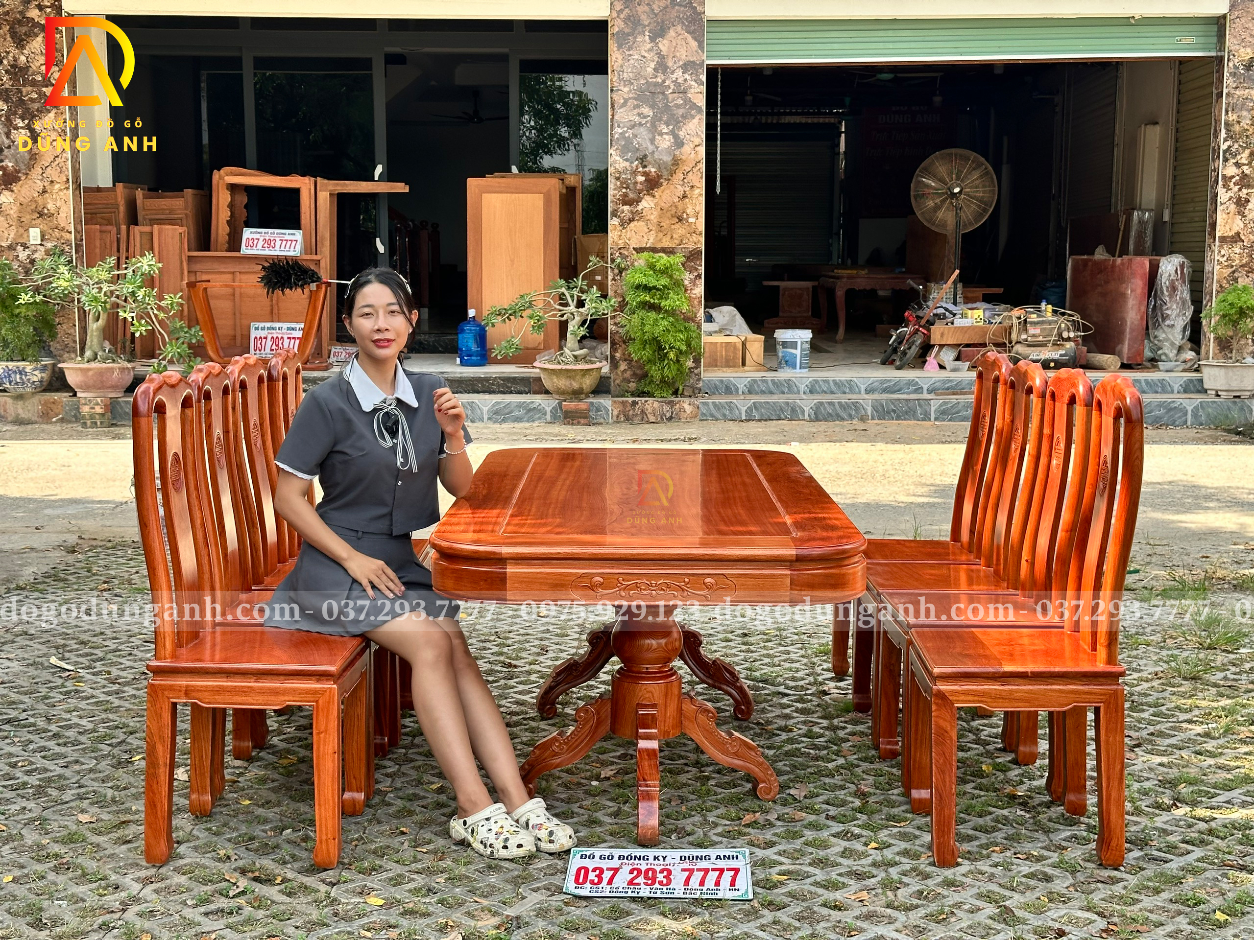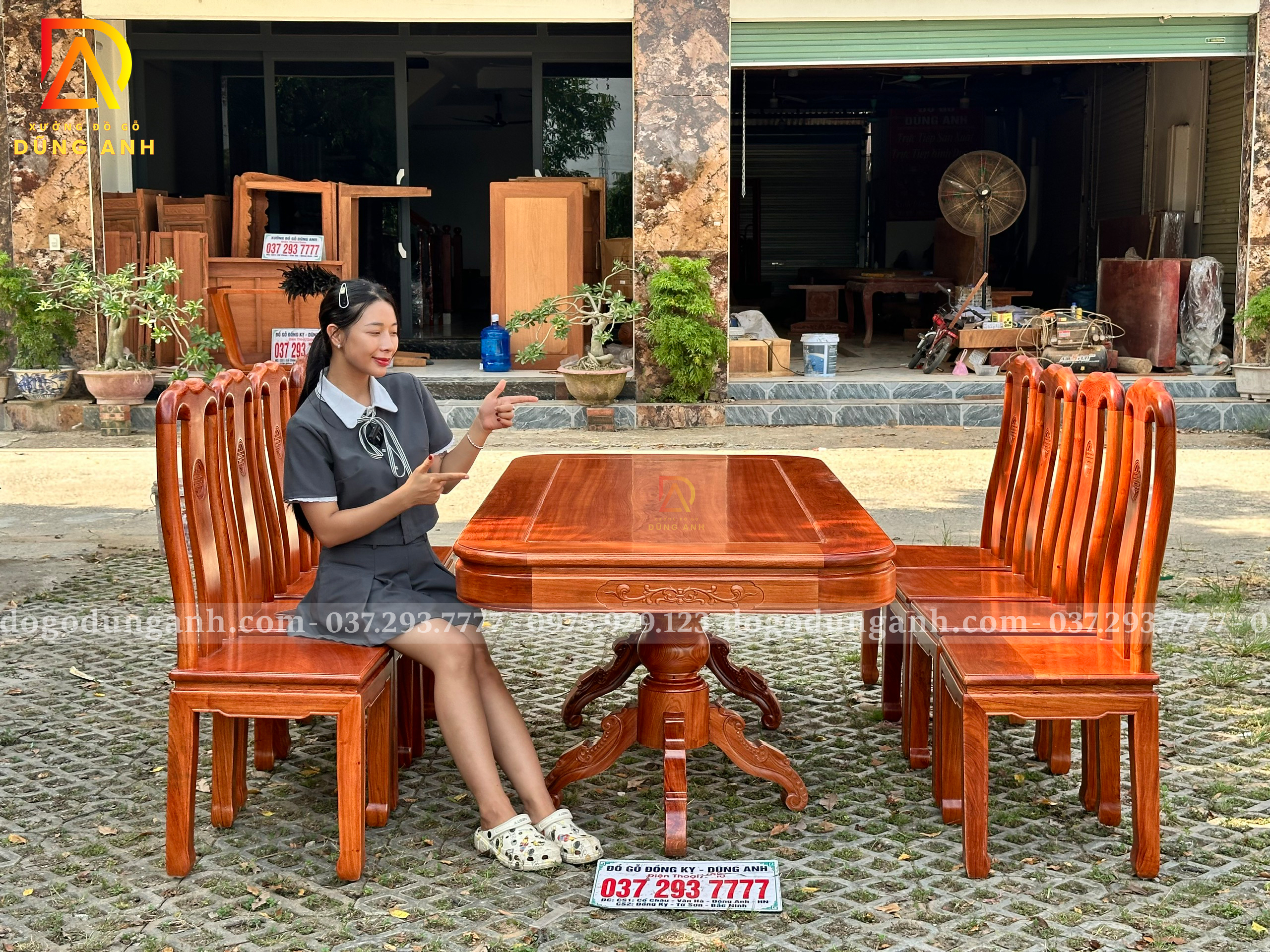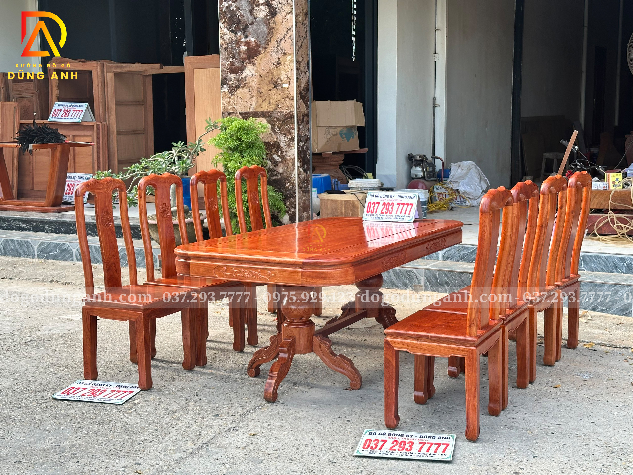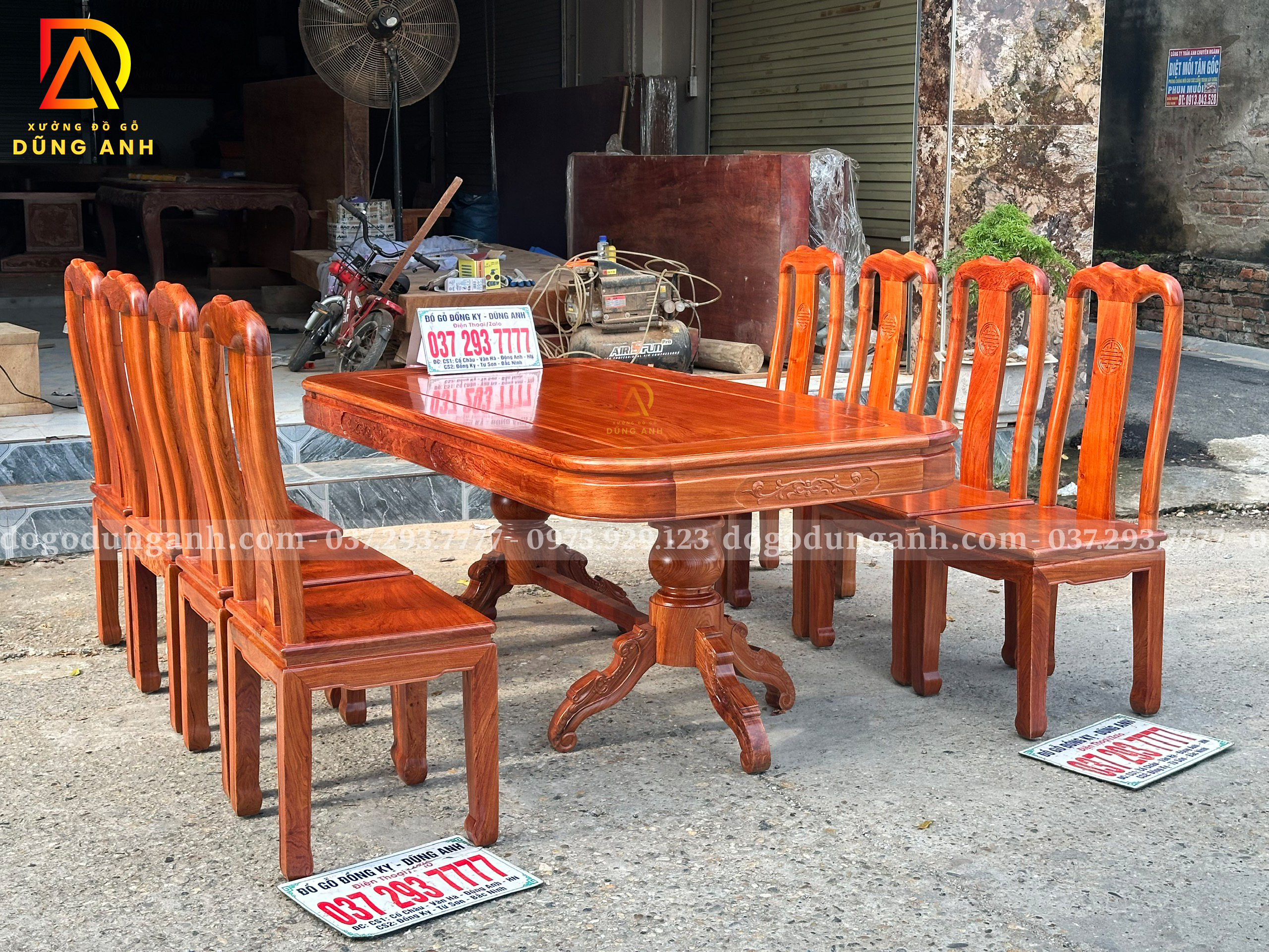 Bạn có thể yêu cầu điều chỉnh kích thước bàn, số lượng ghế hoặc chi tiết chạm khắc theo sở thích và không gian sử dụng. Chỉ cần liên hệ với Xưởng đồ gỗ Dũng Anh, mọi thiết kế sẽ được đáp ứng một cách linh hoạt và tận tâm.