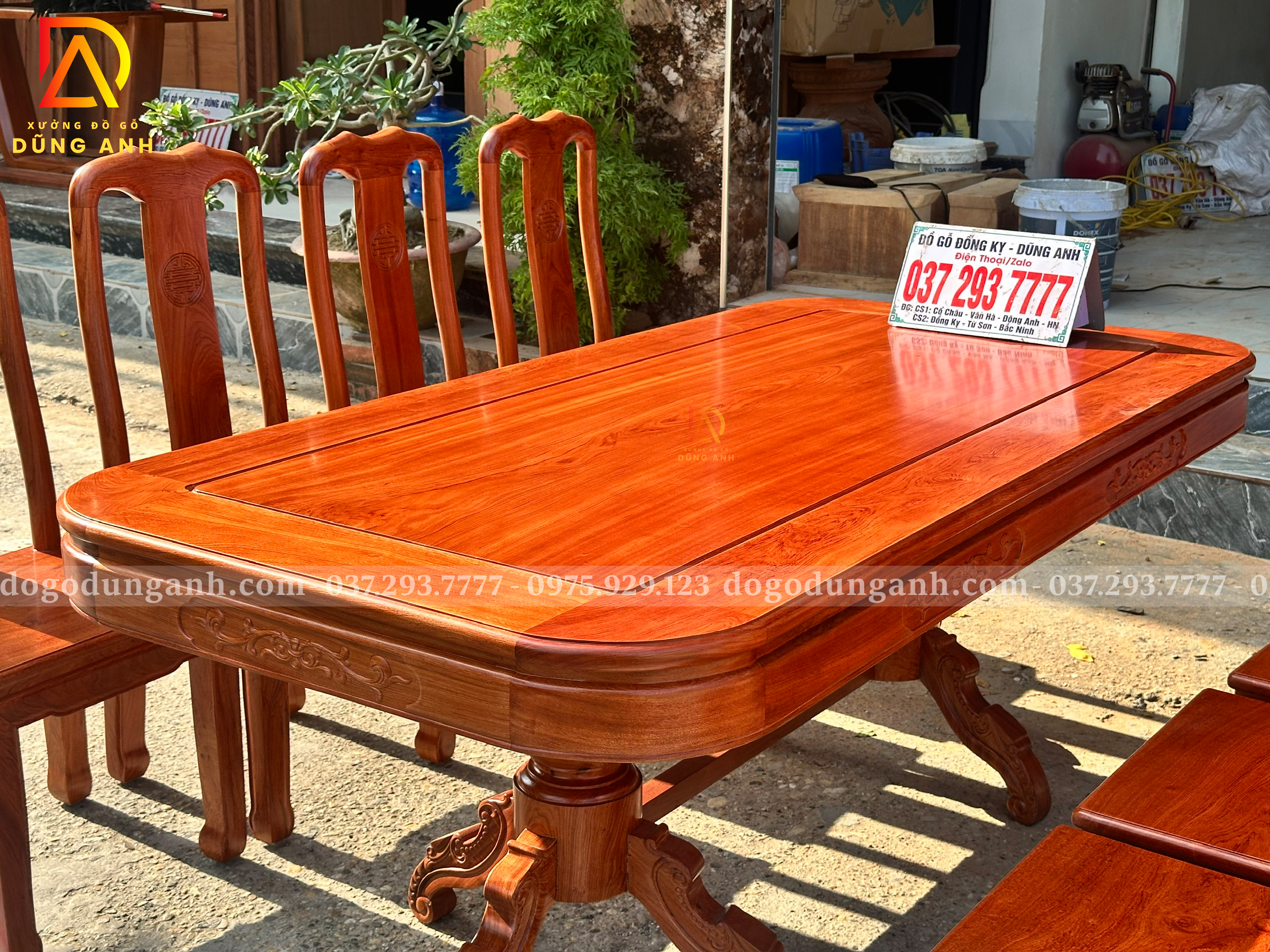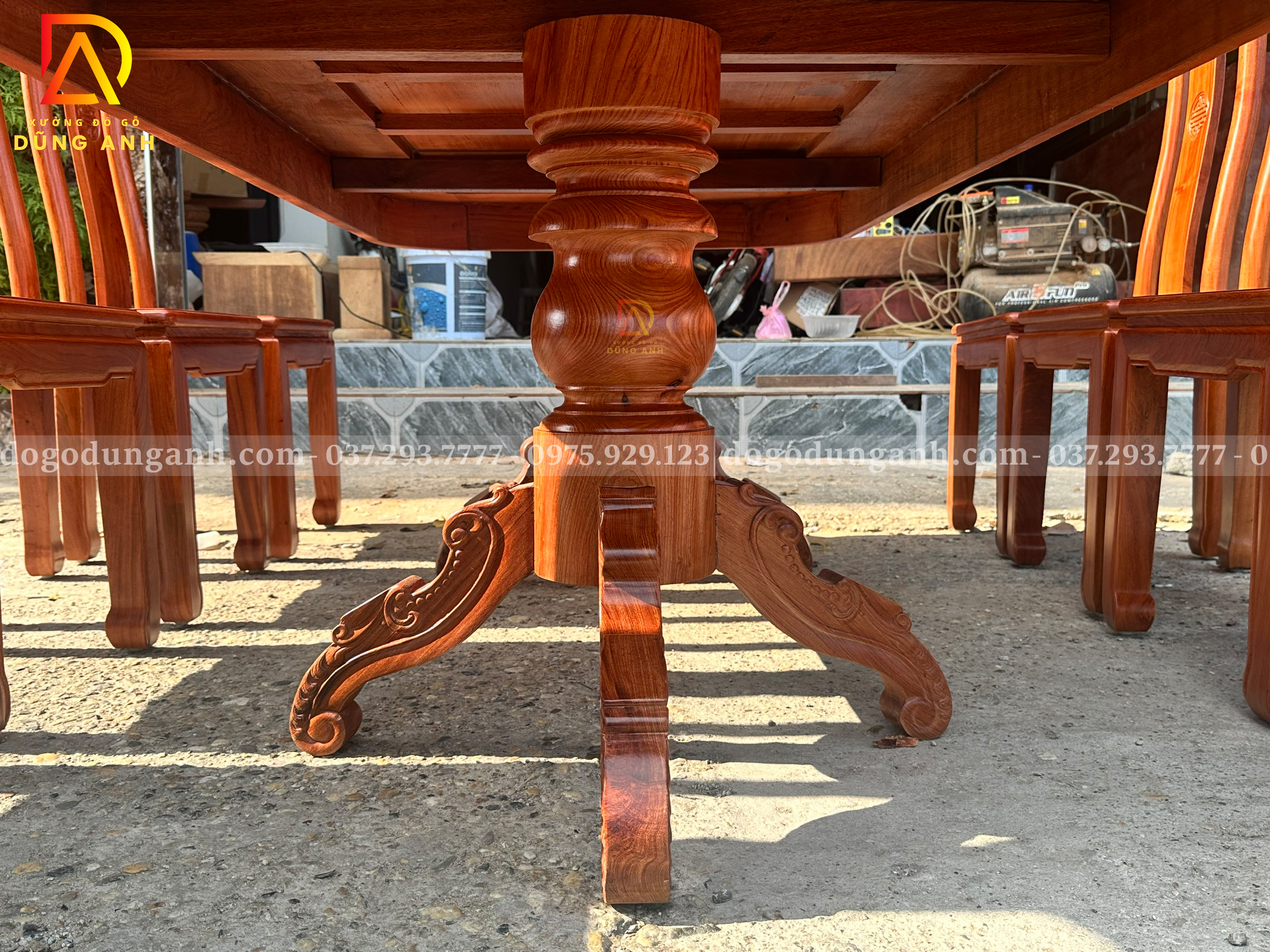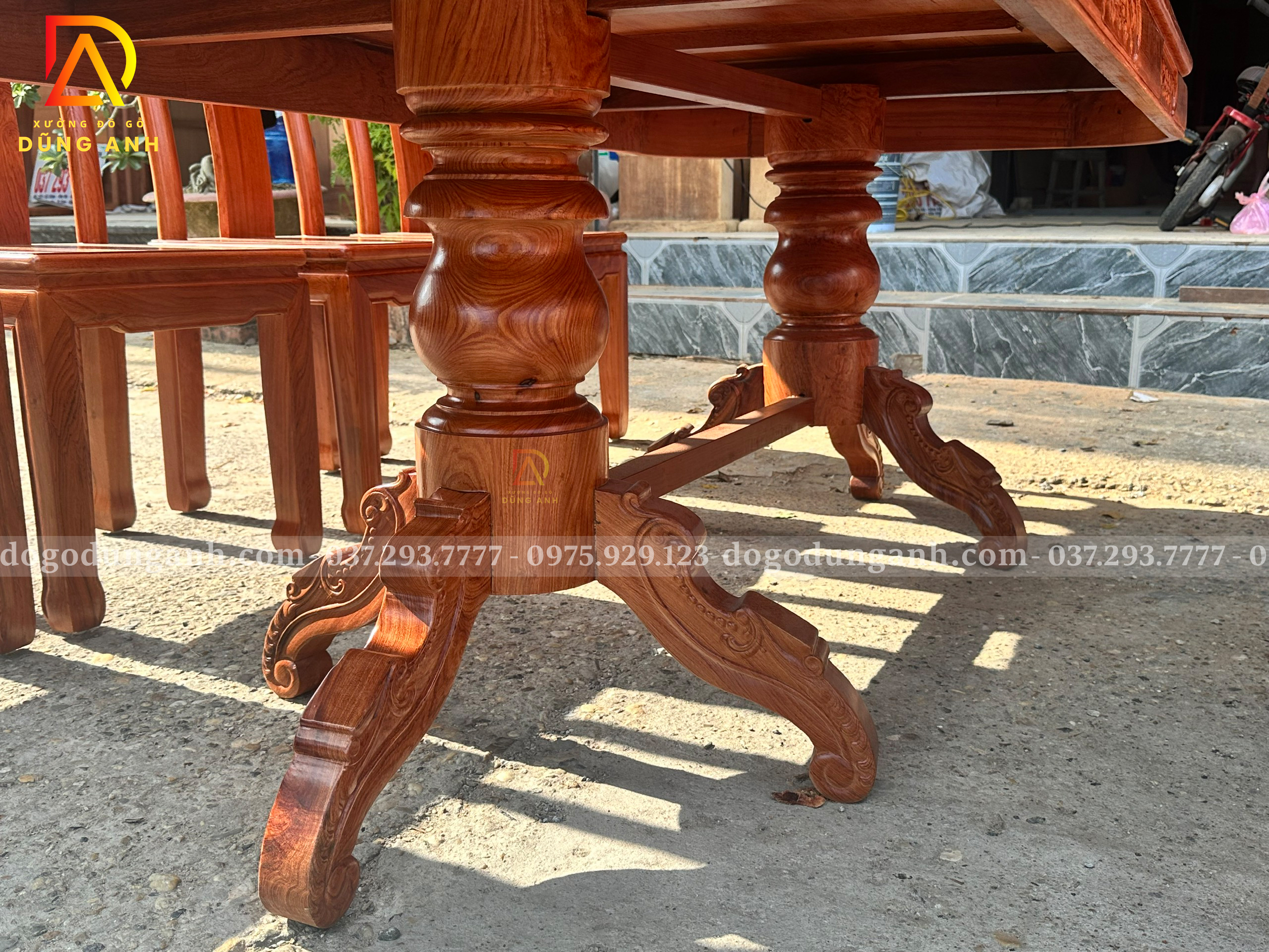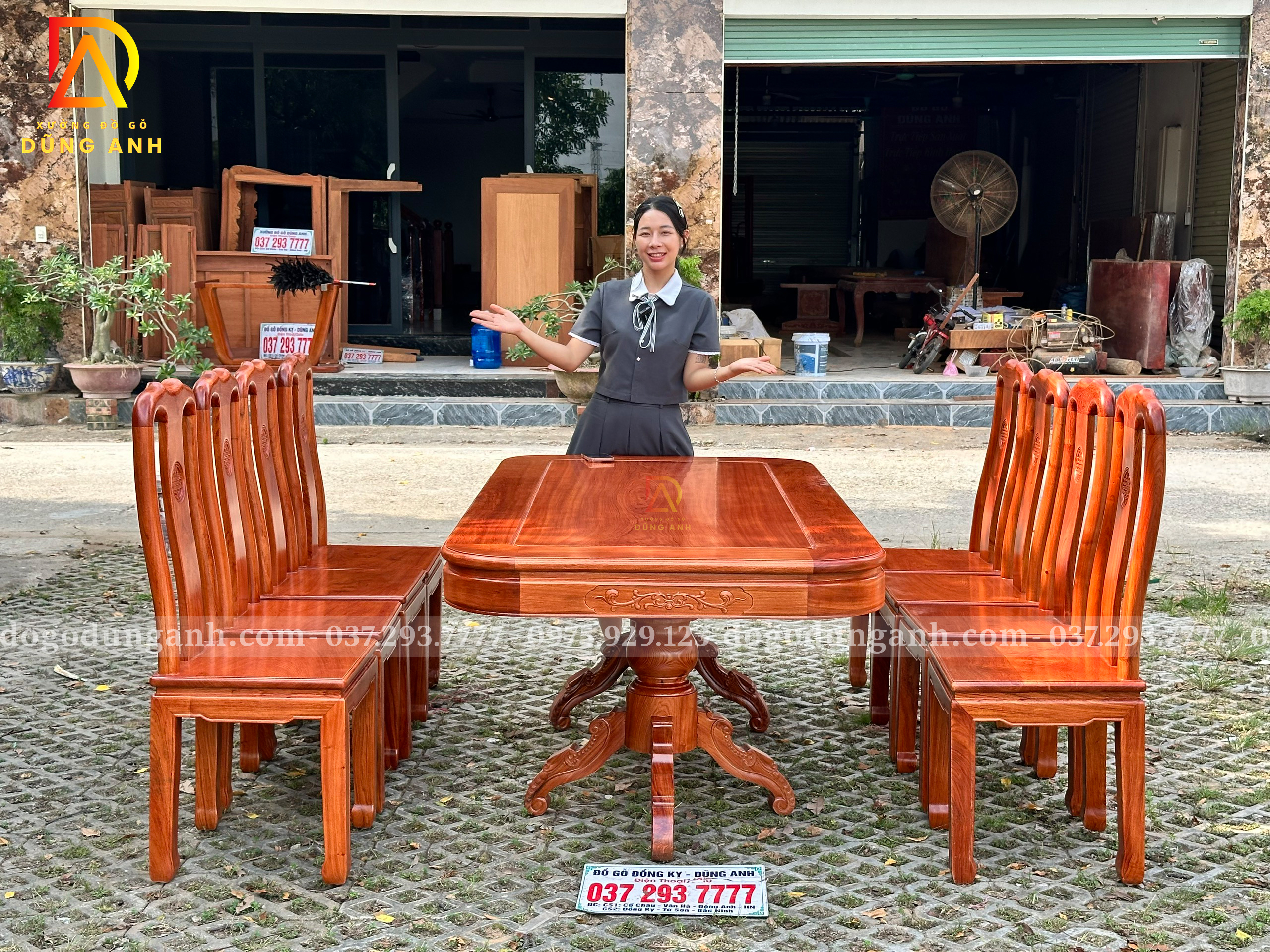 Bạn có thể yêu cầu điều chỉnh kích thước bàn, số lượng ghế hoặc chi tiết chạm khắc theo sở thích và không gian sử dụng. Chỉ cần liên hệ với Xưởng đồ gỗ Dũng Anh, mọi thiết kế sẽ được đáp ứng một cách linh hoạt và tận tâm.