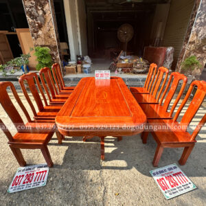 Đồ Gỗ Dũng Anh | Bộ sản phẩm 8 Ghế Triện Thọ – Bàn Chữ Nhật – Gỗ Hương Đá