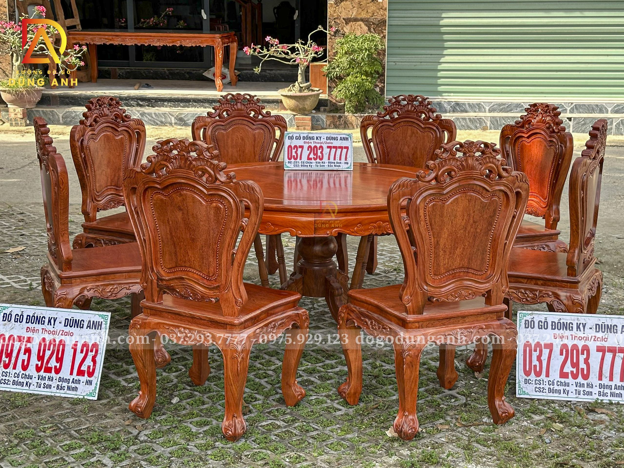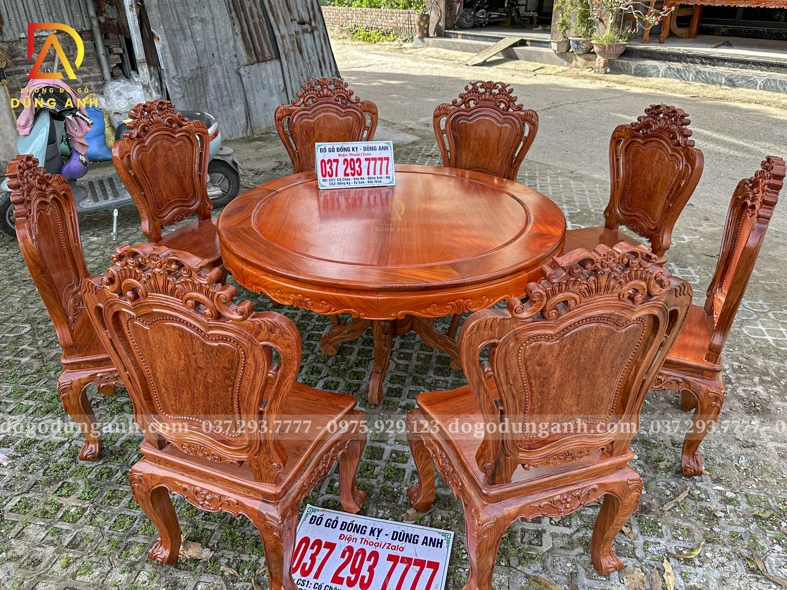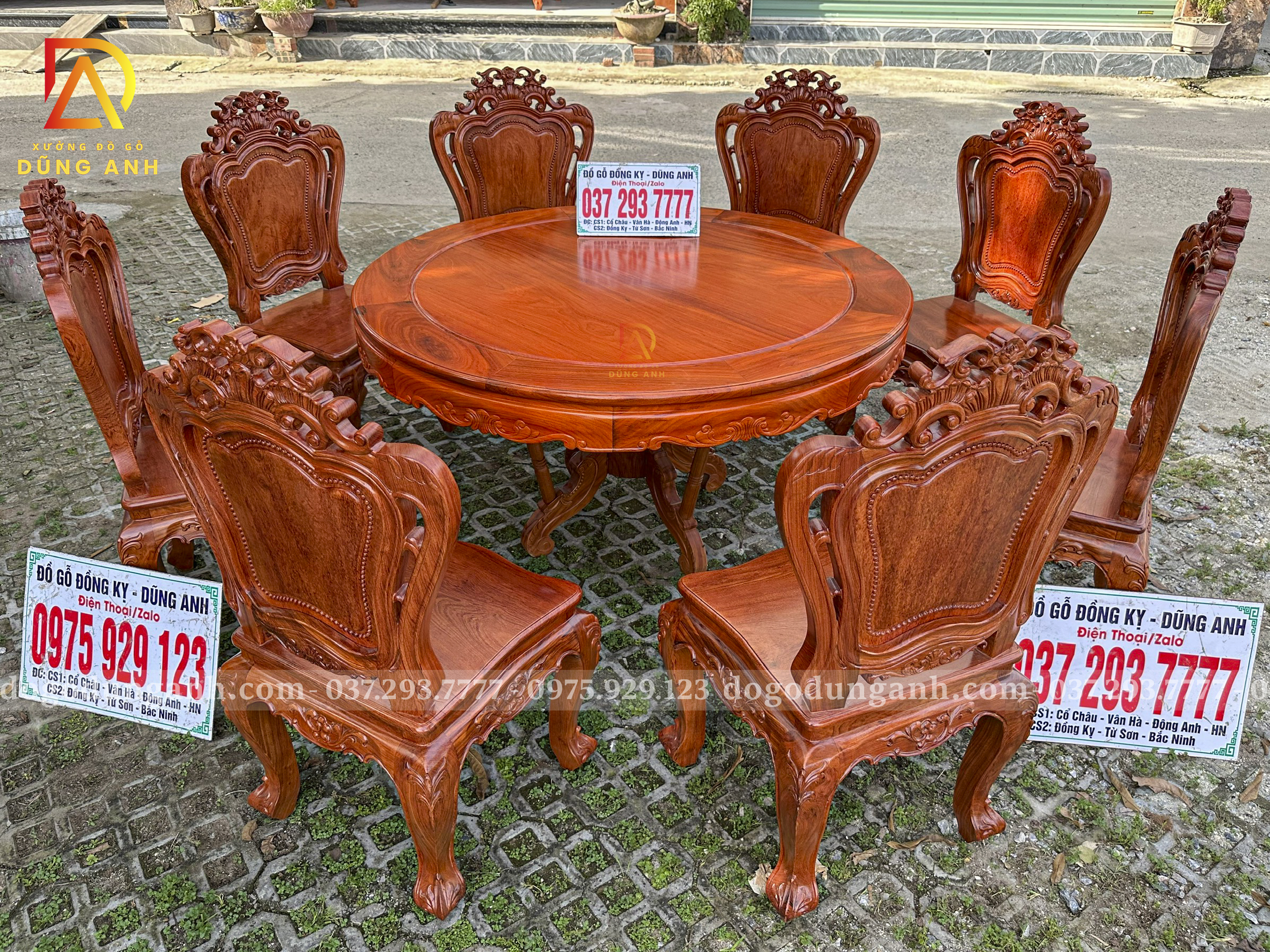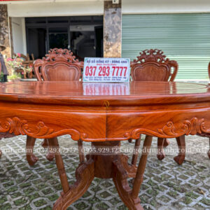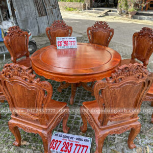 Đồ Gỗ Dũng Anh | Bộ sản phẩm 8 Ghế Louis Hoàng Gia Hương Đá – Bàn Tròn Yếm vén Gõ Đỏ
