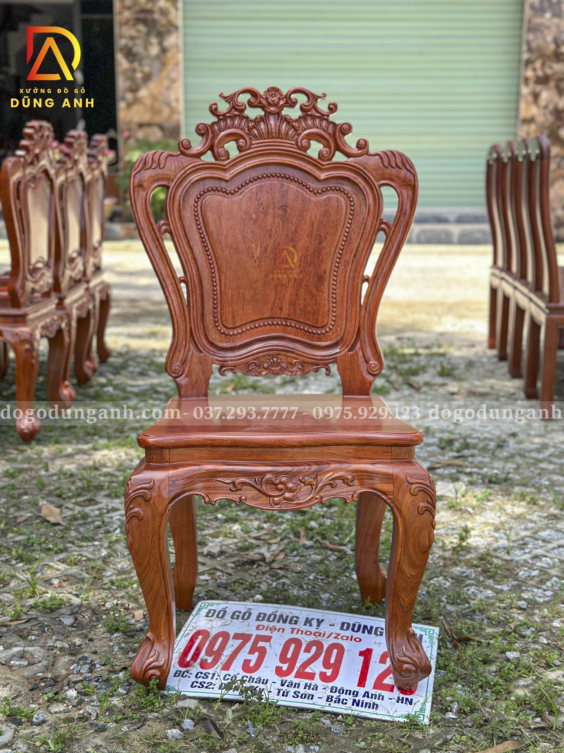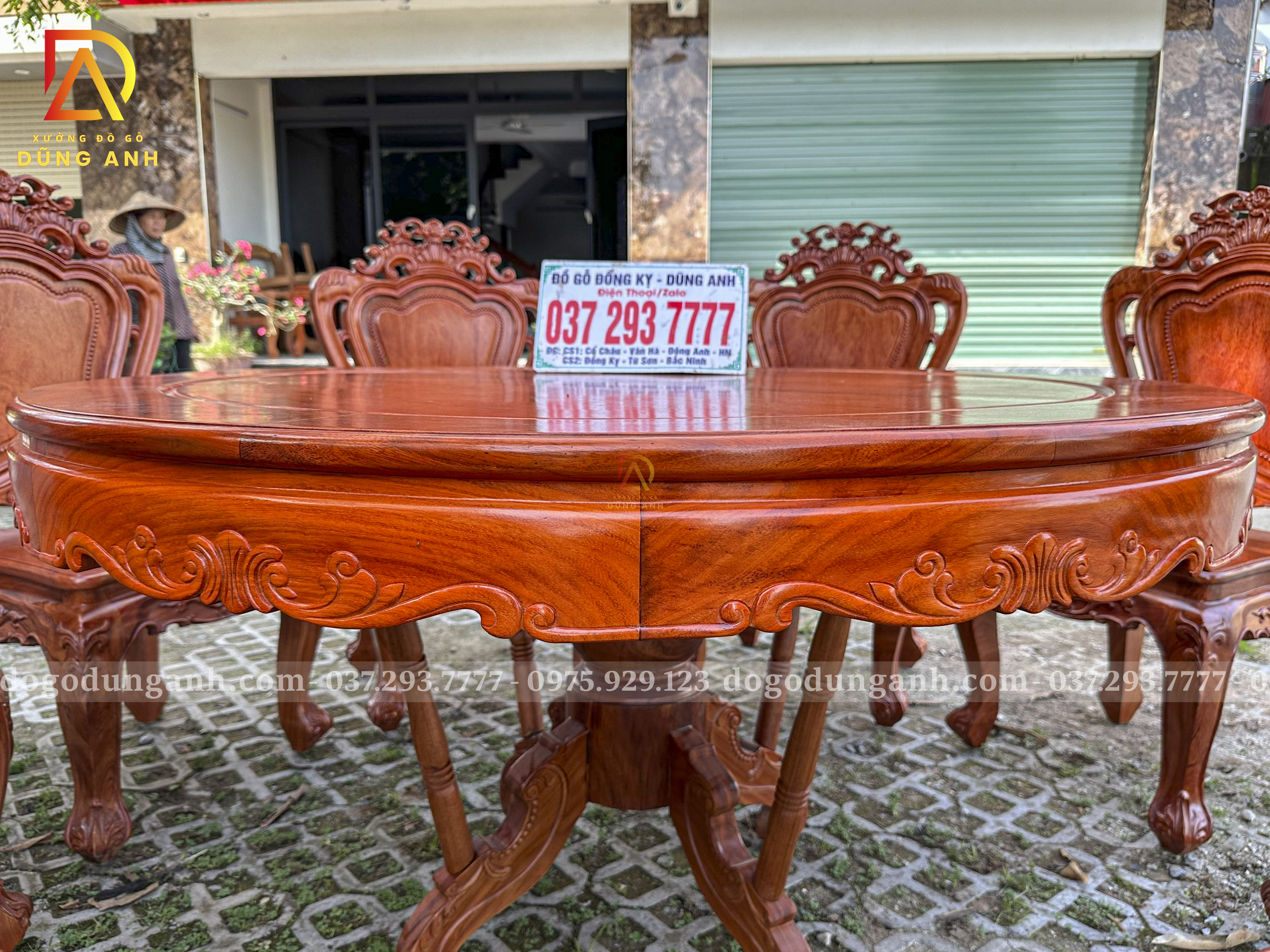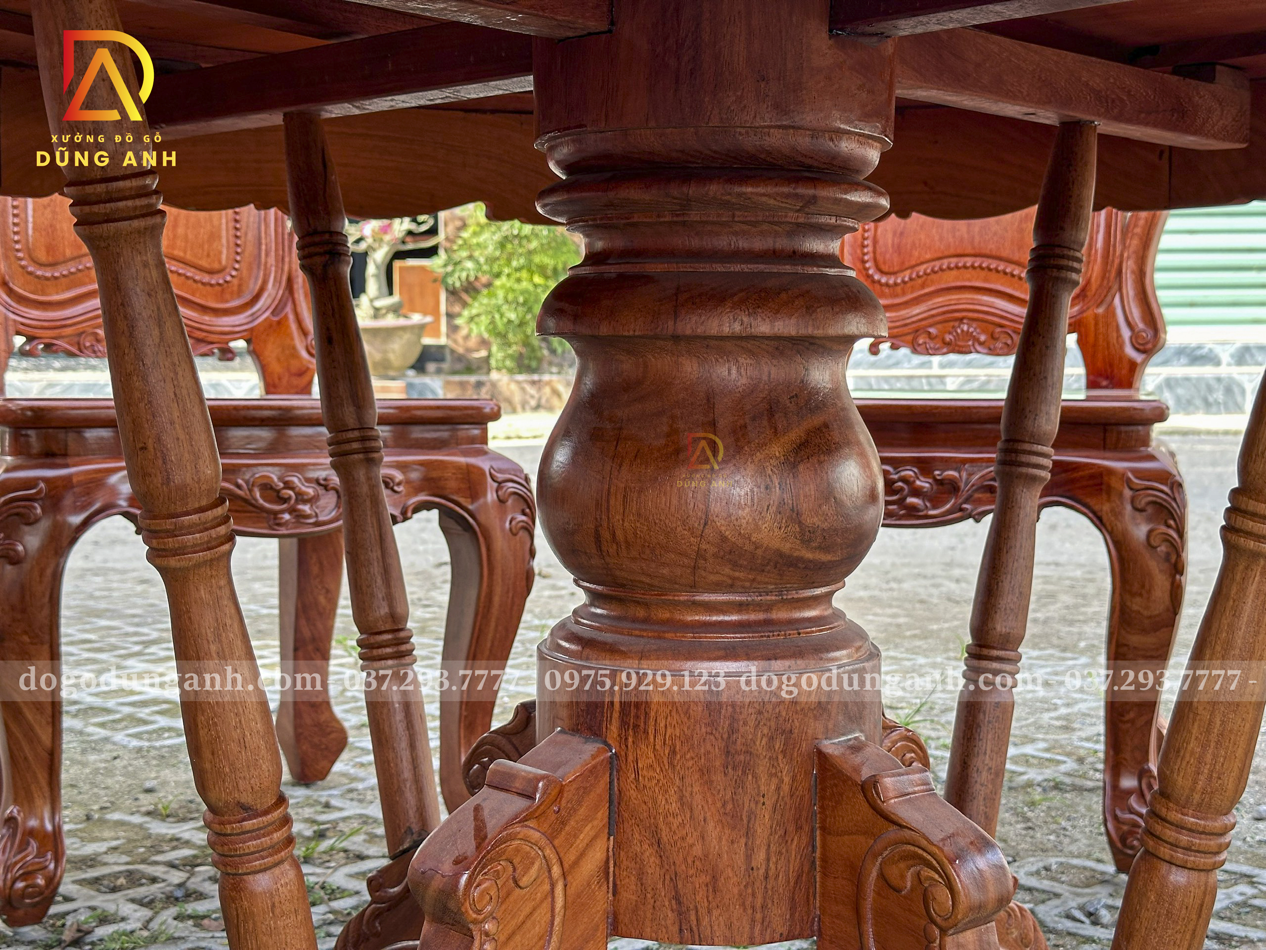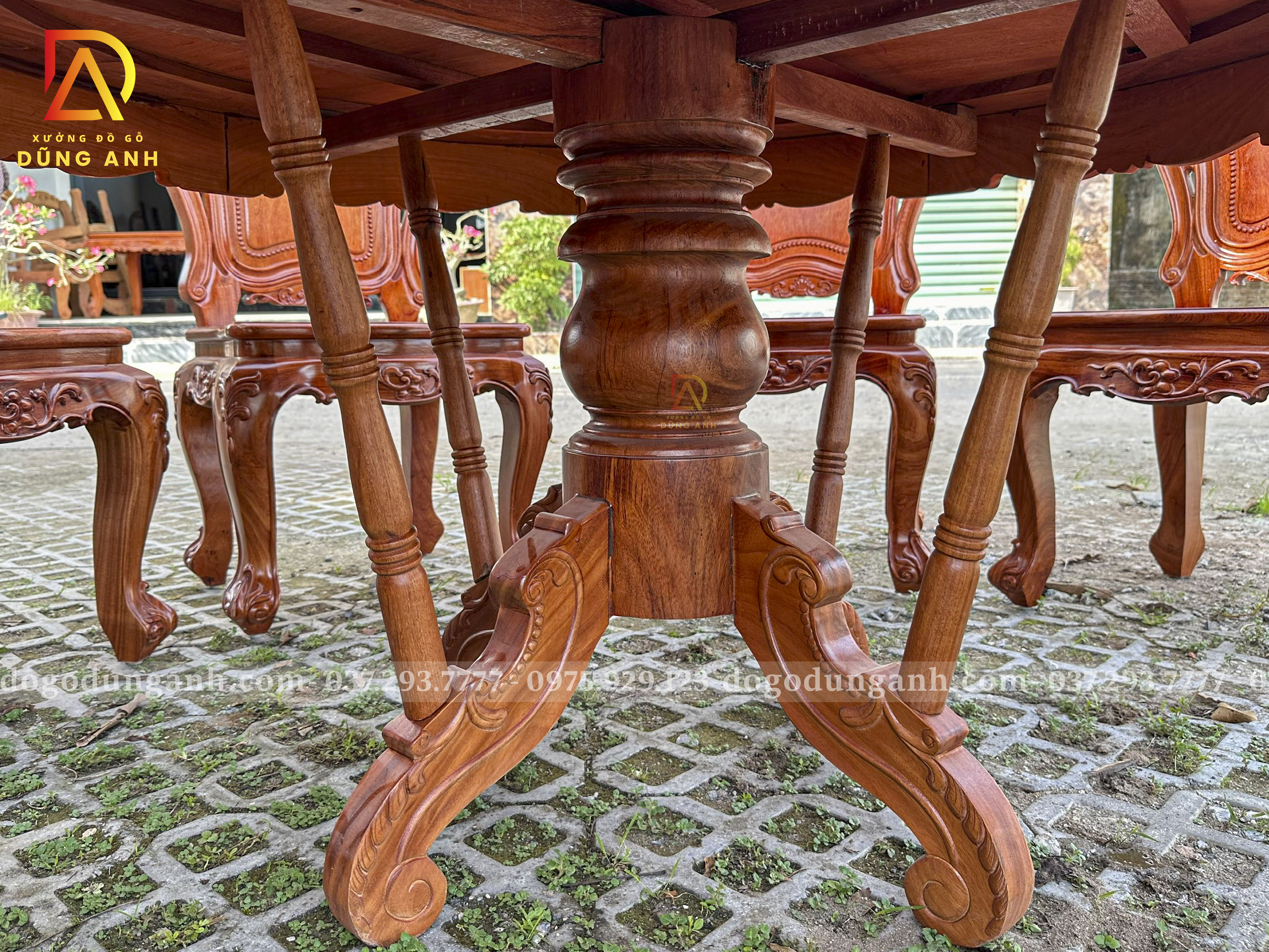 Đồ Gỗ Dũng Anh | Bộ sản phẩm 8 Ghế Louis Hoàng Gia Hương Đá – Bàn Tròn Yếm vén Gõ Đỏ