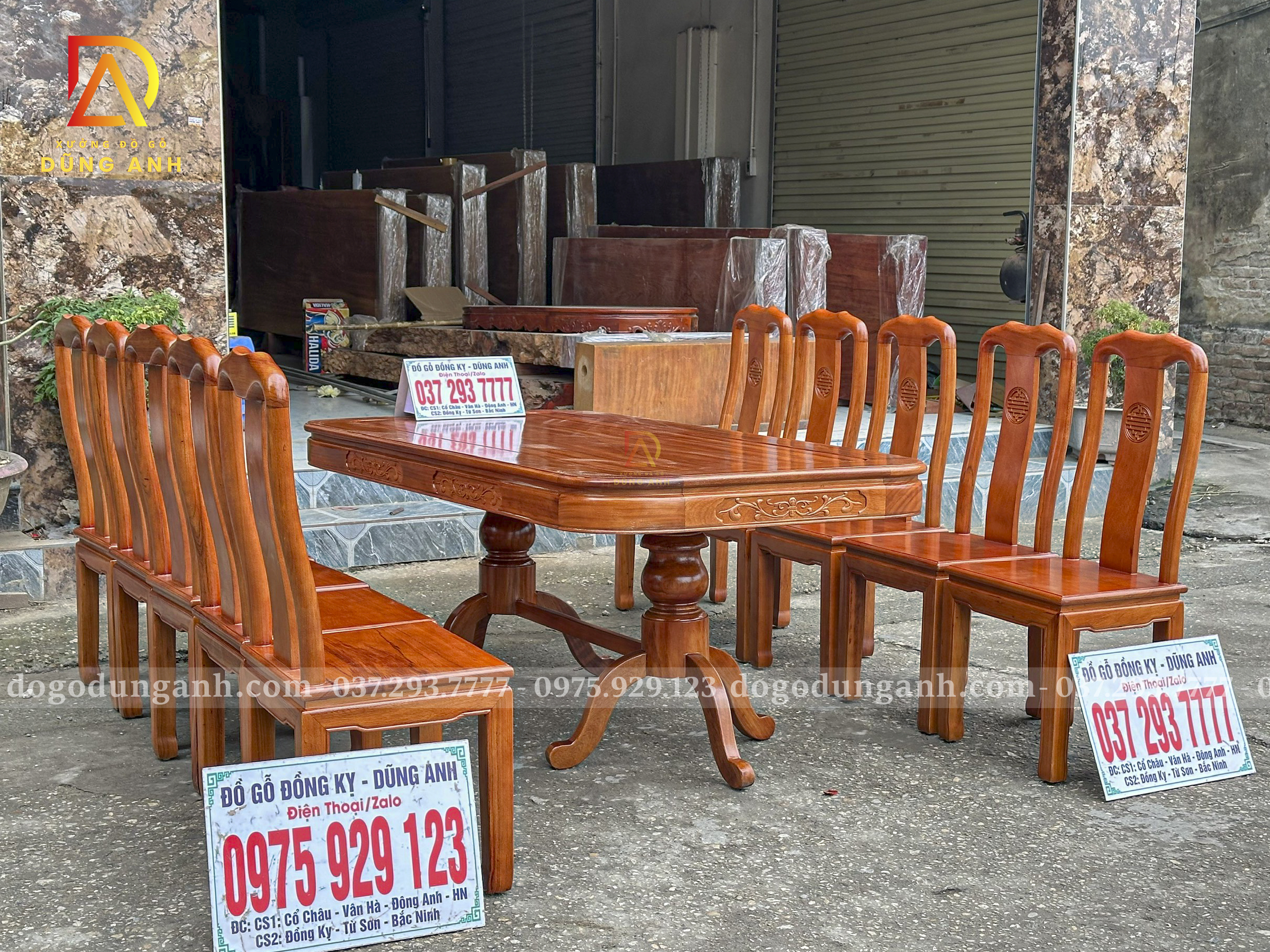Bộ bàn ăn 10 ghế được chế tác từ chất liệu gỗ gõ đỏ tự nhiên